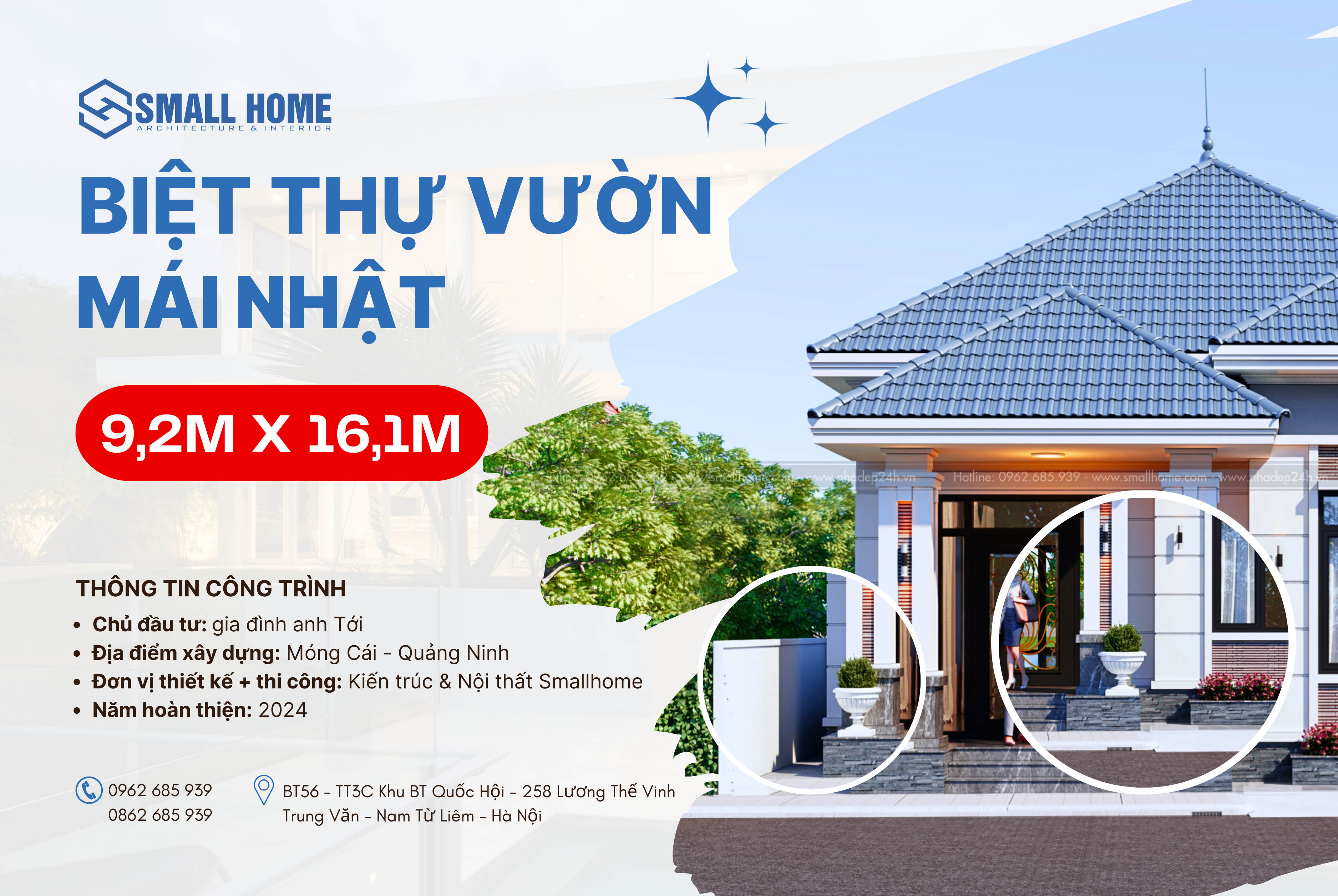 Trong nhịp sống hiện đại ngày càng hối hả, mong muốn sở hữu một không gian sống yên bình, gần gũi với thiên nhiên đang trở thành xu hướng của nhiều gia đình Việt. Mẫu biệt thự vườn 1 tầng mái Nhật với diện tích 9,2m x 16,1m và công năng 4 phòng ngủ là một lựa chọn hoàn hảo, đáp ứng trọn vẹn nhu cầu nghỉ dưỡng tại gia, đặc biệt phù hợp với gia đình đa thế hệ. Thiết kế không chỉ đề cao sự tiện nghi, tối ưu hóa từng mét vuông sử dụng mà còn hòa quyện khéo léo giữa vẻ đẹp hiện đại, thanh thoát với chất mộc mạc, bình dị của thiên nhiên quê nhà.