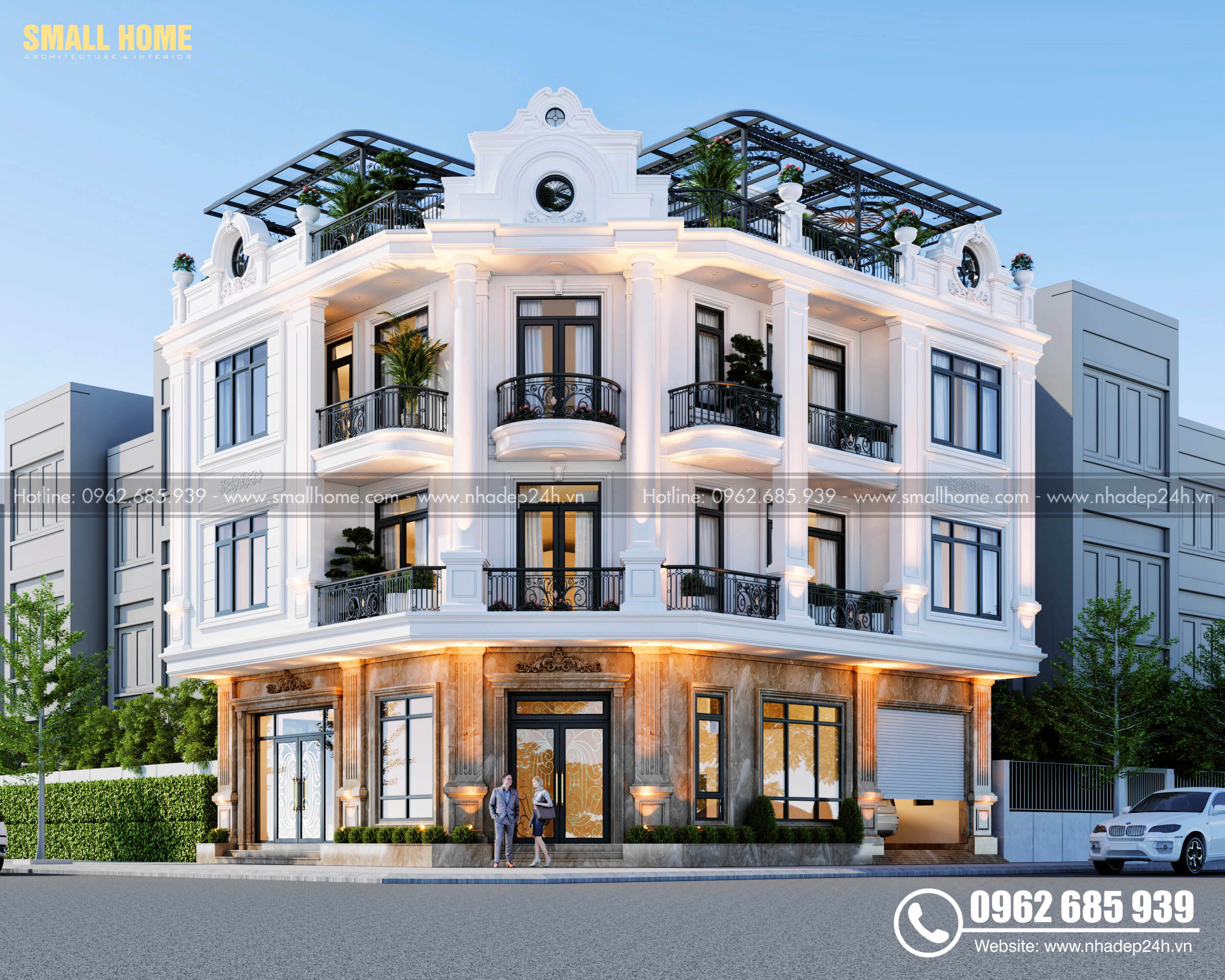 Nếu bạn đang sở hữu một lô đất tại vị trí góc với 2 mặt tiền nhưng chưa biết nên thiết kế tổ ấm cho mình như thế nào. Hôm nay Kiến trúc & Nội thất Smallhome mời các bạn cùng chiêm ngưỡng vẻ đẹp Biệt thự góc 2 mặt tiền 4 tầng tại Hà Nam với phong cách thiết kế kiến trúc Tân cổ điển dưới đây nhé. Smallhome hi vọng đây sẽ là mẫu thiết kế khiến các bạn yêu thích và đáng để các bạn tham khảo.