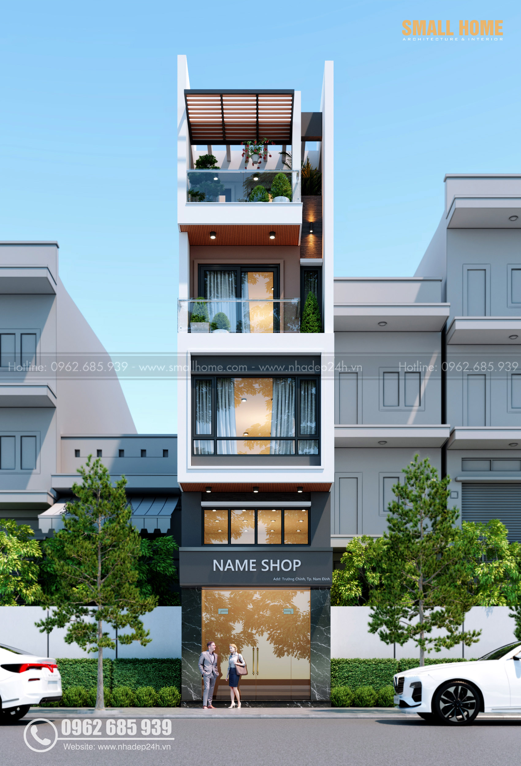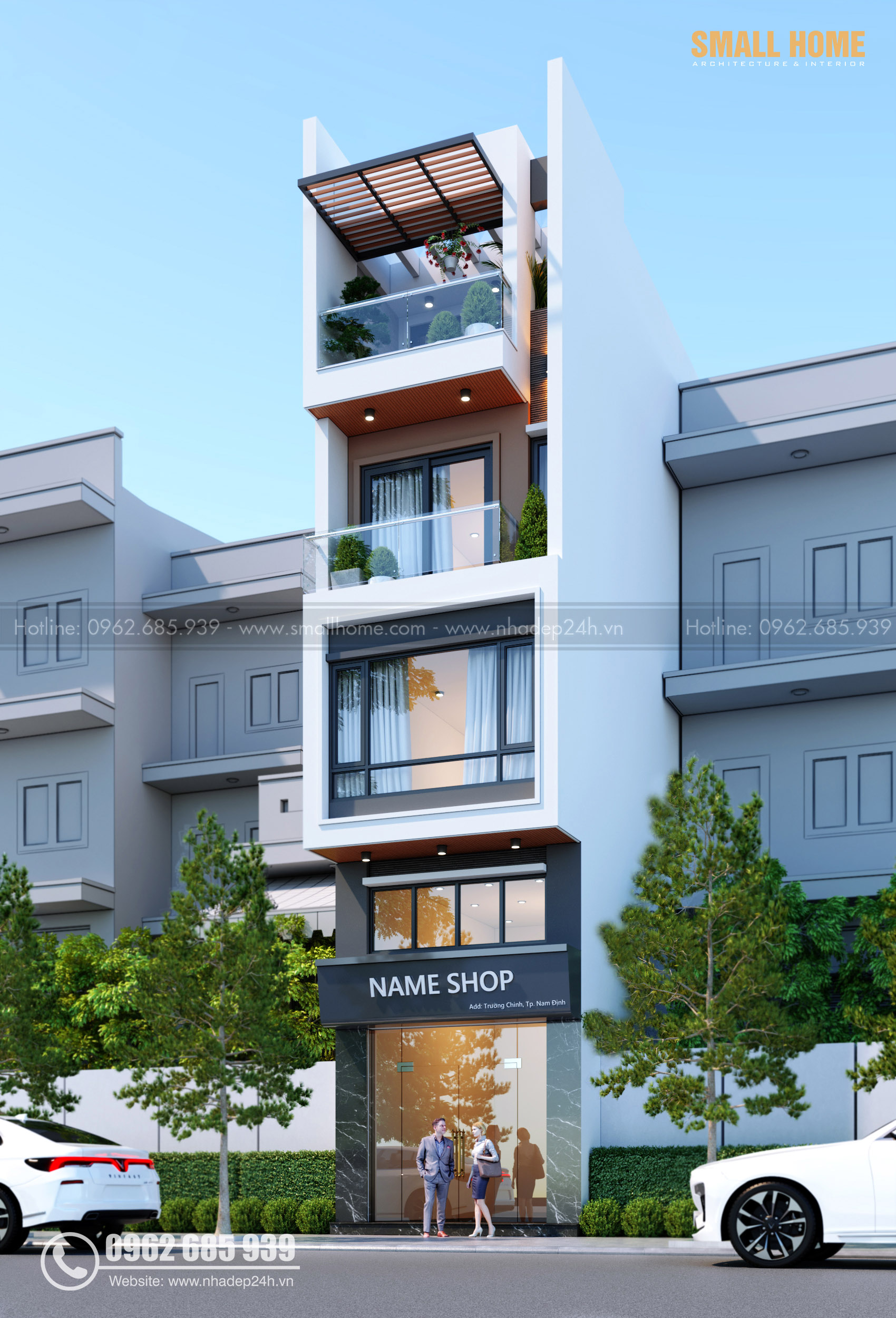 Xu hướng thiết kế nhà vừa ở vừa kết hợp kinh doanh đang hot hiện nay, đặc biệt là tại những đô thị lớn. Chúng giúp giải quyết phần nào những vấn đề lo âu về mặt hạn chế về diện tích và tăng thêm thu nhập cho gia chủ trên phần mặt bằng sẵn có. Tuy nhiên, để vừa đảm bảo thu hút khách hàng giúp tăng doanh thu cho gia chủ với mặt tiền nhỏ và dàn xếp bố cục công năng hợp lý để vừa để ở và kinh doanh là một bài toán khó yêu cầu trình độ chuyên môn cao từ KTS. Mời các bạn tham khảo công trình nhà phố 4 tầng hiện đại mặt tiền 4m kết hợp kinh doanh được KTS của Smallhome thiết kế dưới đây nhé!