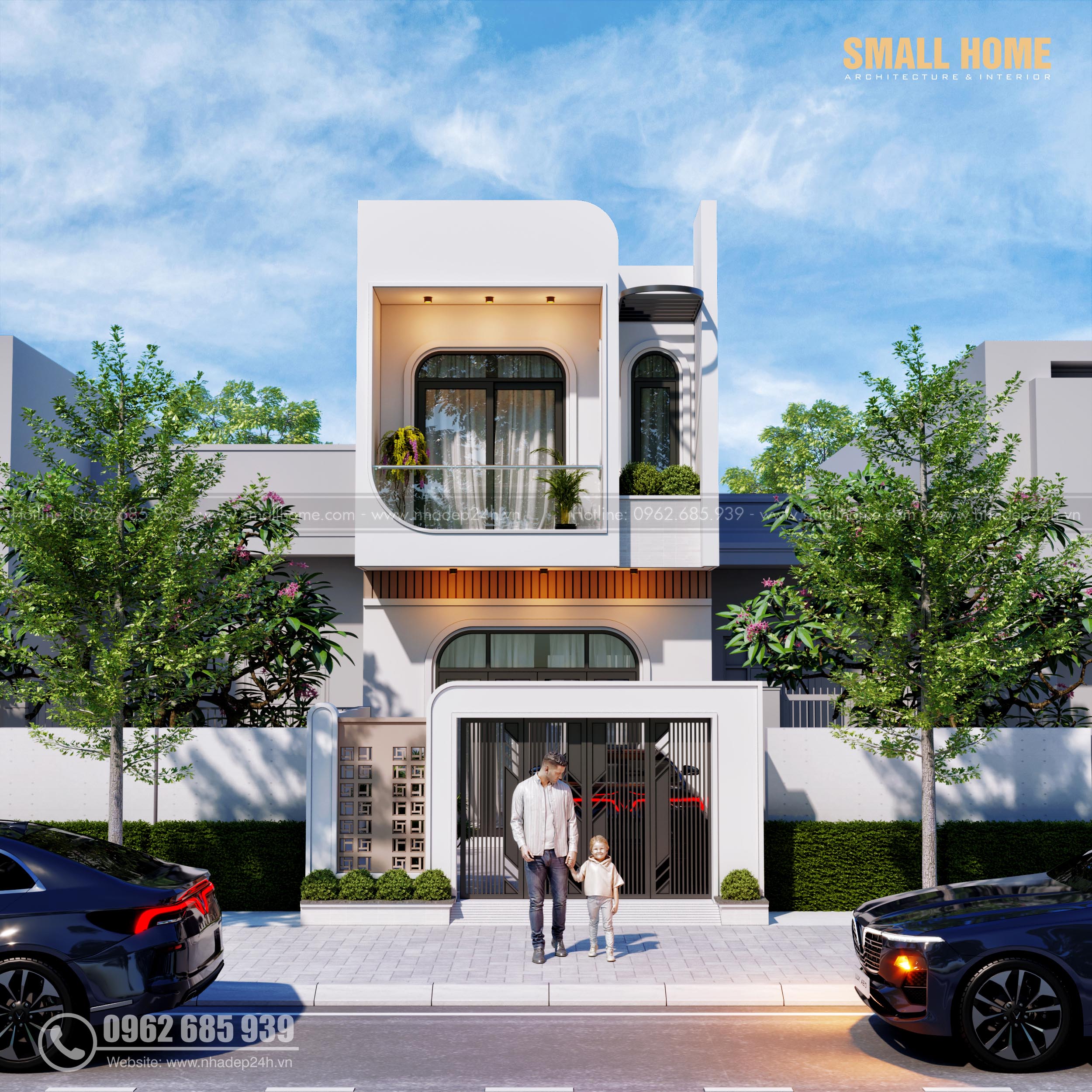 Công trình thiết kế nhà phố 2 tầng mặt tiền 5m được thiết kế theo phong cách hiện đại với những đường nét kiến trúc tối giản, gọn gàng và tinh tế. Sự kết hợp giữa diện tường tường trắng, kính và các vật liệu hiện đại tạo nên nét thẩm mỹ trang nhã và tinh tế. Mặt tiền nhà phố rộng 5m của ngôi nhà được trang bị cửa kính lớn, đảm bảo bên trong luôn tràn ngập ánh sáng tự nhiên. Việc bố trí hợp lý hệ thống cửa sổ và ban công không chỉ giúp cải thiện khả năng thông gió mà còn làm nổi bật vẻ đẹp của không gian nhà ống 2 tầng.