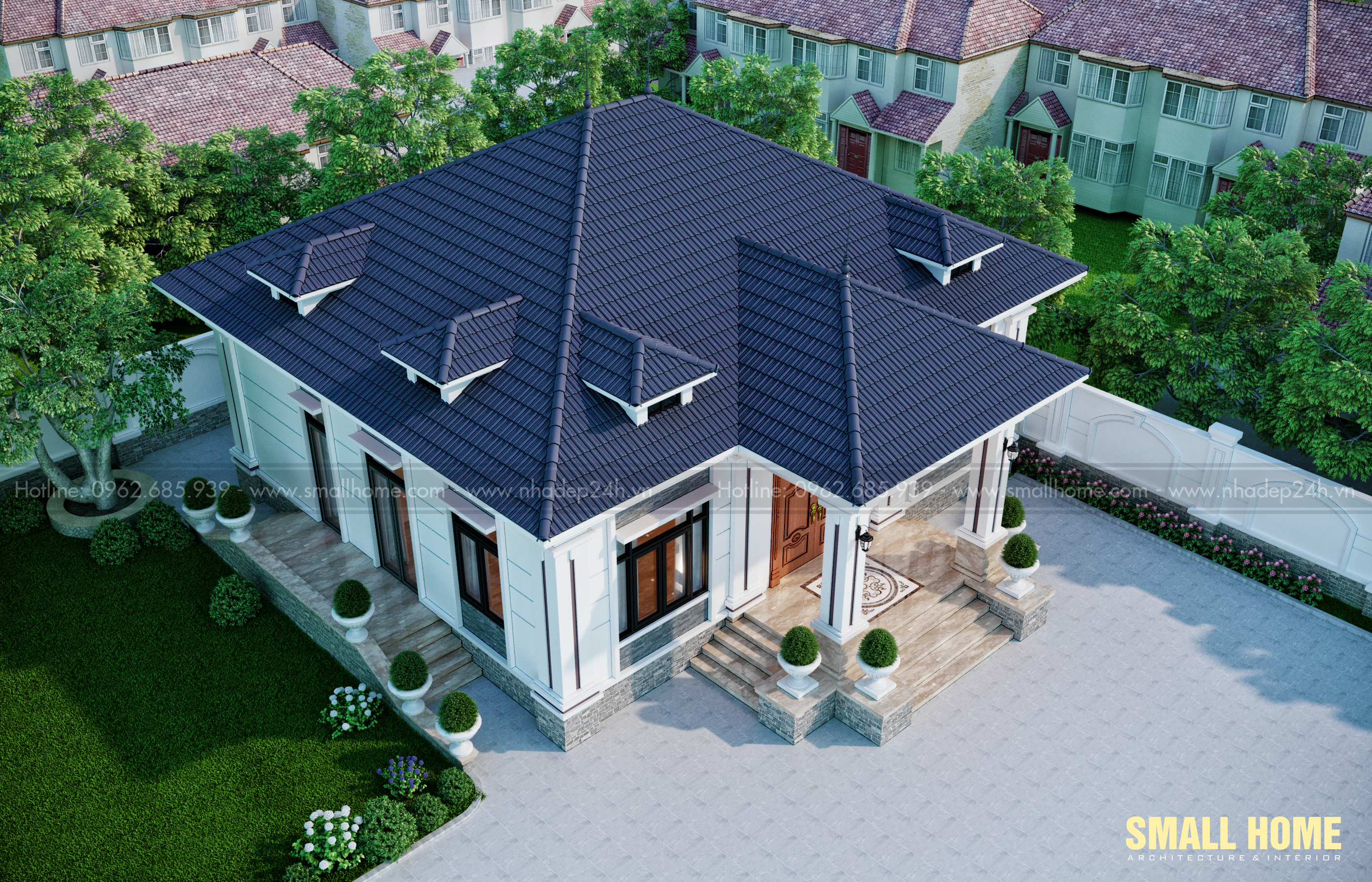 Nếu bạn cũng đang muốn xây cho mình mẫu biệt thự vườn 1 tầng mái Nhật hãy liên hệ ngay với Kiến trúc & nội thất Smallhome nhé