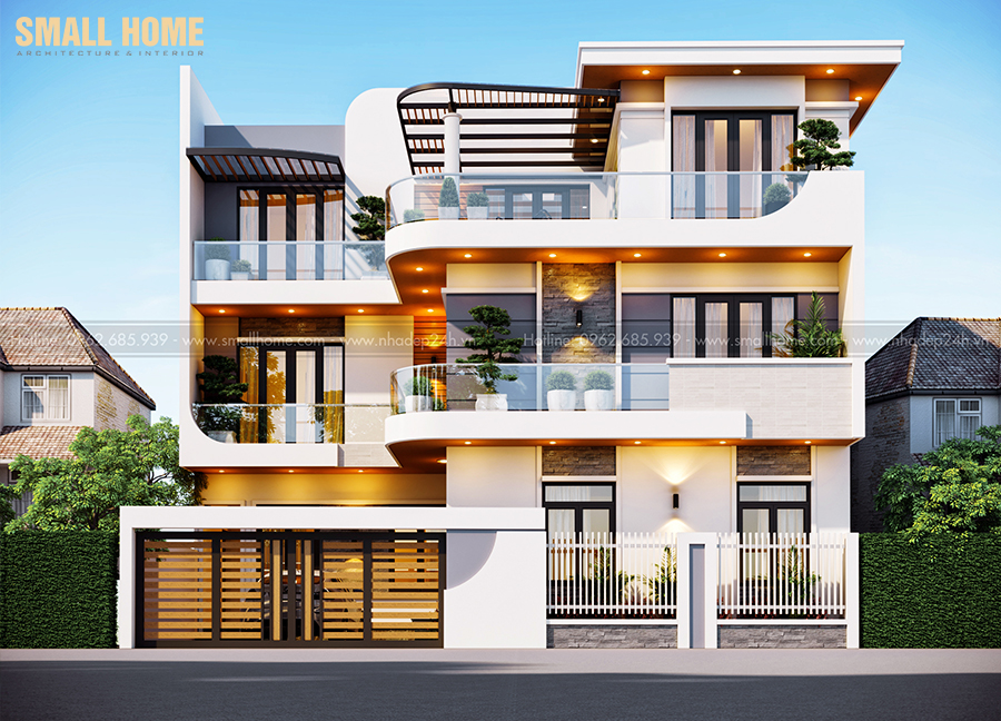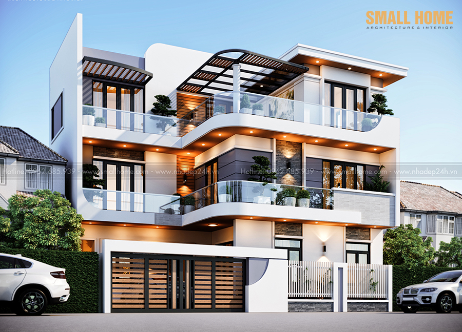 Với các nguyên vật liệu hiện đại khi kết hợp với các mảng tường đặc đã tạo nên tính thẩm mỹ vô cùng lớn về mặt kiến trúc. Thêm vào đó là các chi tiết trang trí thanh lam giả gỗ cũng được tạo nên được sự khác biệt cũng như tạo được điểm nhấn cho không gian kiến trúc hiện đại của mẫu biệt thự 3 tầng đẹp này.