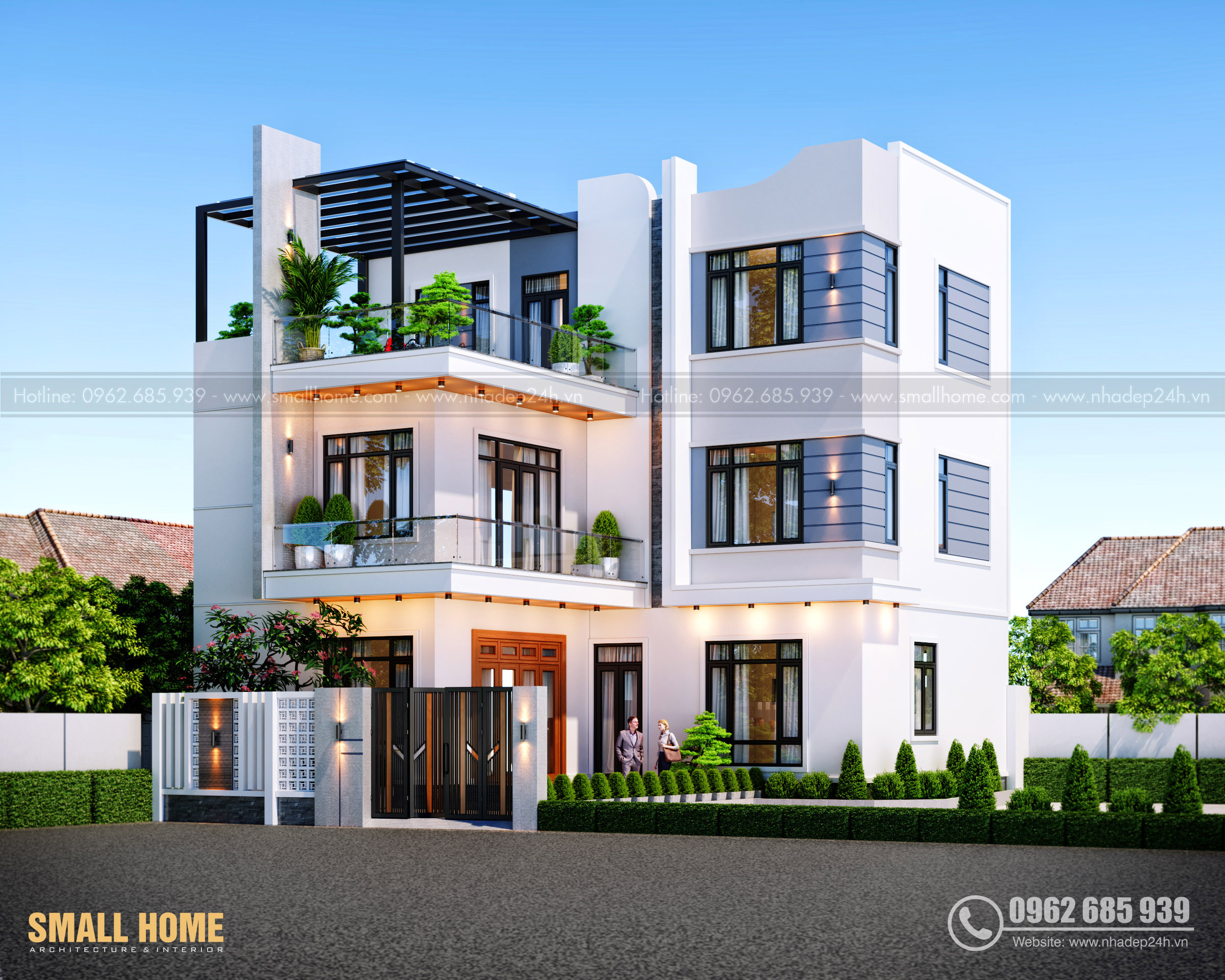 " Một sai lần nhỏ - cả đời không vui", các bạn bỏ nhiều tiền để xây dựng ngôi nhà, nhưng có thể 1 sai lầm nhỏ sẽ khiến căn nhà của bạn trở nên không còn được như ý mình mong muốn. Chính vì thế ngay khi có ý định xây nhà, gia đình chị Hằng tại Hà Nội đã liên hệ ngay công ty Kiến trúc & Nội thất Smallhome để thiết kế tổ ấm cho mình. Với diện tích hơn 200m2, gia đình chị Hằng dành ra 156m2 để xây nhà, diện tích còn lại để làm sân và chỗ để xe. Sau khi nắm bắt được yêu cầu về công năng sử dụng và diện tích đất, các Kiến trúc sư Smallhome đã lên phương án thiết kế mẫu biệt thự hiện đại 3 tầng 4 phòng ngủ đảm bảo đúng mong muốn của gia đình chị. Mời các bạn cùng tìm hiểu mẫu biệt thự do Smallhome thiết kế cho chị Hằng dưới đây nhé.