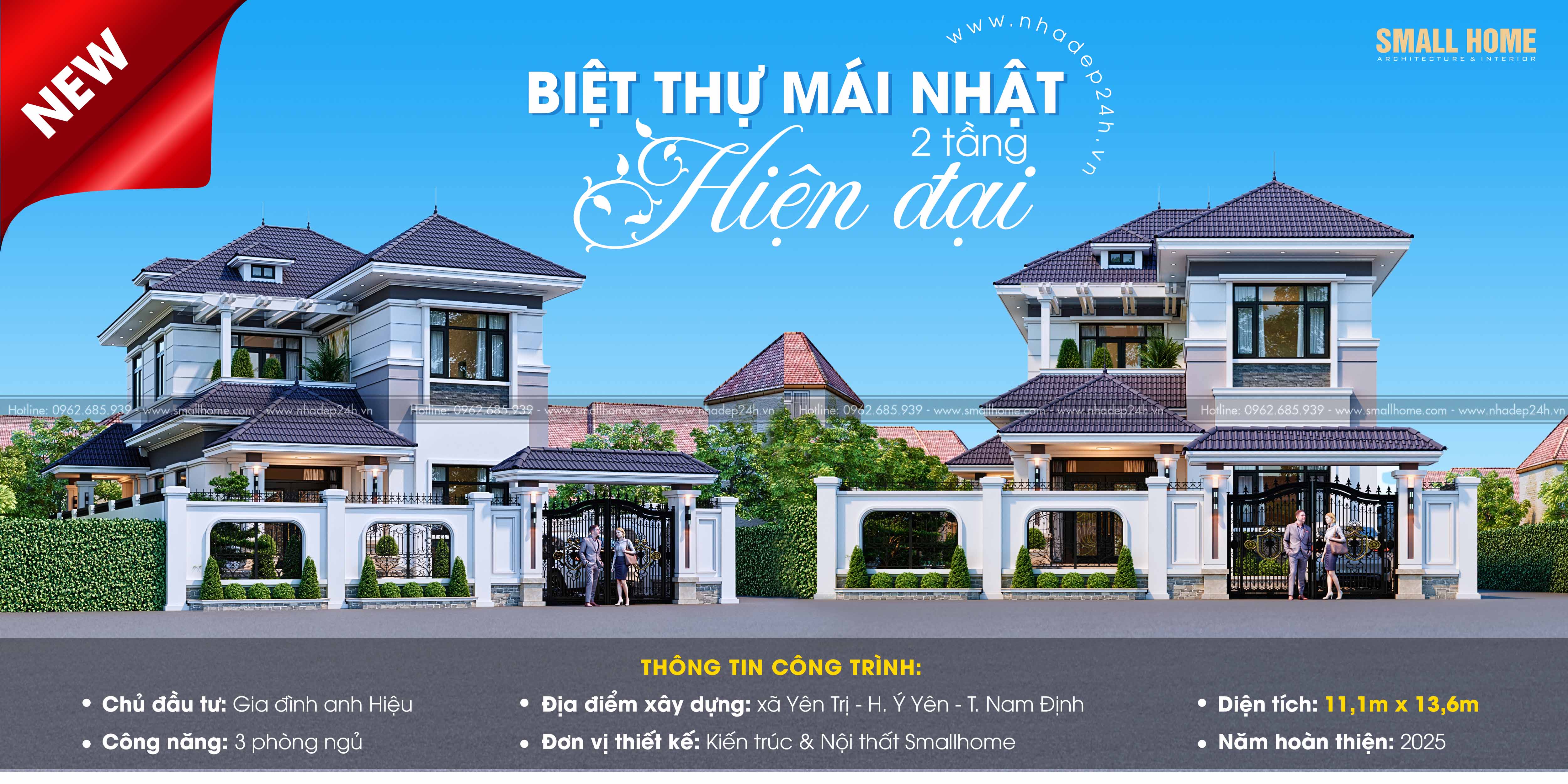Giữa nhịp sống hiện đại ngày càng hối hả, sở hữu một căn biệt thự 2 tầng mái Nhật – nơi giao thoa hoàn hảo giữa thiên nhiên thanh bình và tiện nghi đẳng cấp – chính là ước mơ của biết bao gia đình. Và hôm nay, SMALLHOME tự hào giới thiệu đến quý khách một công trình tiêu biểu: biệt thự mái Nhật 2 tầng vừa tinh tế, vừa đậm chất sống thời thượng, chắc chắn sẽ khiến bạn “yêu từ cái nhìn đầu tiên”.