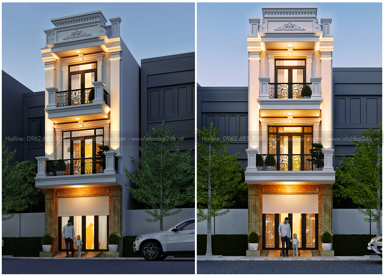 Kiến trúc mặt tiền mẫu nhà phố Hiện đại 3 tầng