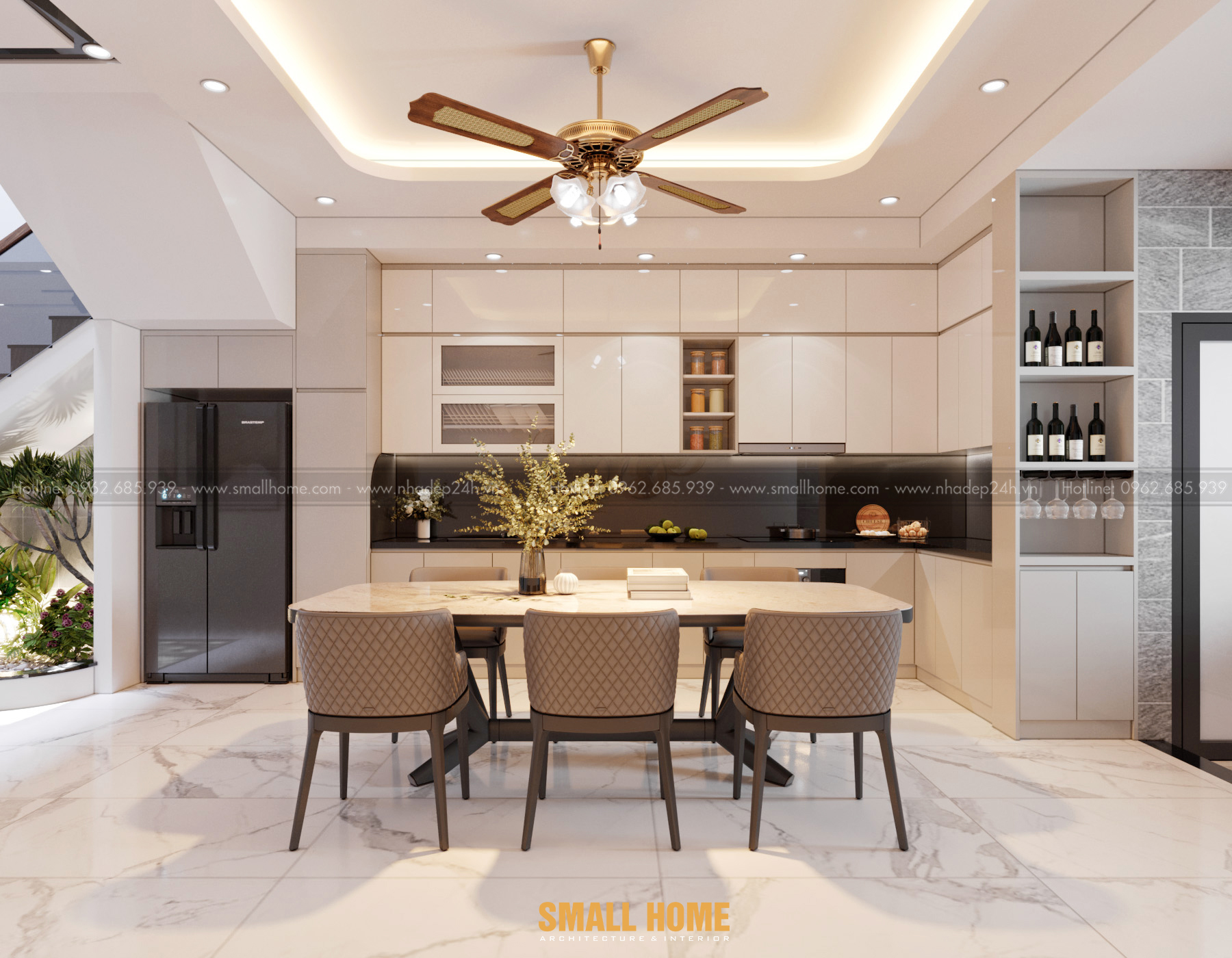Mẫu nội thất phong cách Hiện đại cho nhà phố 3 tầng - phòng bếp + ăn ( hình 2)