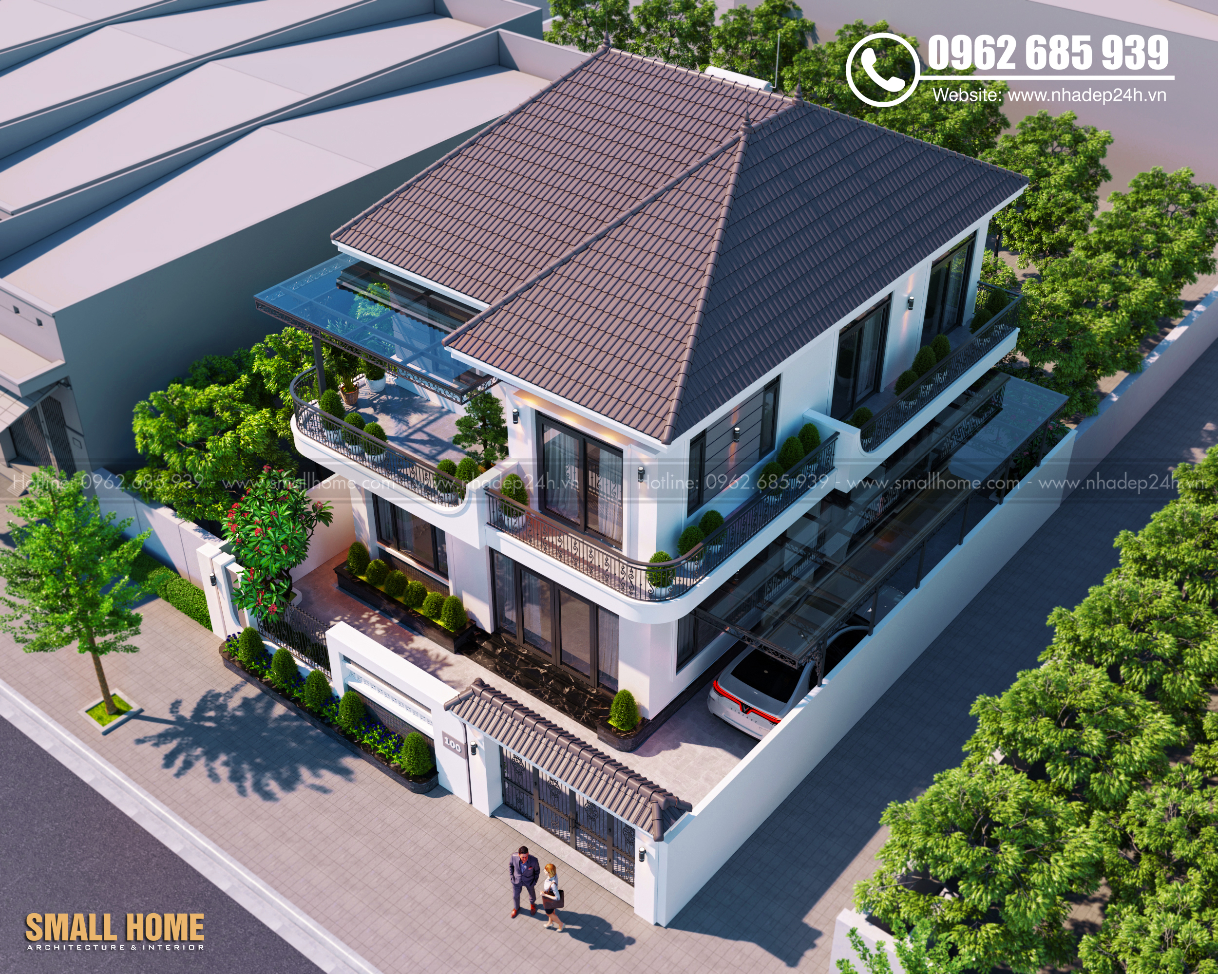 Ngày nay việc đưa mái Nhật vào trong các thiết kế biệt thự hay thiết kế nhà phố không còn quá xa lạ nữa. Hệ mái Nhật làm cho các mẫu thiết kế trở nên nhẹ nhàng và gần gũi hơn nữa lại có nhiều tiện ích, đơn giản hợp với những gia chủ không thích cầu kỳ, câu nệ. Khi xu hướng thay đổi, nhiều gia chủ hướng đến những thiết kế mang phong cách hiện đại, năng động, thì gia đình chị Linh lại chọn lối kiến trúc nhẹ nhàng, gần gũi thiên nhiên. Hiểu được mong muốn của gia đình chị Linh, các kiến trúc sư của SmallHome đã tạo ra một mẫu thiết kế biệt thự mái Nhật 2 tầng hiện đại không quá cứng nhắc mà lại rất sang trọng, nhẹ nhàng đến từng chi tiết ngôi nhà.