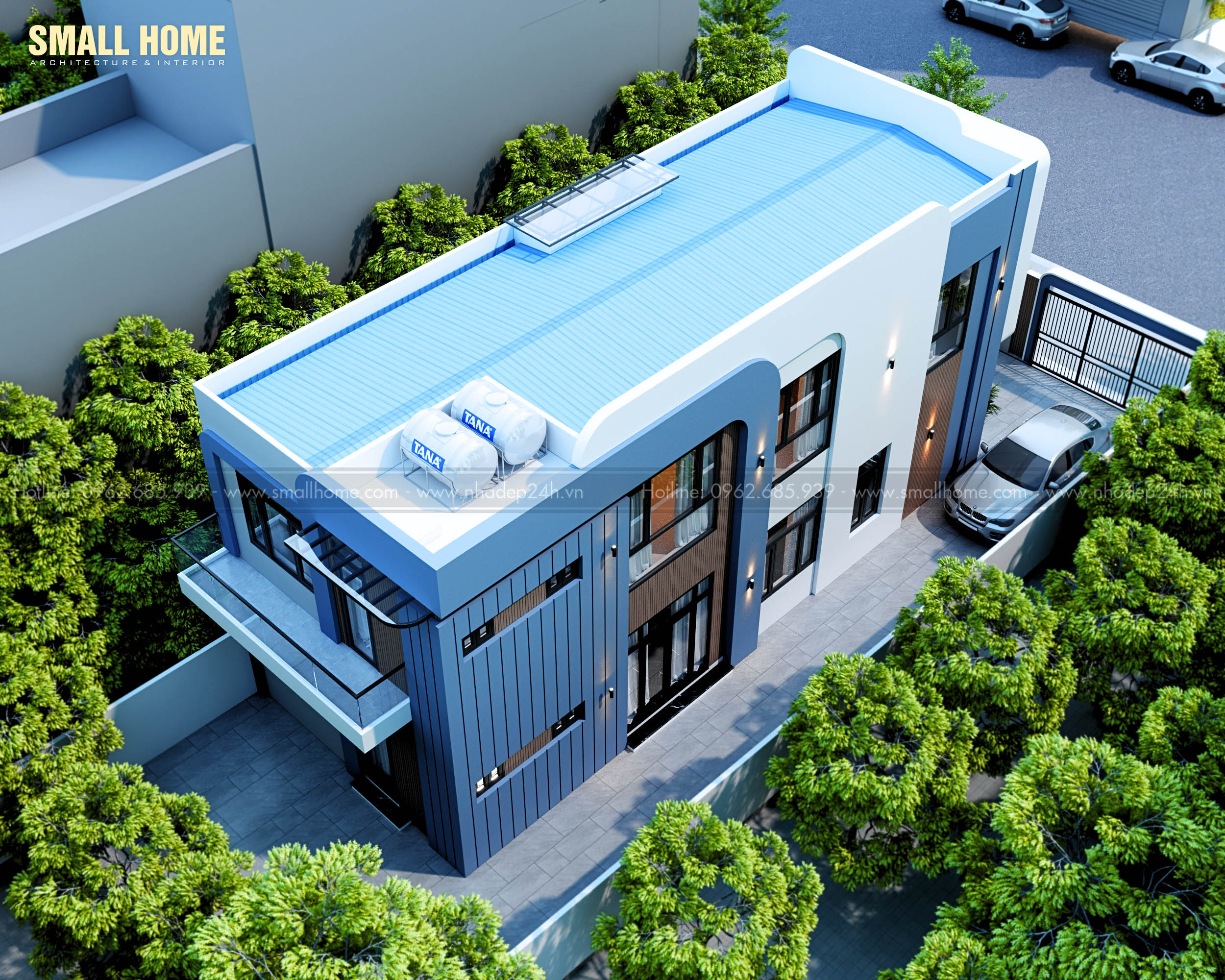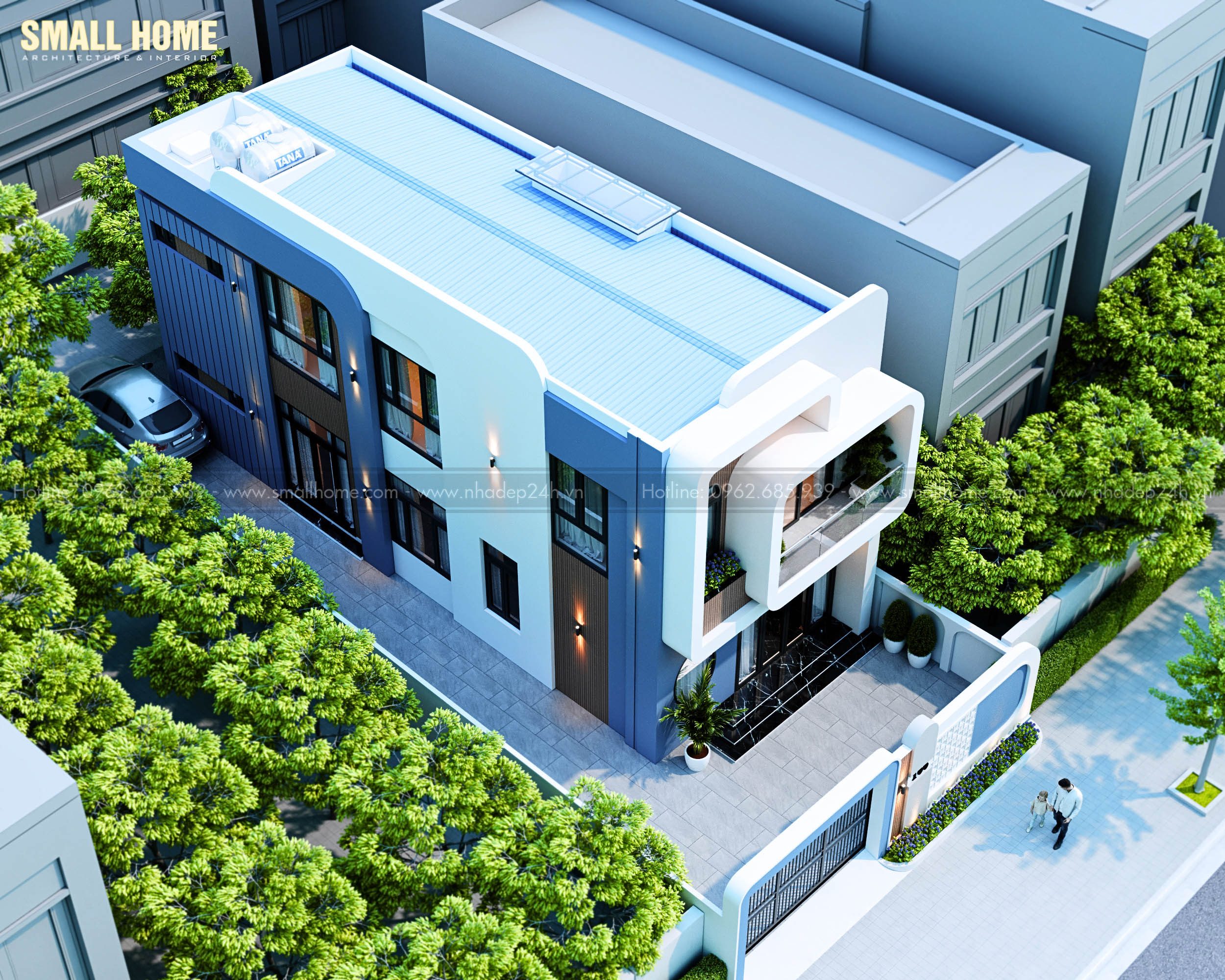 Phối cảnh từ trên xuống của mẫu thiết kế nhà phố đẹp 2 tầng tại Nam Định