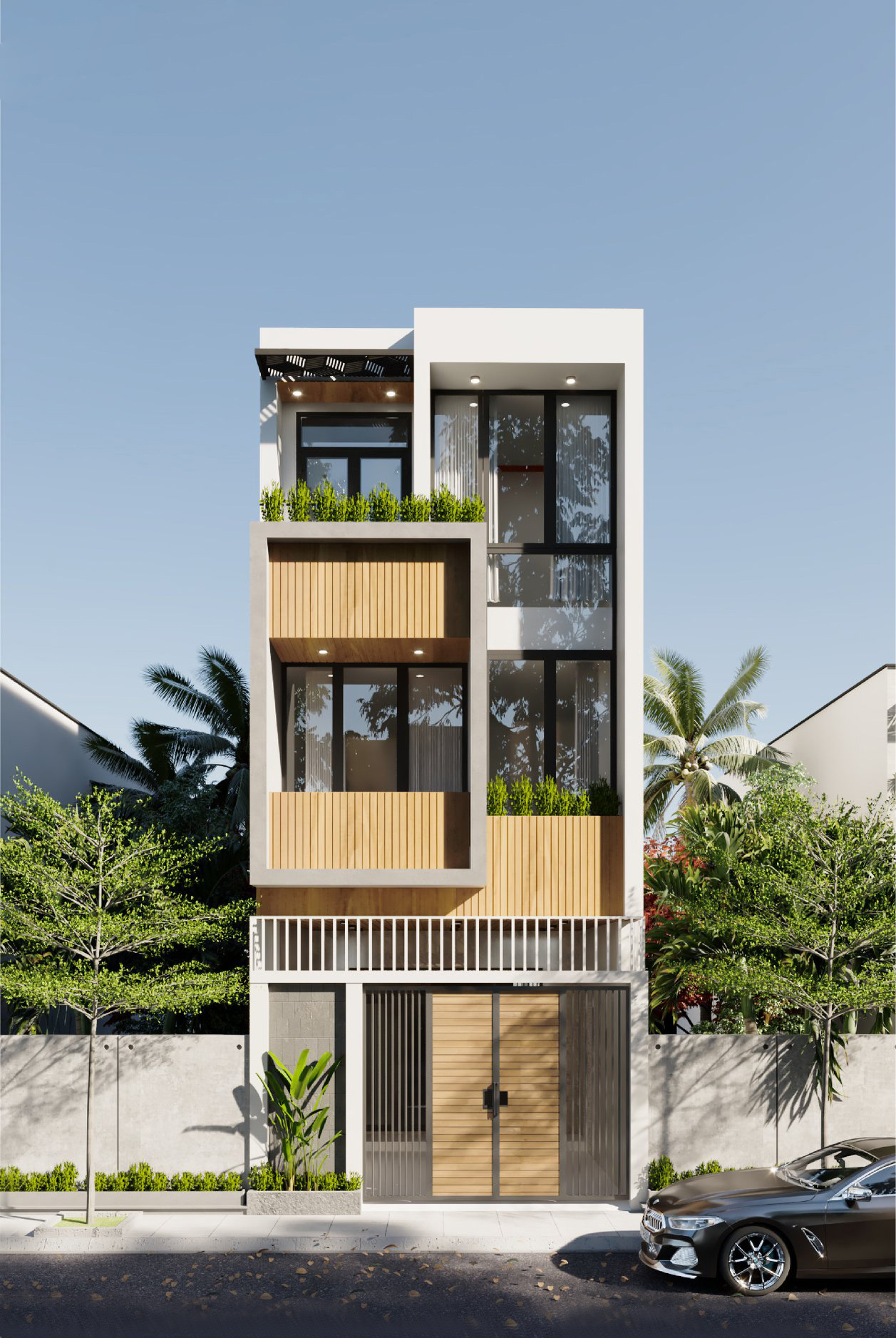 Kiến trúc sư sau khi tiếp nhận yêu cầu của chủ đầu tư, đã tiến hành khảo sát hiện trạng thực tế, từ đó lên kế hoạch thiết kế sơ bộ cho công trình. Kết hợp giữa kinh nghiệm thực tế cùng với yêu cầu và sở thích của gia chủ. Sau gần một tháng, bản phối cảnh mặt tiền căn nhà phố 3 tầng đã kịp lên để bàn giao cho chủ nhà.