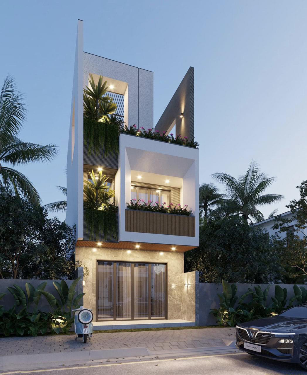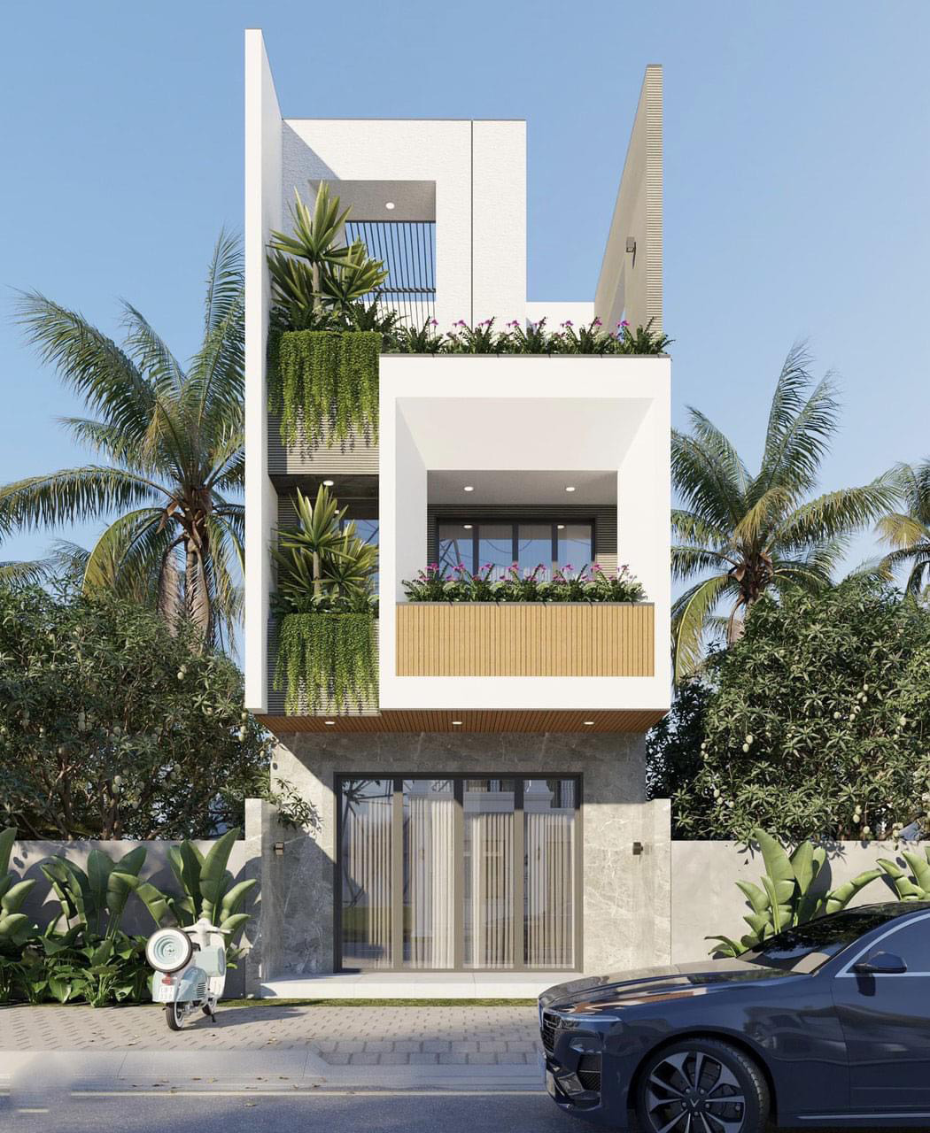 Ngoại thất nhà phố 3 tầng mặt tiền 5m phong cách hiện đại