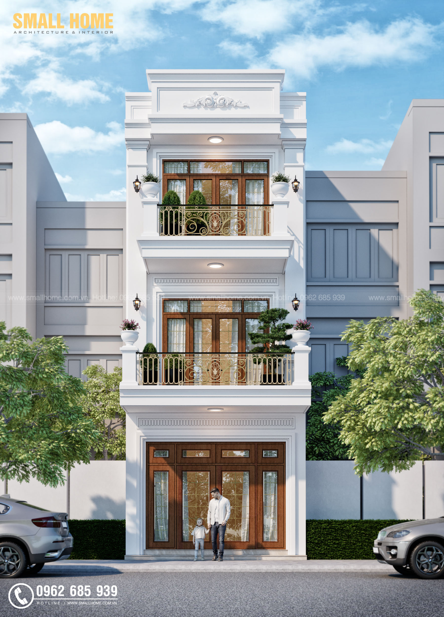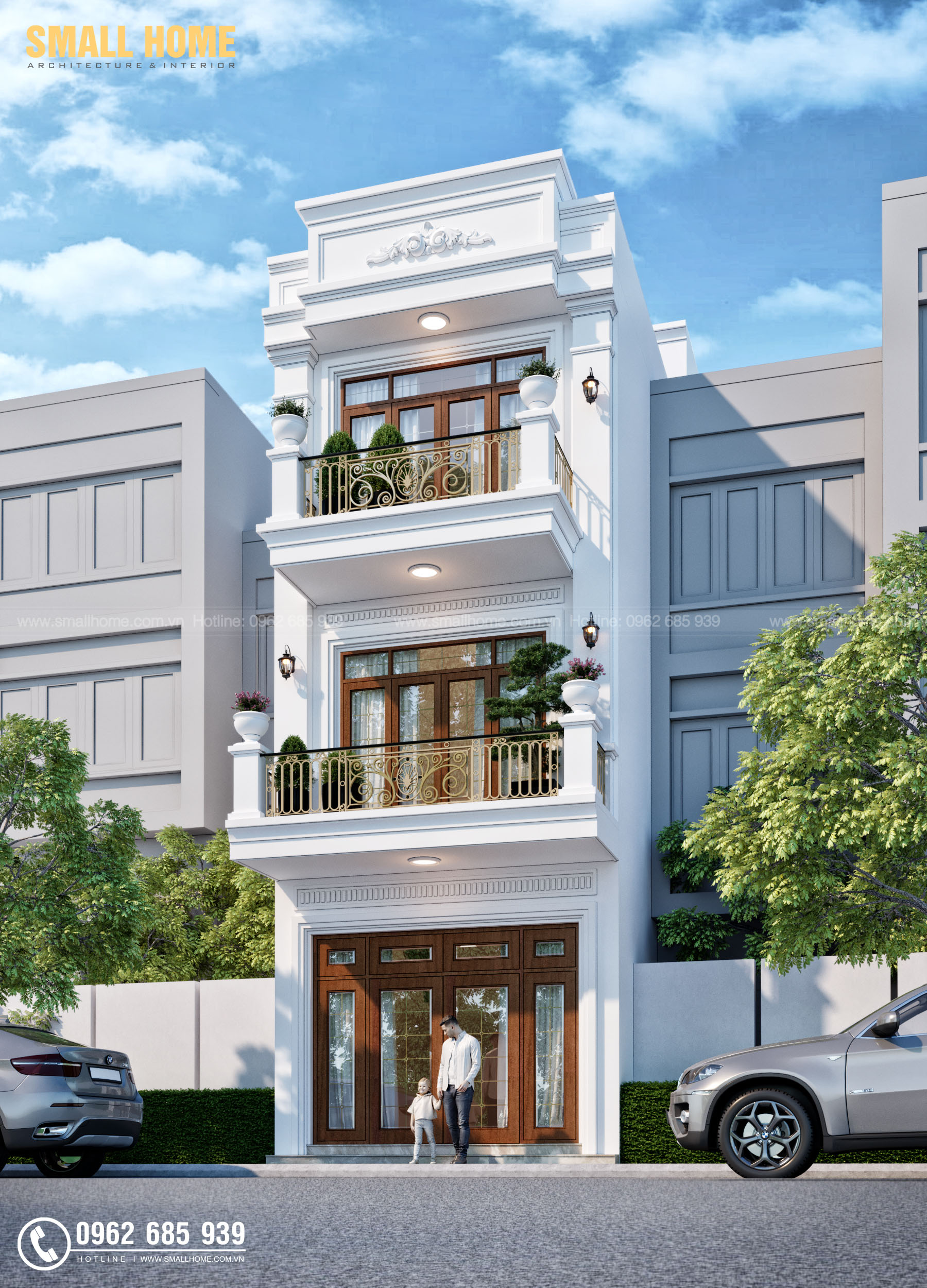Mẫu thiết kế nhà phố 3 tầng phong cách Tân cổ điển đang chiếm được nhiều trái tim của khách hàng nhờ lối kiến trúc mang tính thời thượng, cổ điển nhưng vô cùng sang trọng, đẳng cấp. Sau đây, Kiến trúc & Nội thất Smallhome sẽ giới thiệu đến bạn một công trình vừa được thiết kế và đang trong quá trình thi công đó là mẫu thiết kế nhà phố 3 tầng phong cách Tân cổ điển cho vợ chồng chị Thuyết tại Khu đô thị Mỹ Trung , thành phố Nam Định. Mẫu thiết kế nhà phố 3 tầng đáp ứng đầy đủ những yêu cầu về thẩm mỹ, công năng, chính điều ấy thiết kế này đã lấy được sự hài lòng tuyệt đối từ chủ nhà. Hãy cùng Smallhome tham khảo công trình này nhé!