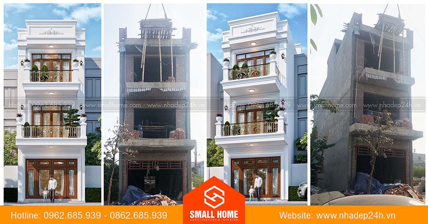 Hình ảnh thi công mẫu thiết kế nhà phố 3 tầng phong cách Tân cổ điển