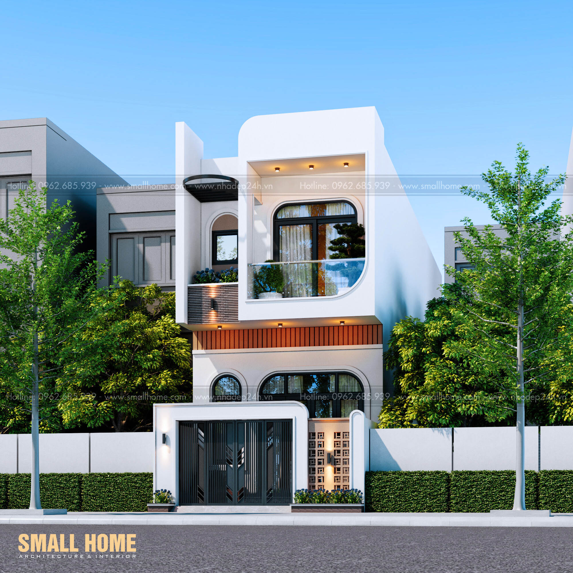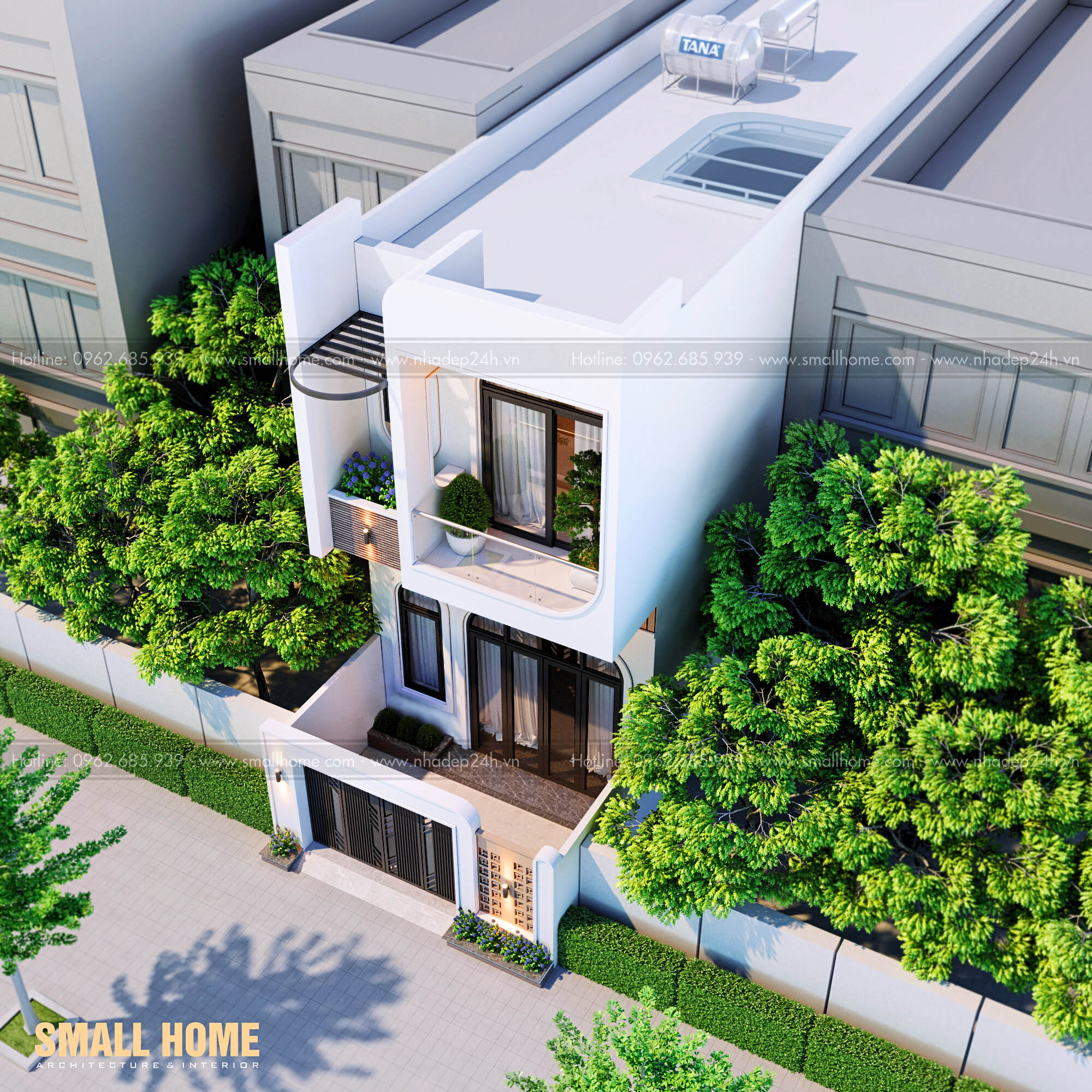 Sau khi nhận được yêu cầu của gia đình chị Diến, các Kiến trúc sư của Smallhome đã lên phương án bố trí mặt bằng công năng, tối ưu các yêu cầu và không gian nội thất để bố trí 3 phòng ngủ cho gia đình chị. Từ mặt bằng đã chốt phương án, các kiến trúc sư đã thiết kế lên 3D kiến trúc của mẫu nhà phố 2 tầng.