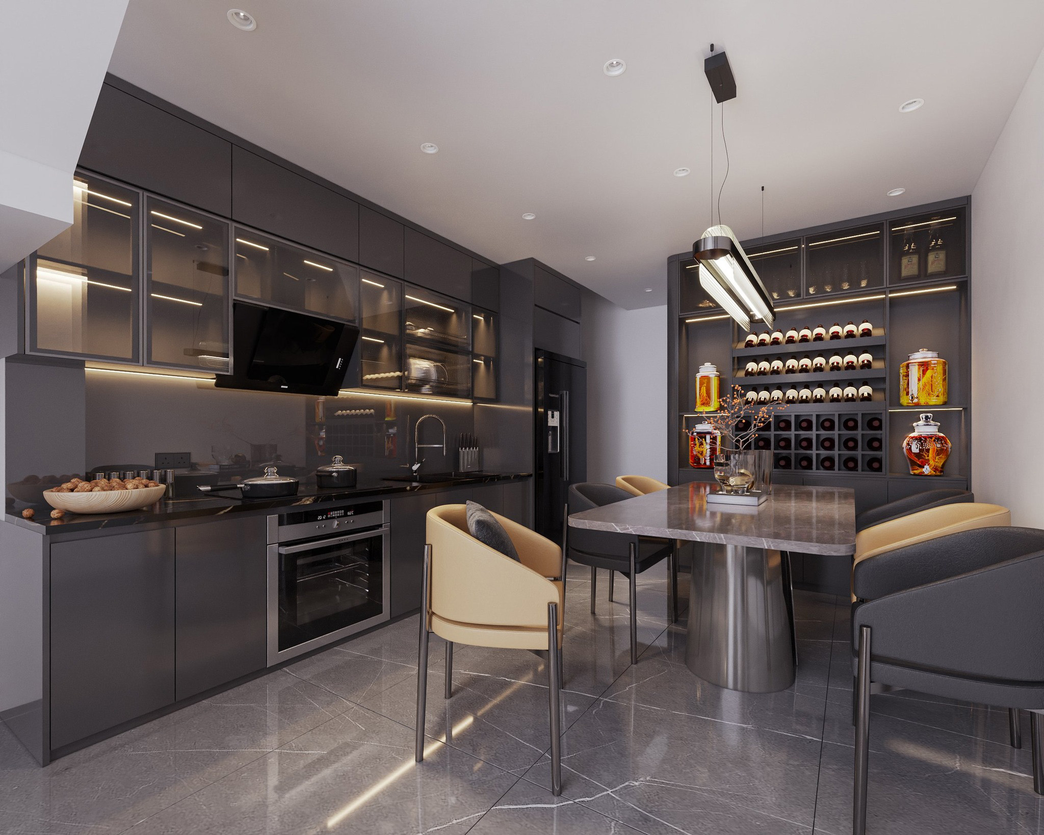 Mẫu thiết kế nội thất nhà phố Hiện đại 2 tầng - Nội thất phòng bếp + ăn