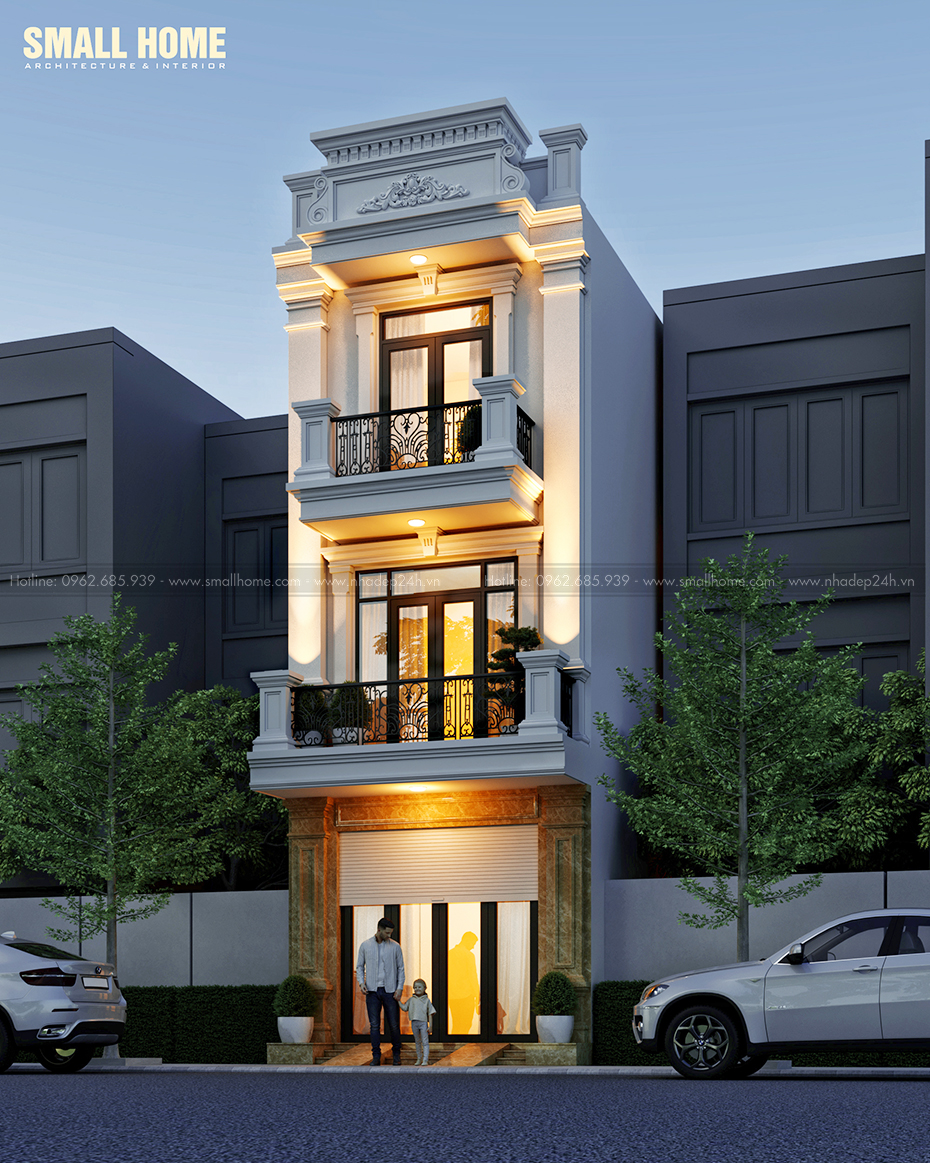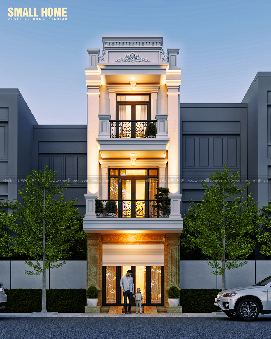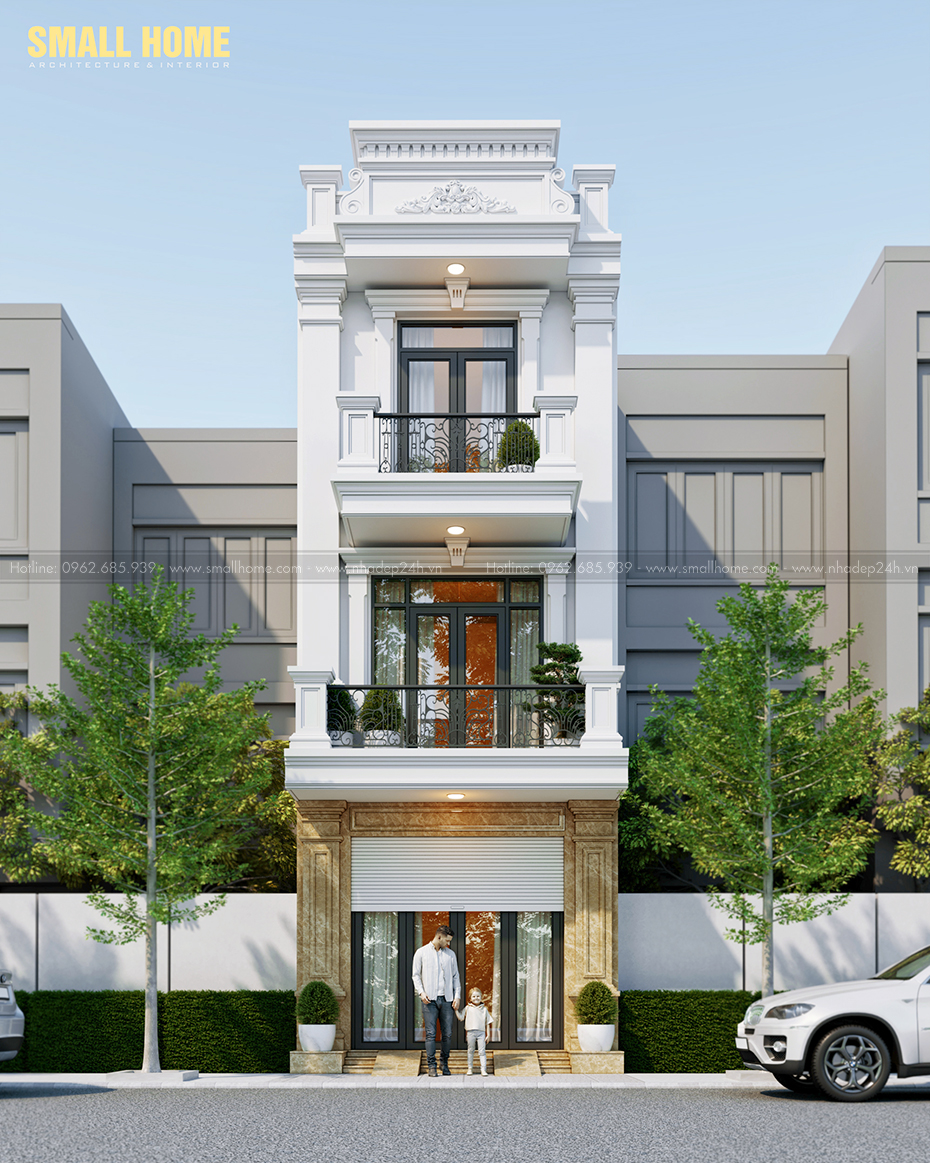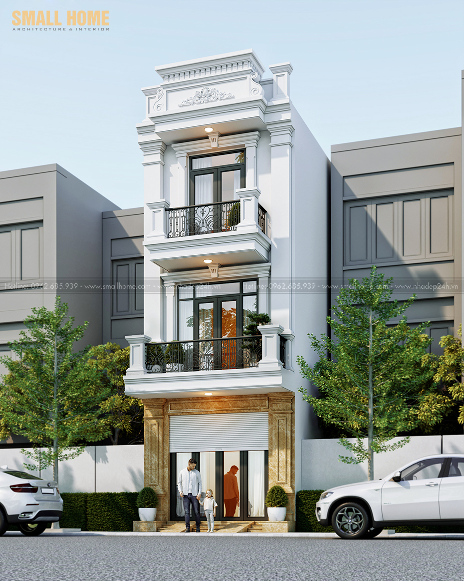 Nếu bạn yêu thích mẫu nhà phố 3 tầng phong cách tân cổ điển trên hay có nhu cầu thiết kế - thi công xây dựng nhà: nhà phố, biệt thự, lâu đài, khách sạn... theo nhu cầu sử dụng hãy liên hệ với Kiến trúc & Nội thất Smallhome qua hotline 0962.685.939 để được tư vấn miễn phí nhé!