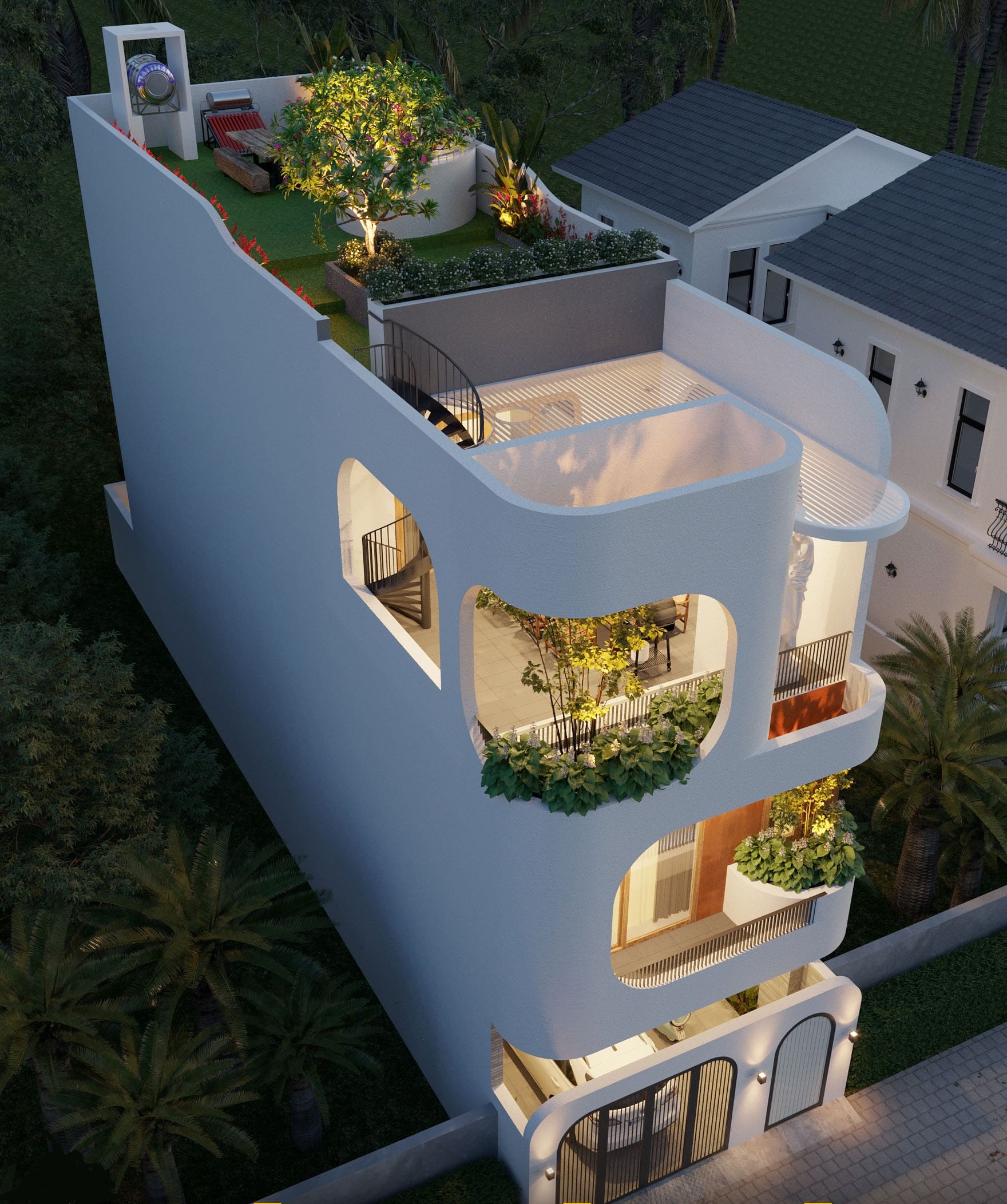 Thiết kế sân vườn sân thượng làm thay đổi diện mạo của ngôi nhà, tạo ra một không gian xanh cuốn hút, khiến ngôi nhà trở nên đặc biệt, trở thành điểm nhấn ấn tượng trong mắt mọi người. Màu xanh tươi mát của cây xanh làm tăng sức sống cho không gian và phá vỡ sự đơn điệu, nhàm chán giữa phố phường tấp nập.