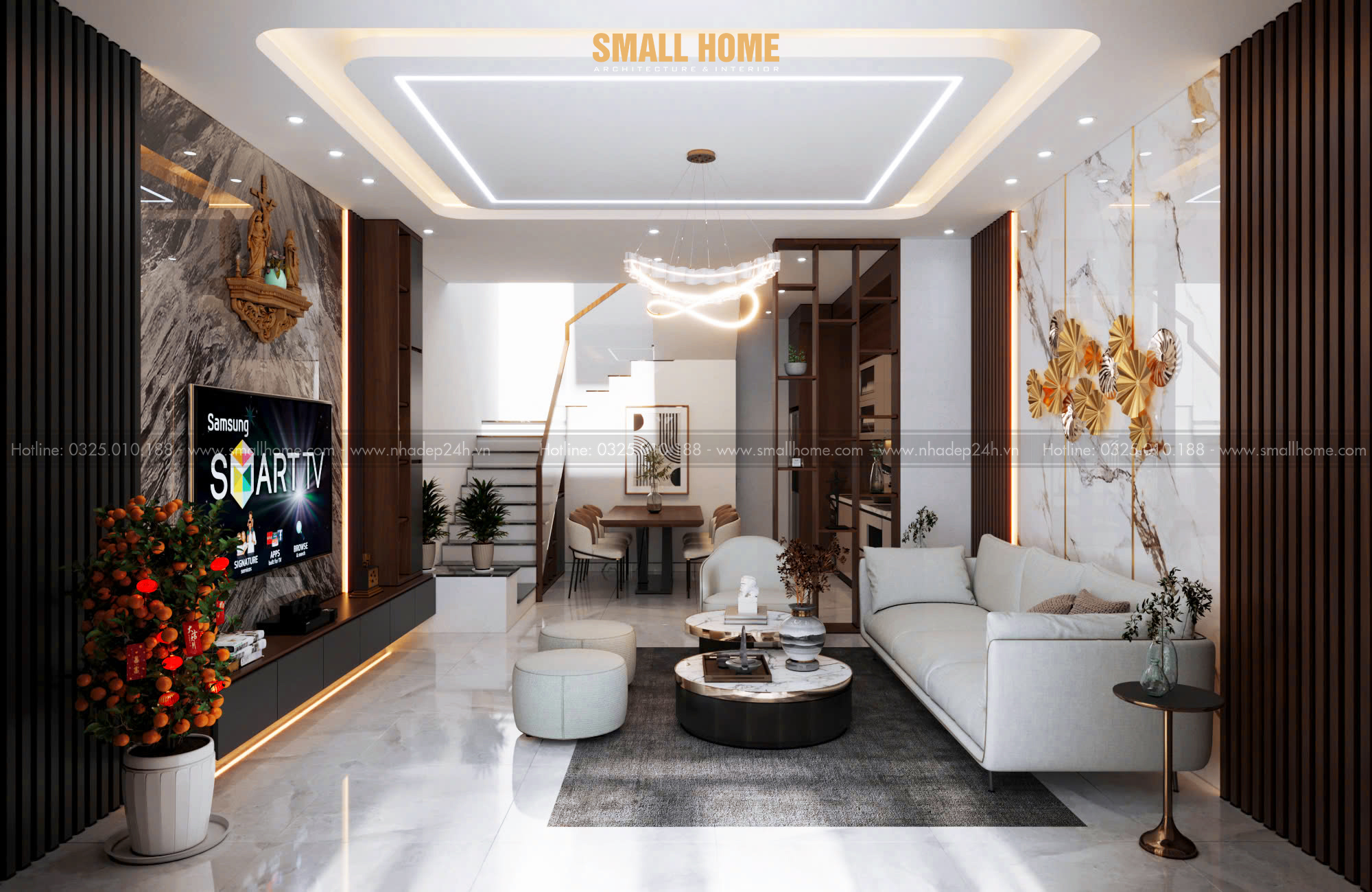Kiến trúc & Nội thất Smallhome là đơn vị chuyên Thiết kế - Thi công Nội thất trọn gói với hành trình hơn 10 năm thành lập và phát triển, SMALLHOME tự hào là một trong những đơn vị hàng đầu Việt Nam trong lĩnh vực thiết kế, thi công kiến trúc & nội thất trọn gói. Đồng hành cùng quý khách hàng là đội ngũ chuyên gia, KTS giàu kinh nghiệm, luôn tâm huyết với nghề và luôn mang trong mình SỨ MỆNH đem đến cho khách hàng những công trình "Đẳng Cấp - Chất Lượng" để góp phần giúp cuộc sống của khách hàng không chỉ SỐNG mà còn là TẬN HƯỞNG với đúng phương châm của SMALLHOME: "Sáng tạo không gian - Nâng tầm cuộc sống".