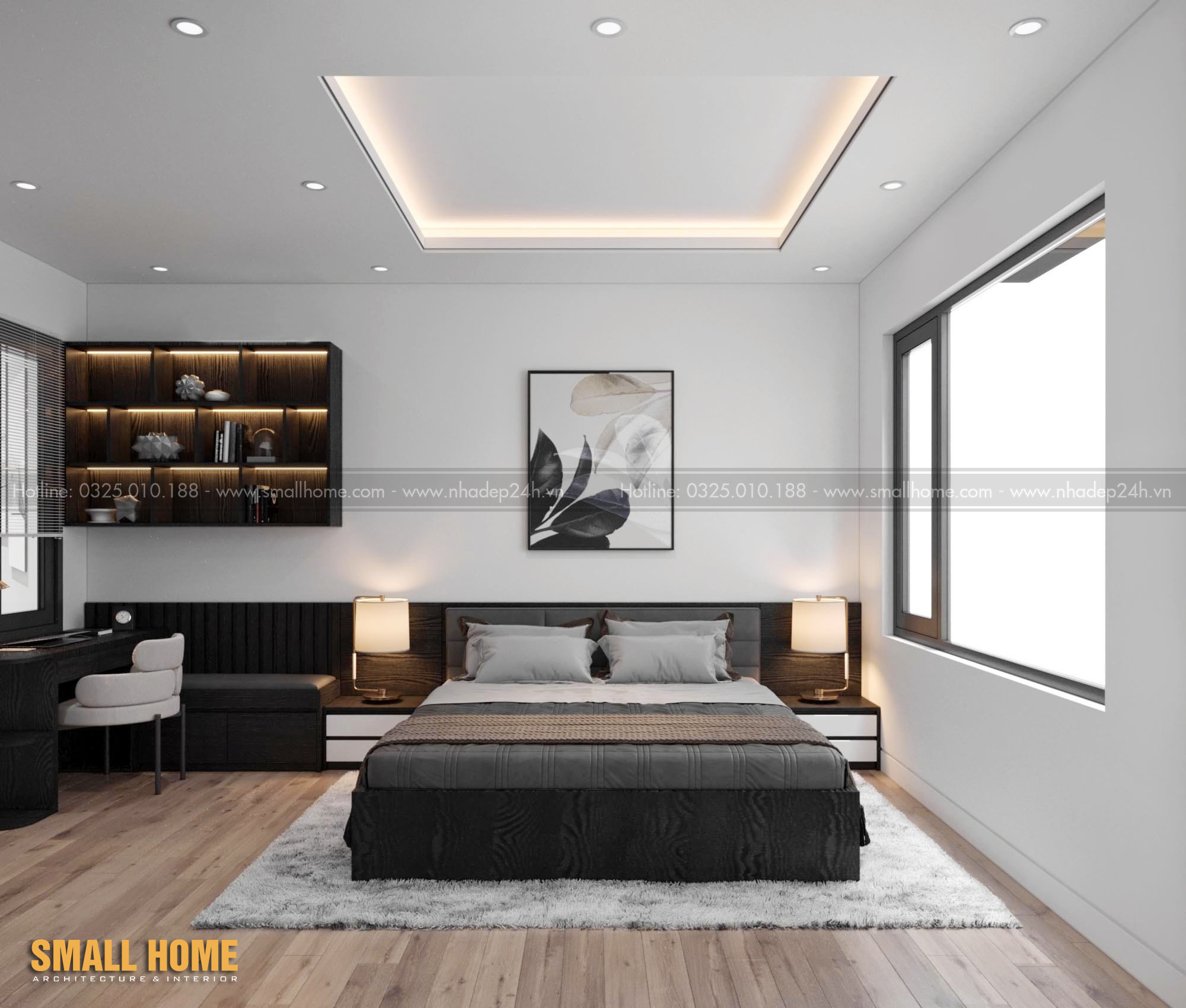 Phòng ngủ lớn được thiết kế theo sở thích của gia đình anh Sỹ nhưng nó không hề lạc quẻ so với tổng thể. Nhìn vào phòng ngủ, chúng ta có thể thấy được phong cách thiết kế hiện đại, anh Sỹ muốn phòng ngủ cho các con phải theo phong cách nội thất hiện đại, tiện nghi và mới mẻ, nhưng vẫn yêu thích sự yên bình, lịch lãm, đẳng cấp.