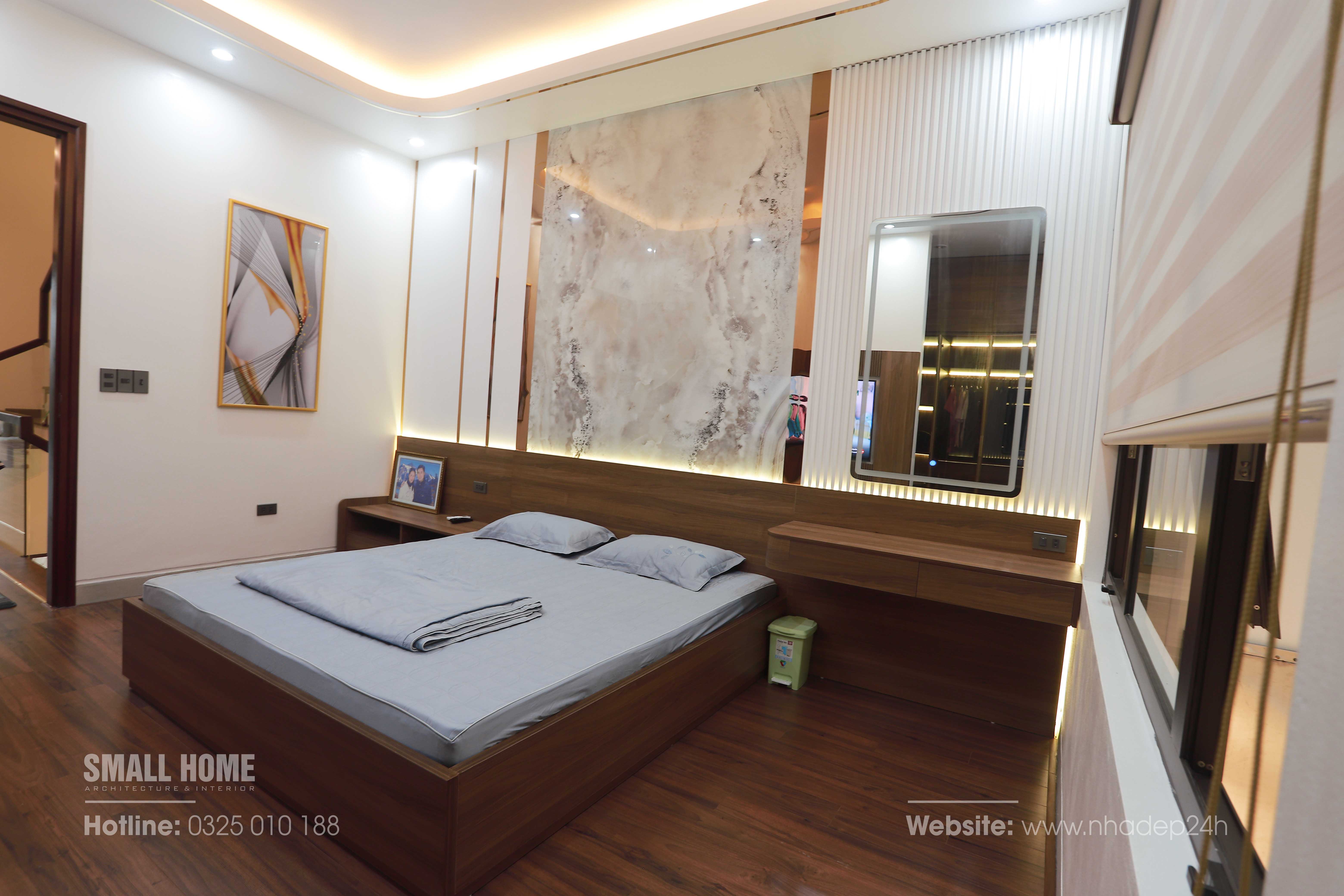 Tổng thể căn phòng là sự kết hợp hoàn hảo giữa công năng và thẩm mỹ, thể hiện rõ định hướng thiết kế hiện đại, tối giản nhưng có chiều sâu. Smallhome không chỉ tạo nên một nơi nghỉ ngơi – mà còn kiến tạo một không gian sống chuẩn phong cách, phản ánh gu thẩm mỹ và đẳng cấp của gia chủ.