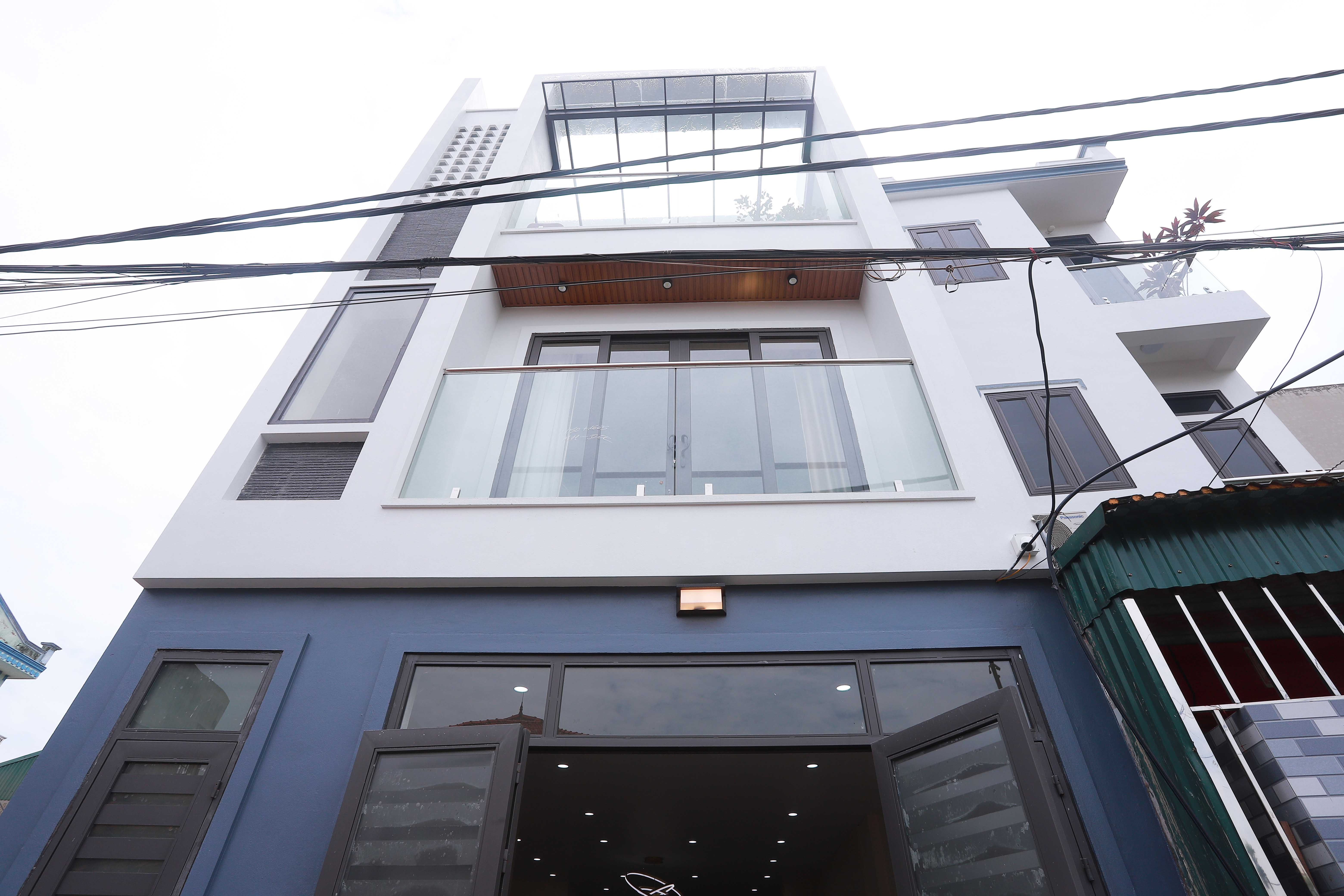 Toàn bộ khu vực mặt tiền công trình được thay thế bằng cửa kính xingfa cao cấp lấy sáng tối đa cho ngôi nhà được bố trí khối để ở tầng 2 được thiết kế bồn hoa tinh tế tô điểm cho ngôi nhà, mang không gian thiên nhiên thoáng mát gần gũi vơi cuộc sống. Lan can ban công sử dụng chất liệu kính cường lực cao cấp làm cho kiến trúc ngôi nhà trở nên sang trọng, không gian như bừng sáng đầy sinh khí.