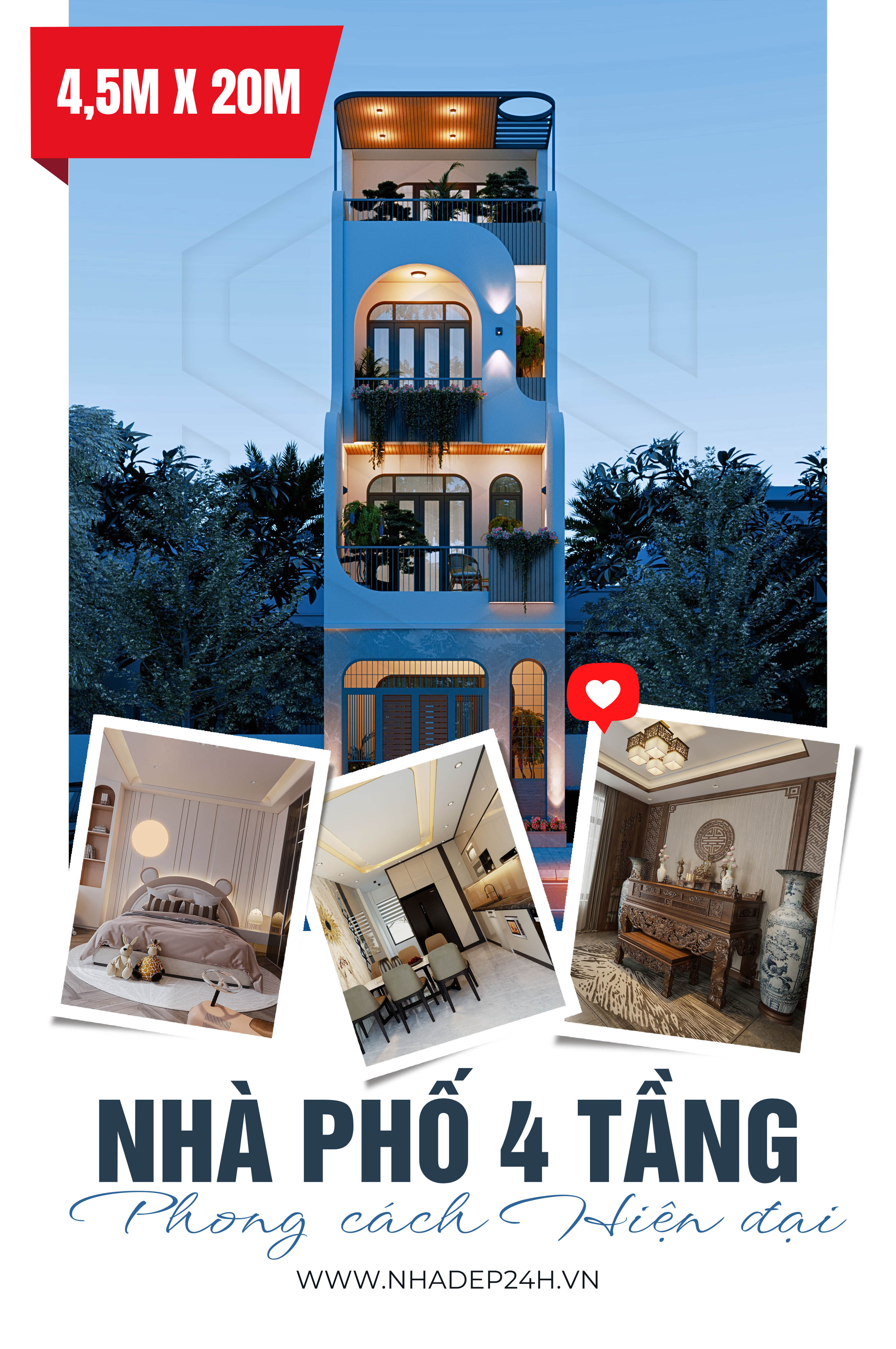 Thiết kế nhà phố 3 tầng hiện đại 4.5x20m tại Quảng Ninh – Không gian sống xanh, tối ưu và chi tiết