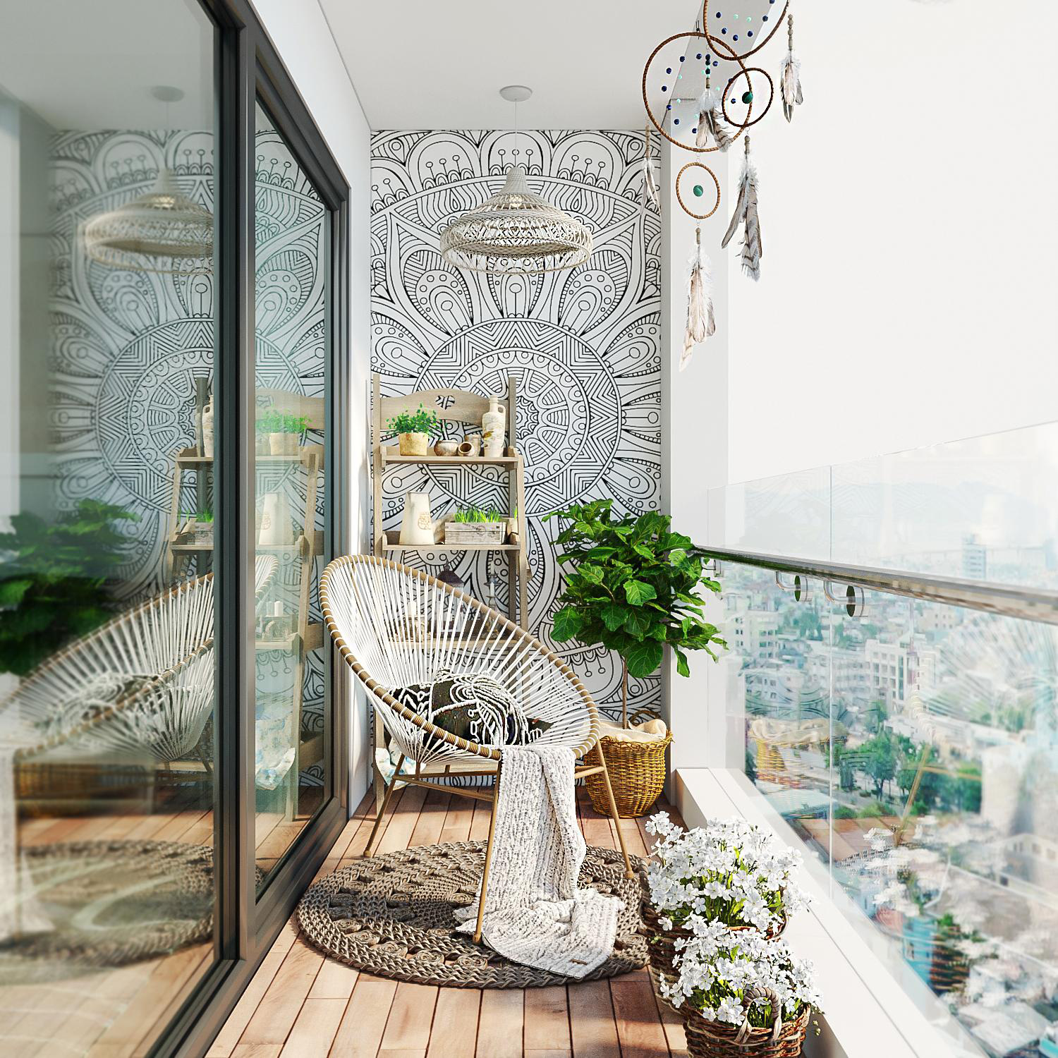 Khoảng ban công thoáng với mẫu thiết kế chung cư 90m2