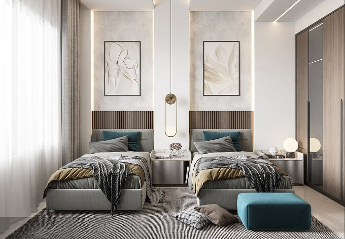 – Tủ hoặc kệ đầu giường (buồng một giường đơn: 01 tủ/kệ đầu giường, buồng một giường đôi: 02 tủ/kệ đầu điện đặt ở tủ đầu giường