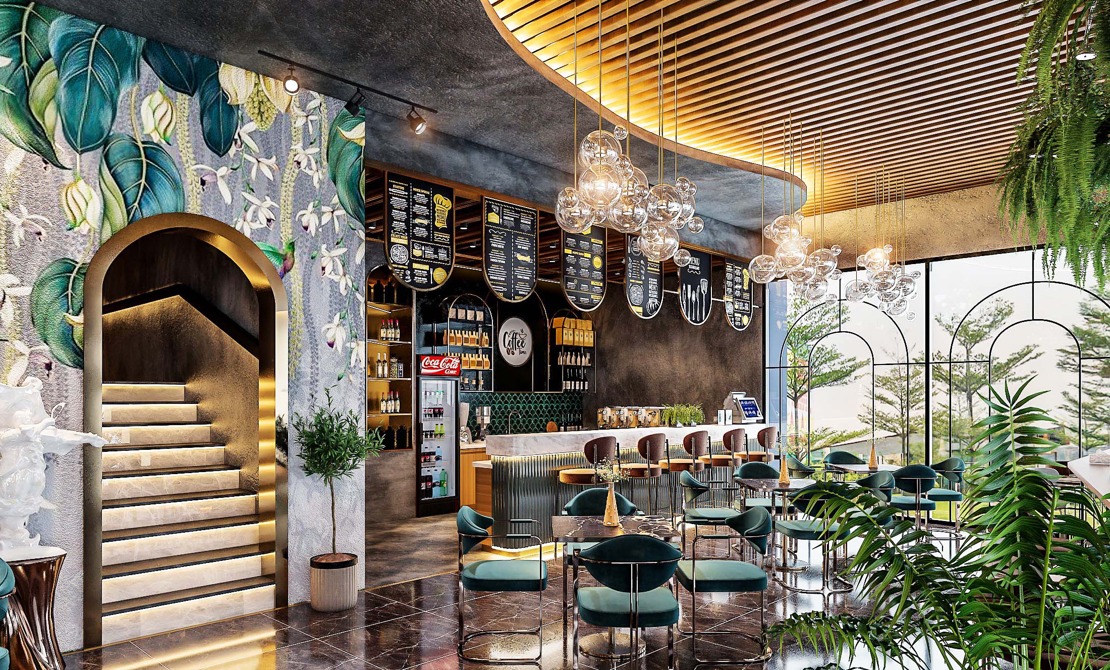 Thiết kế nội thất nhà hàng kết hợp không gian xanh