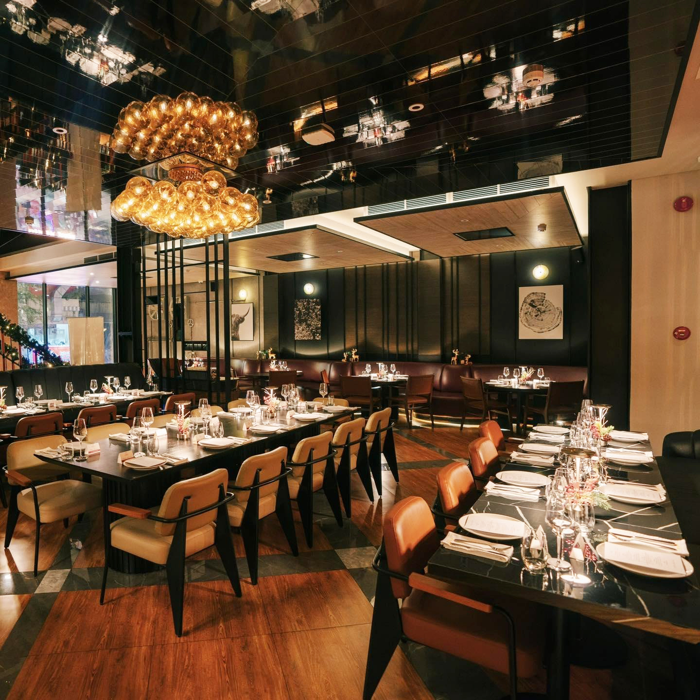 Nhà hàng có thiết kế nội thất sang trọng thường sử dụng những chất liệu cao cấp như da, đồ dùng trang trí bằng đồng toát lên được vẻ đẹp của sự lộng lẫy. Như trong thiết kế này, không gian ăn uống của khách hàng bao trùm bởi những tông màu quý tộc, chất liệu được lựa chọn kỹ lưỡng, tạo bầu không khí ăn uống cực kỳ ấn tượng.