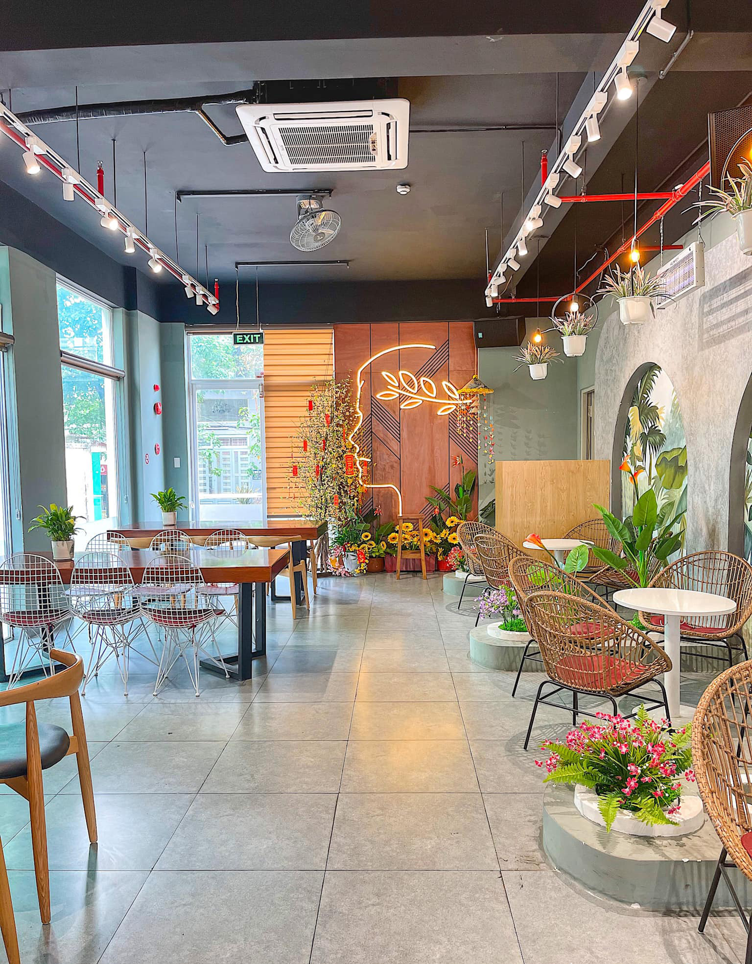 Thiết kế không gian quán cafe hài hòa và đơn giản với việc bố trí nội thất khoa học