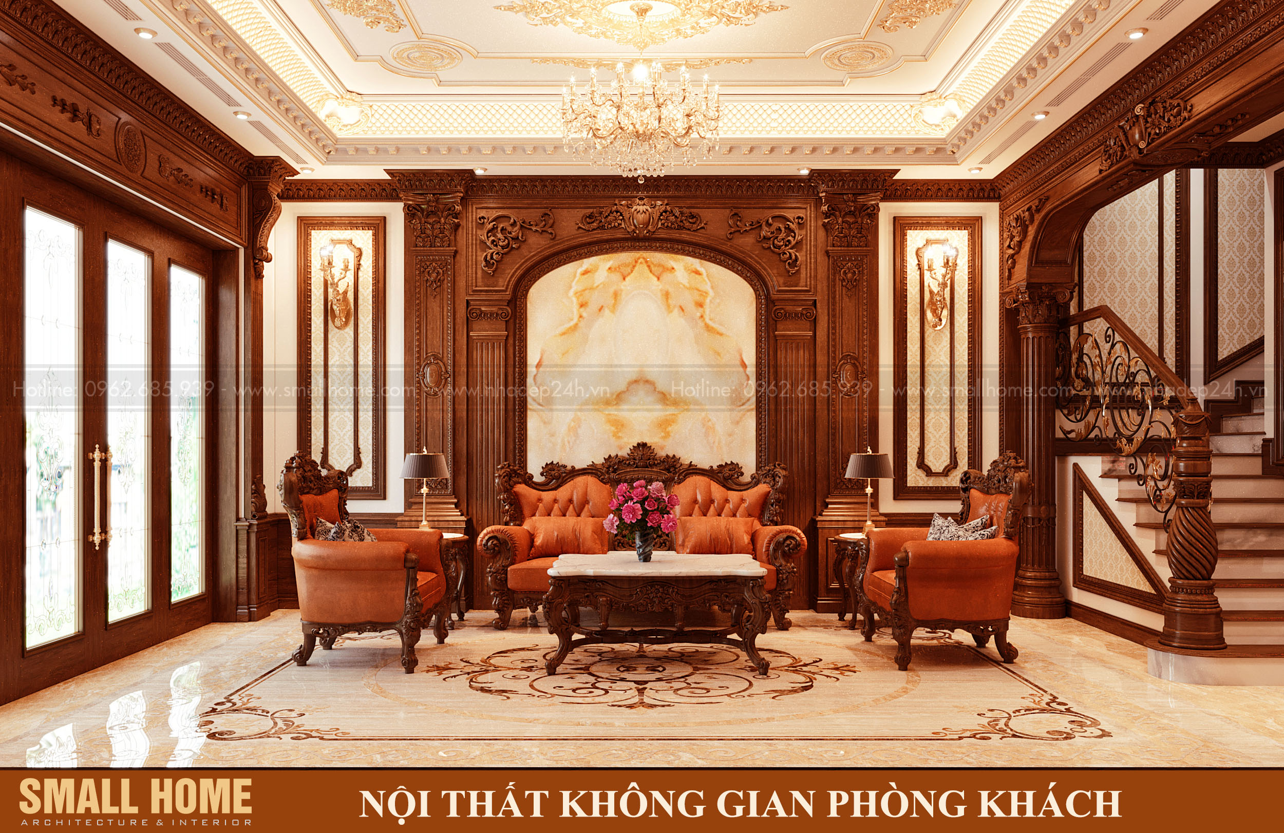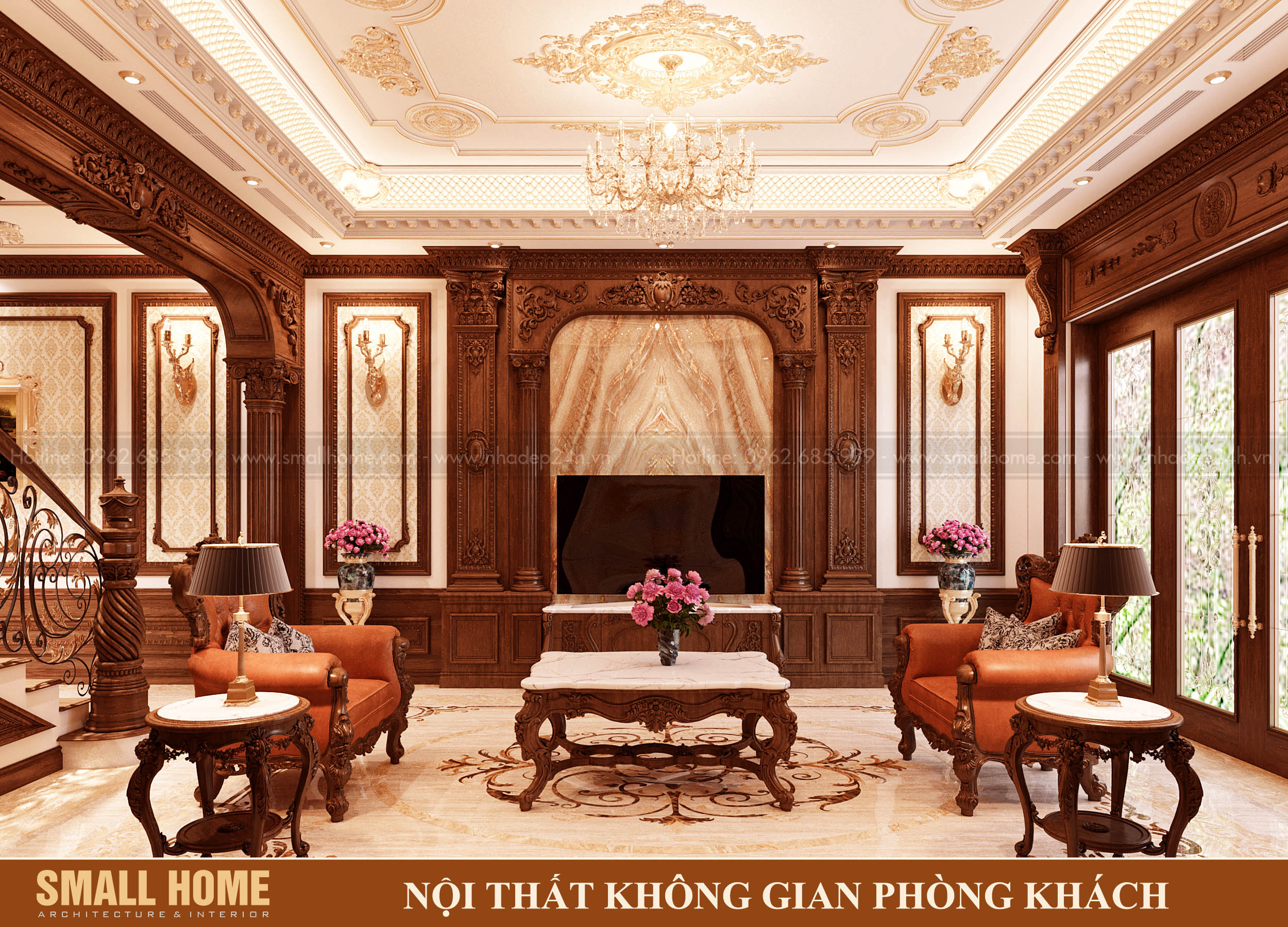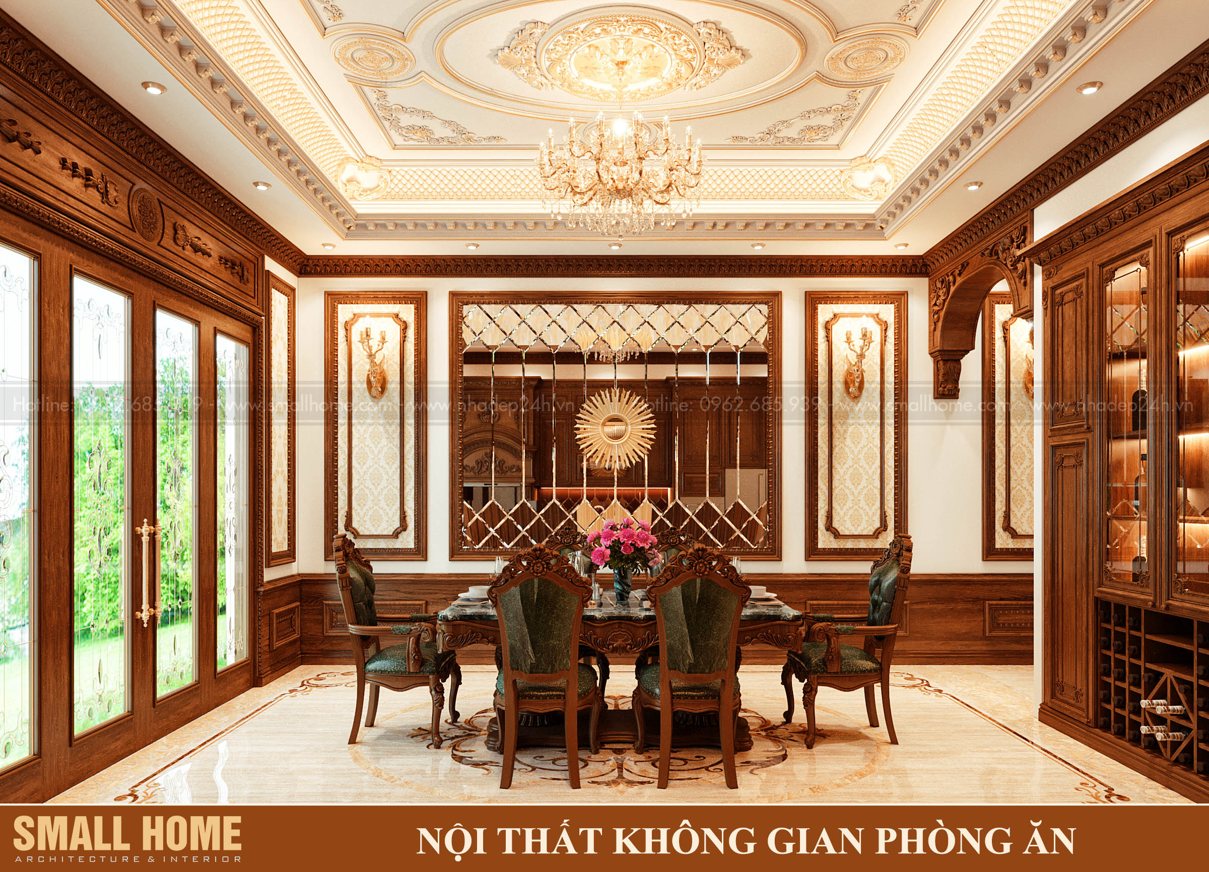 Thiết kế mẫu nội thất tân cổ điển gỗ tự nhiên sang trọng cho biệt thự