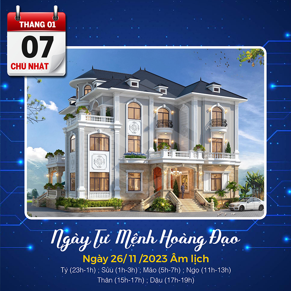 Chủ Nhật, ngày 07 tháng 01 năm 2024 (Âm lịch: Ngày 26/11/2023)