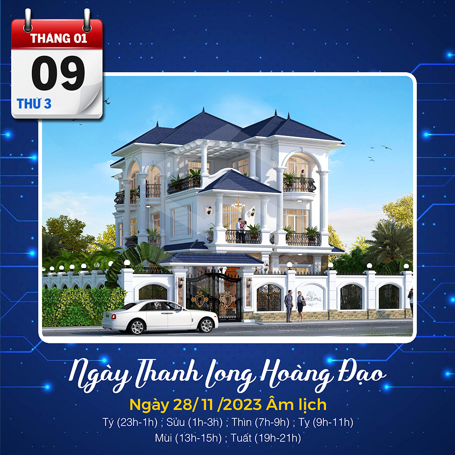 Thứ 3, ngày 09 tháng 01 năm 2024 (Âm lịch: Ngày 28/11/2023)