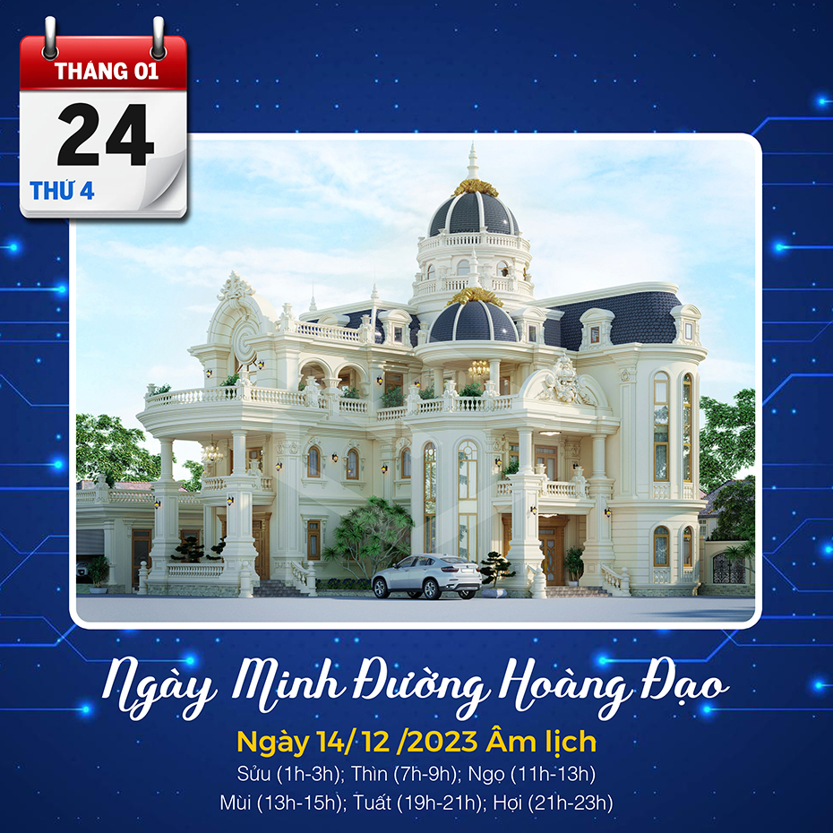 Thứ 4, ngày 24 tháng 01 năm 2024 (Âm lịch: Ngày 14/12/2023)