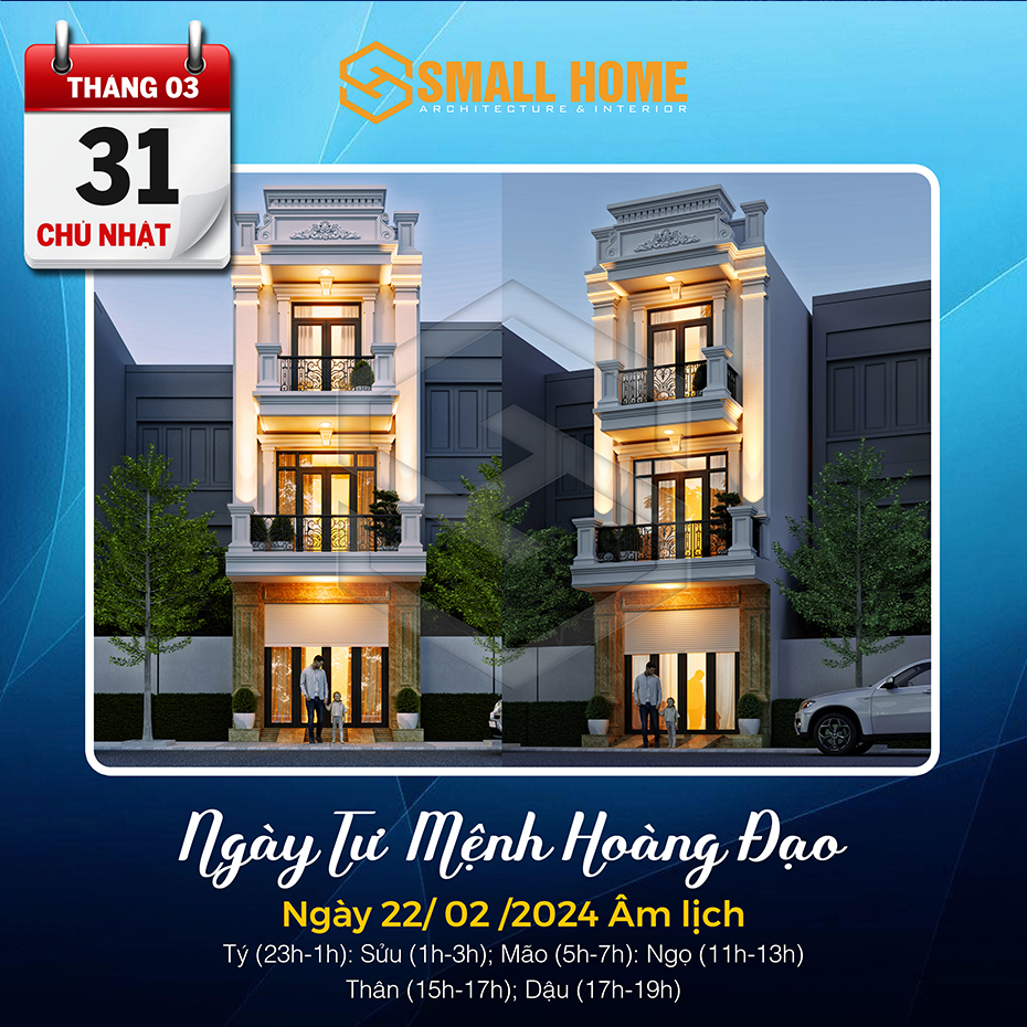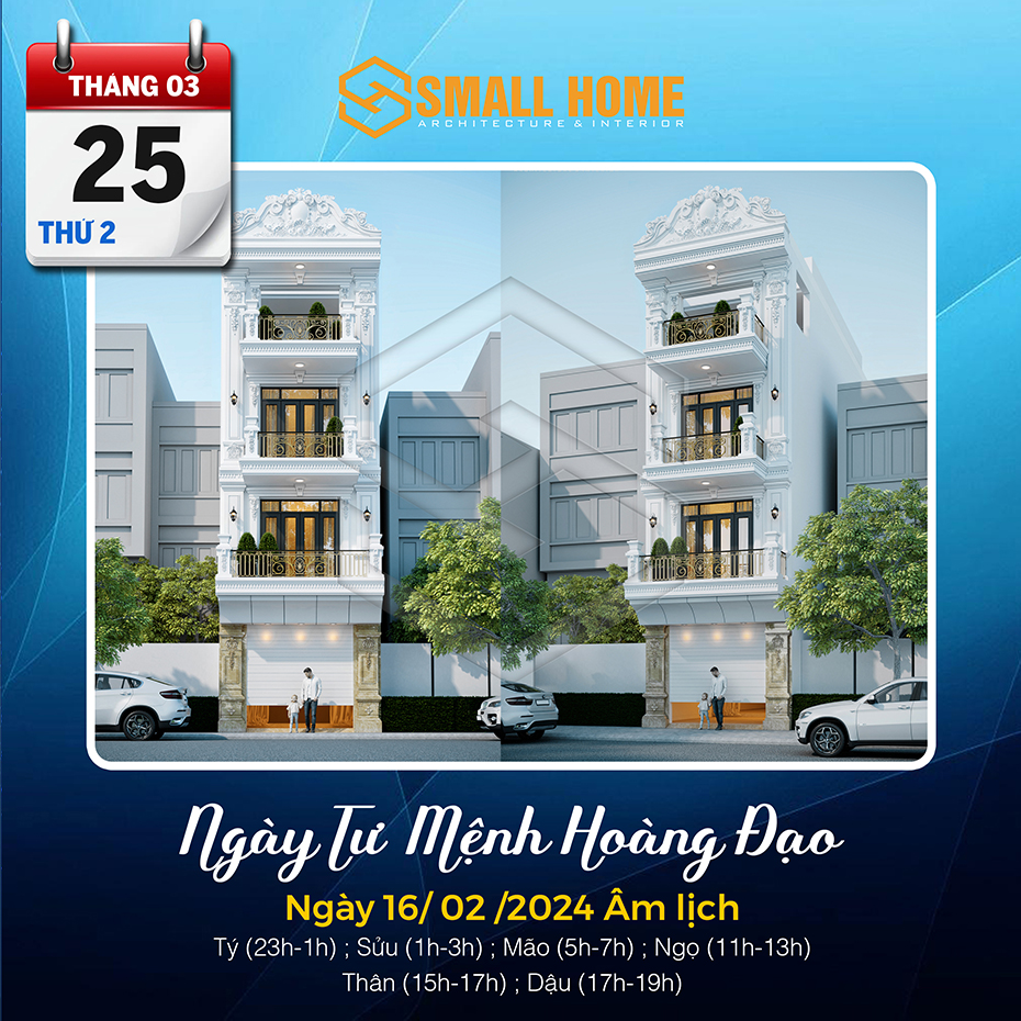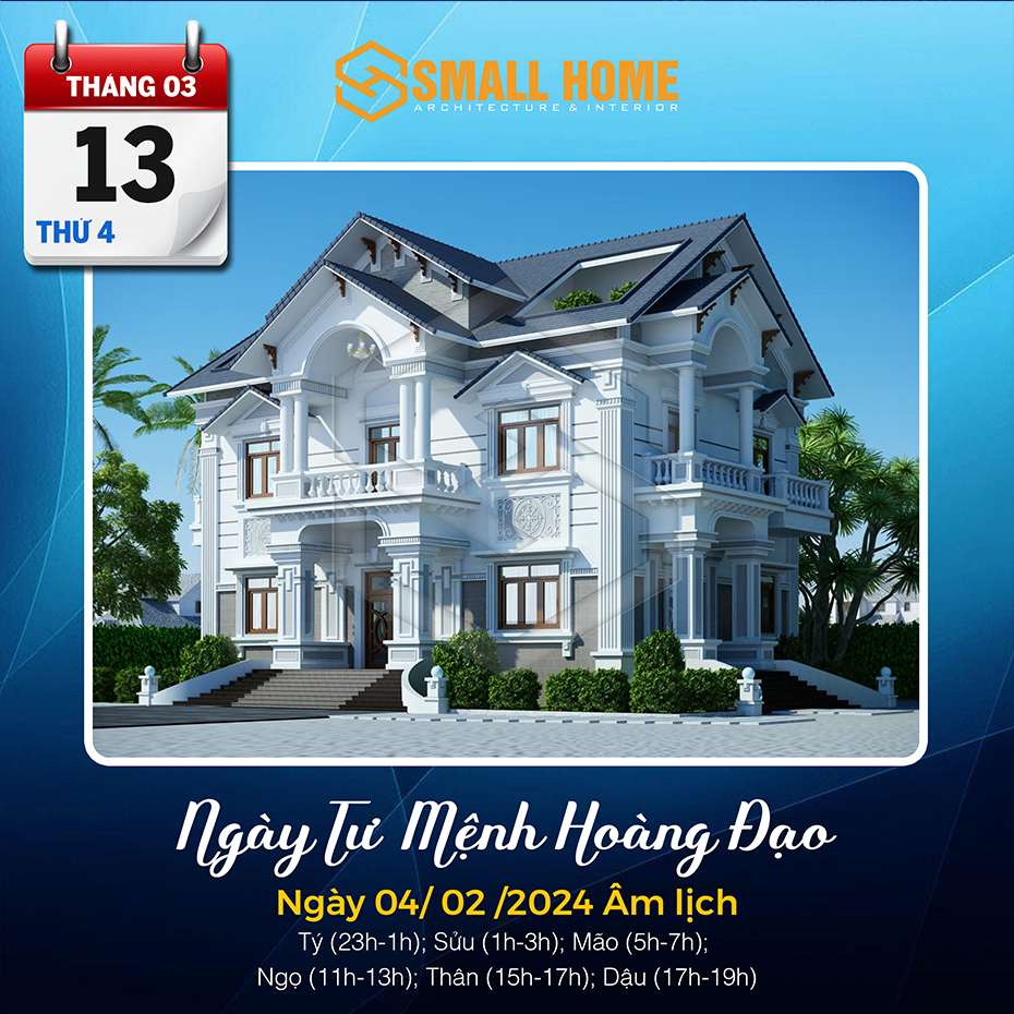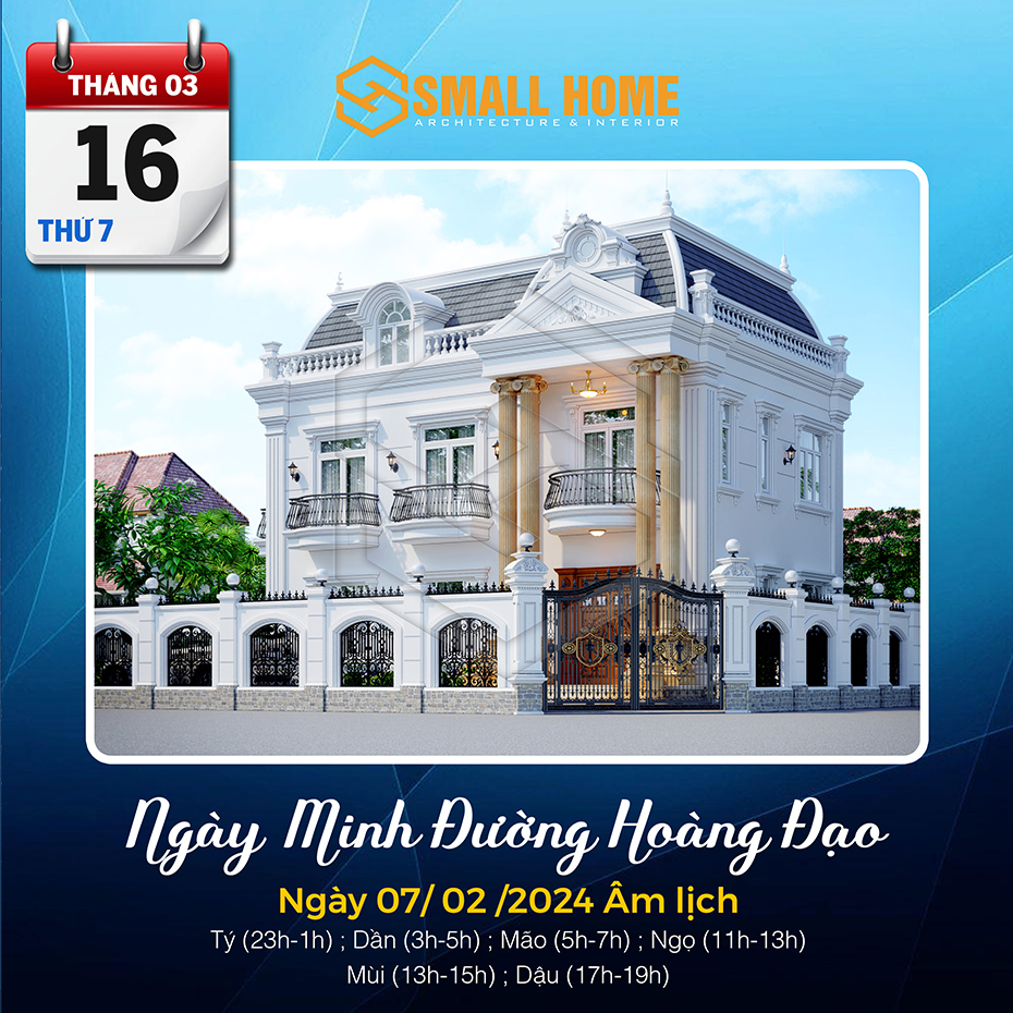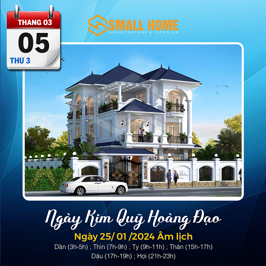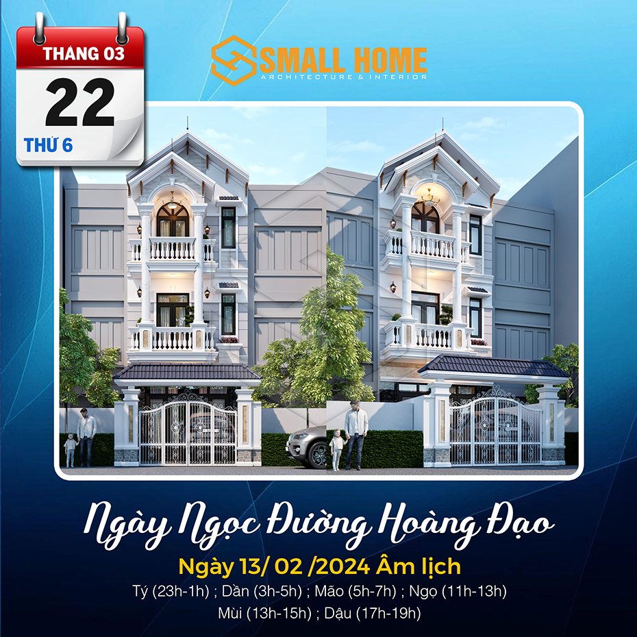Việc xem ngày tốt làm nhà tốt xấu có ảnh hưởng khá lớn đến tâm lý của gia chủ. Xây nhà, dựng cửa là việc hệ trọng cần xem xét và bàn bạc kỹ lưỡng cho nên việc xem ngày tốt làm nhà là việc quan trọng ảnh hưởng tới công việc, vận mệnh của gia chủ. Vậy Kiến trúc & Nội thất Smallhome xin tư vấn một số ngày tốt làm nhà sửa nhà trong tháng 03 năm 2024. Thông thường xem ngày làm nhà, người ta thường chọn các ngày Hoàng đạo, có các sao như: Sát cống, Thanh Long, Hoàng Đạo và quan trọng nhất là việc xem ngày khởi công xây nhà và sửa nhà phải theo tuổi gia chủ.