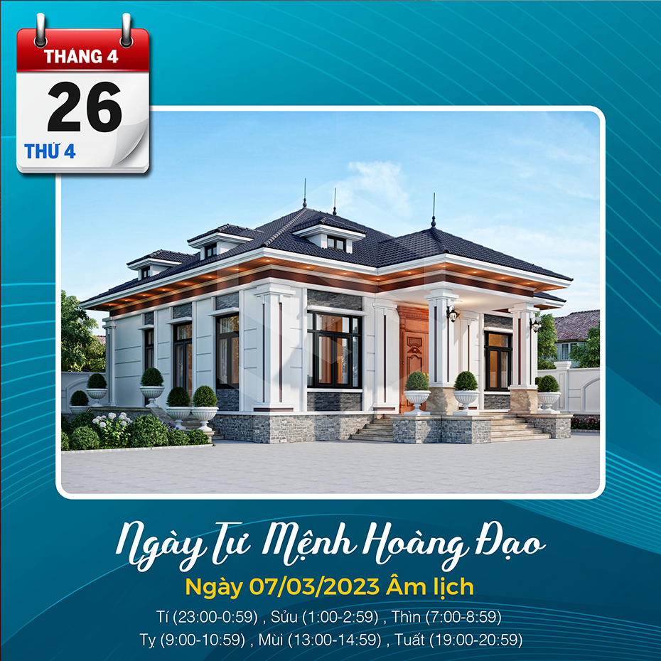 Thứ 4, ngày 26 tháng 04 năm 2023 (Âm lịch: Ngày 07/03/2023)