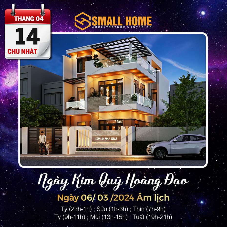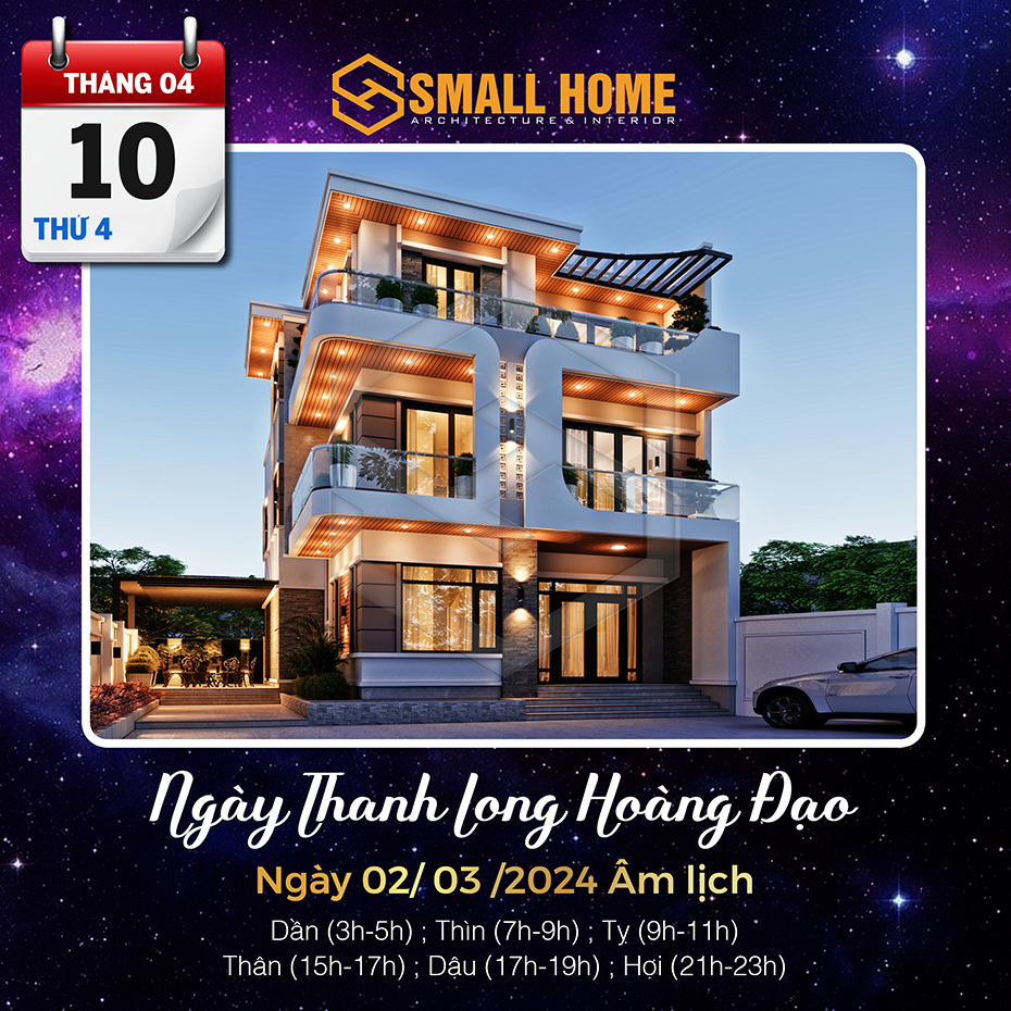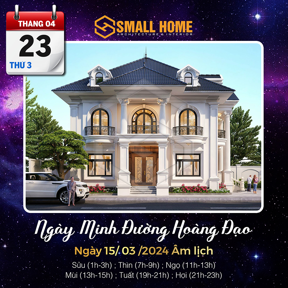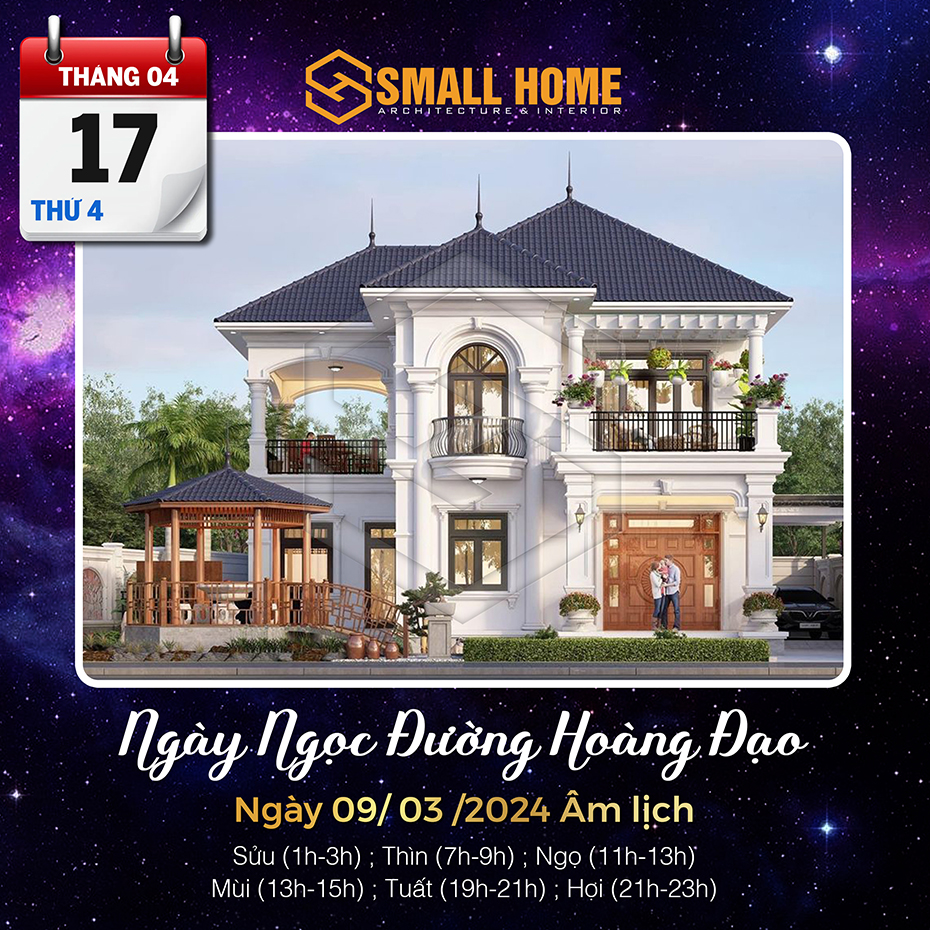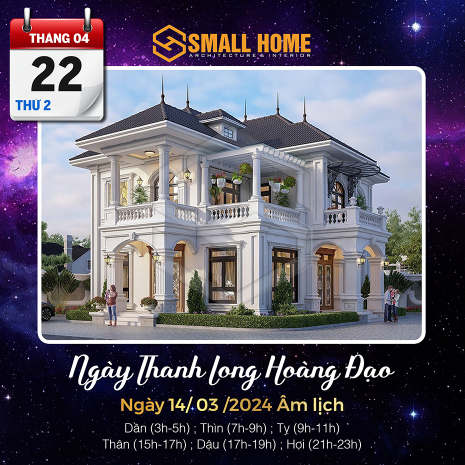 Việc xem ngày tốt làm nhà tốt xấu có ảnh hưởng khá lớn đến tâm lý của gia chủ. Xây nhà, dựng cửa là việc hệ trọng cần xem xét và bàn bạc kỹ lưỡng cho nên việc xem ngày tốt làm nhà là việc quan trọng ảnh hưởng tới công việc, vận mệnh của gia chủ. Vậy Kiến trúc & Nội thất Smallhome xin tư vấn một số ngày tốt làm nhà sửa nhà trong tháng 04 năm 2024. Thông thường xem ngày làm nhà, người ta thường chọn các ngày Hoàng đạo, có các sao như: Sát cống, Thanh Long, Hoàng Đạo và quan trọng nhất là việc xem ngày khởi công xây nhà và sửa nhà phải theo tuổi gia chủ.