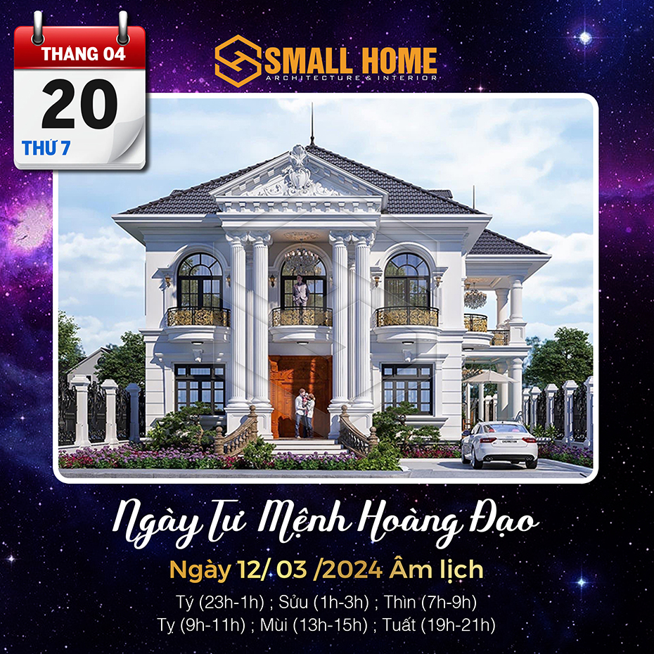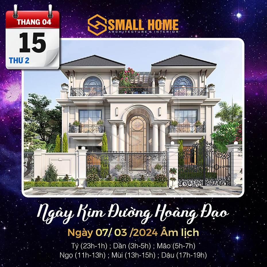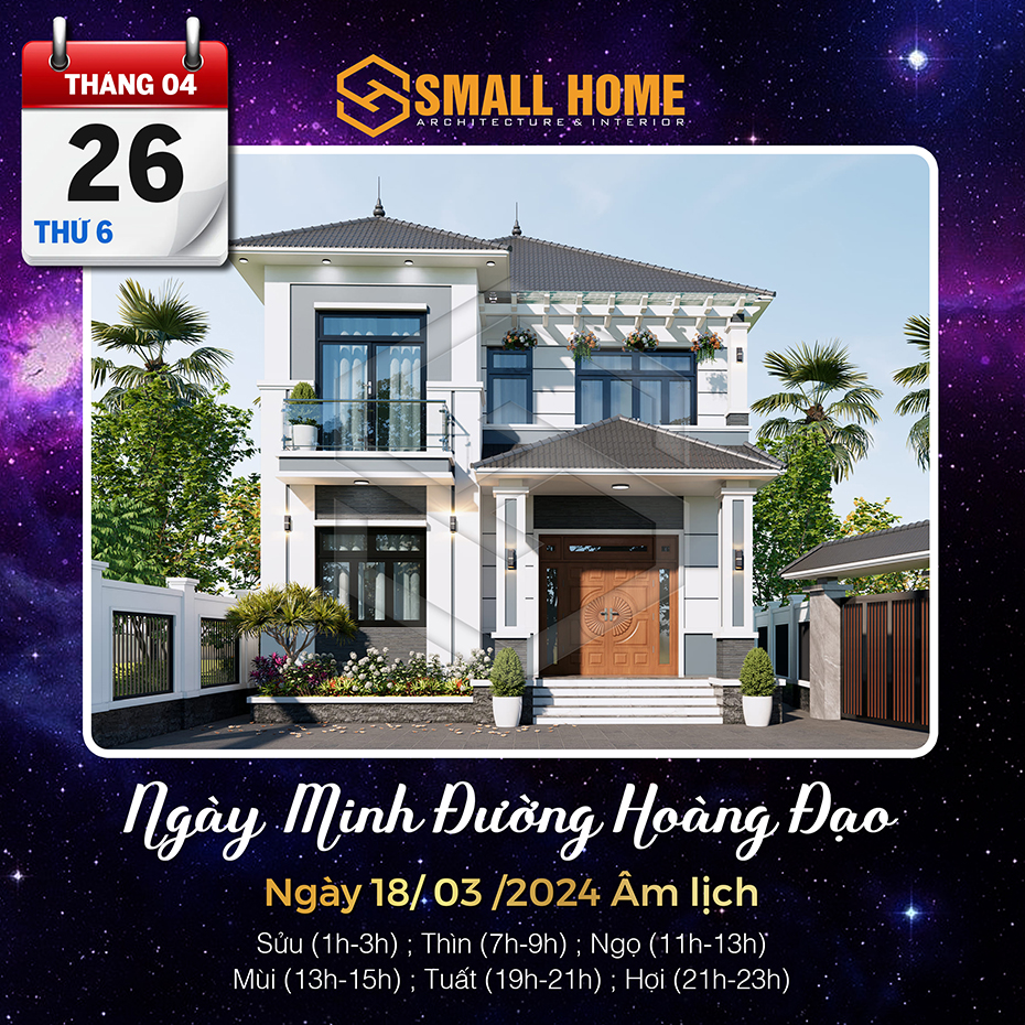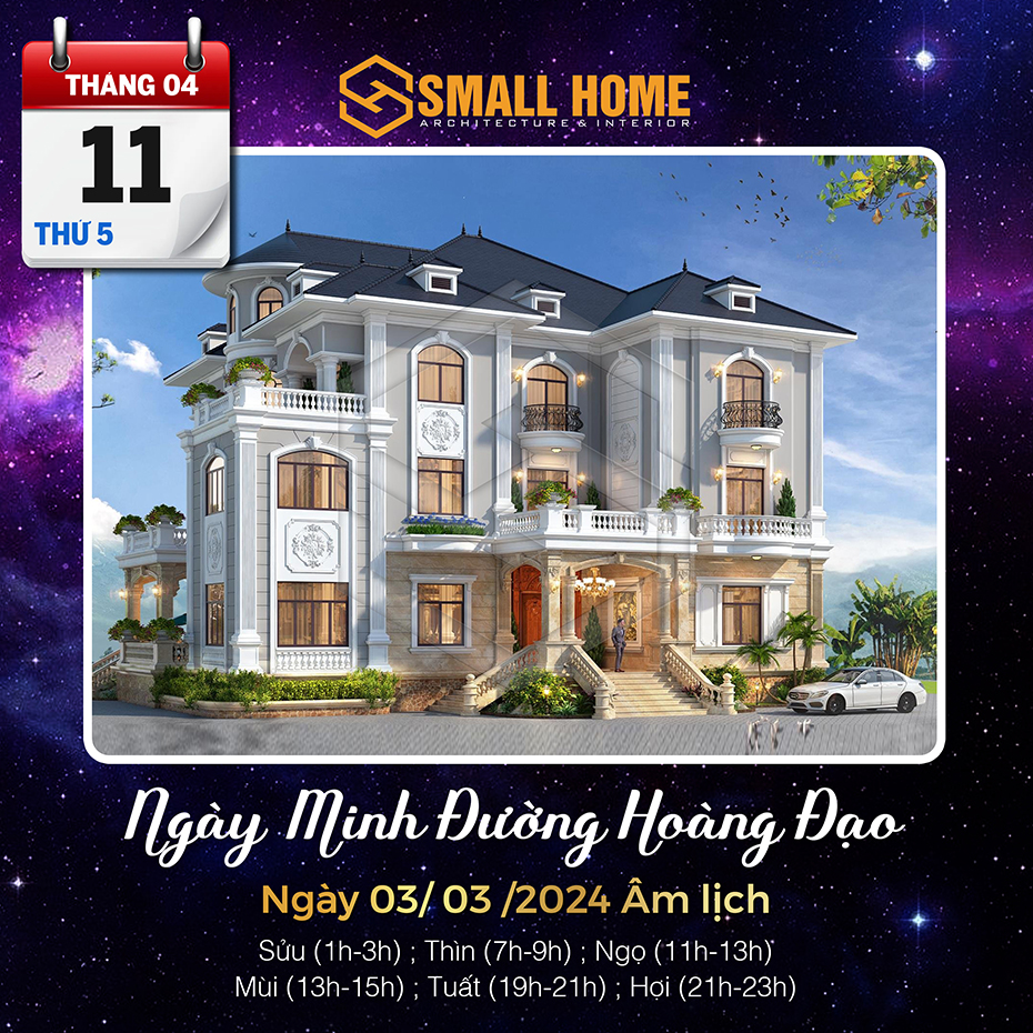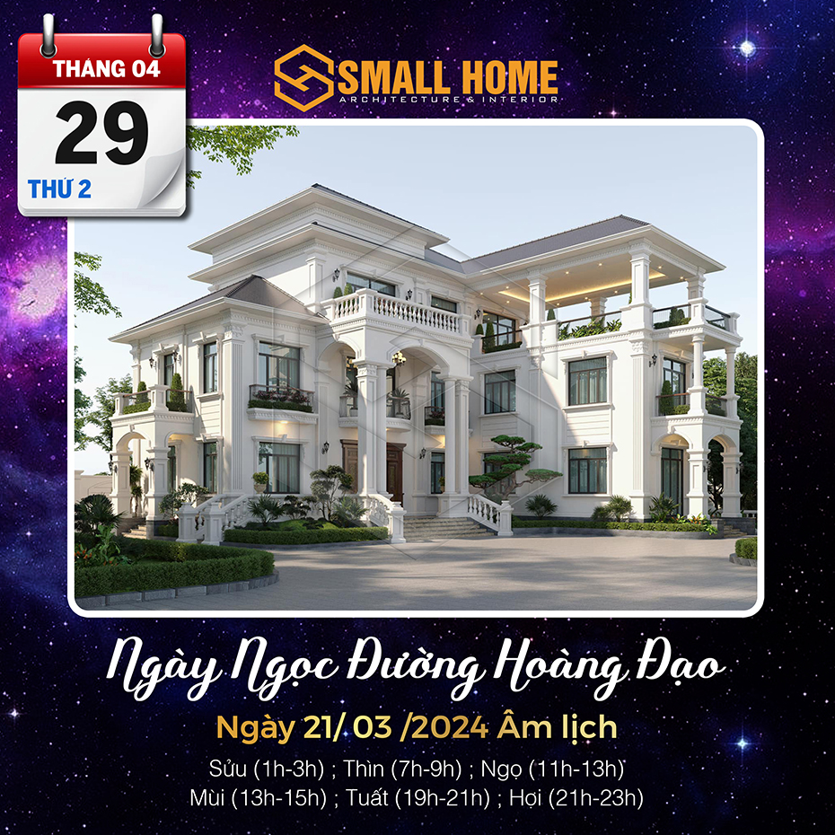 Việc xem ngày tốt làm nhà tốt xấu có ảnh hưởng khá lớn đến tâm lý của gia chủ. Xây nhà, dựng cửa là việc hệ trọng cần xem xét và bàn bạc kỹ lưỡng cho nên việc xem ngày tốt làm nhà là việc quan trọng ảnh hưởng tới công việc, vận mệnh của gia chủ. Vậy Kiến trúc & Nội thất Smallhome xin tư vấn một số ngày tốt làm nhà sửa nhà trong tháng 04 năm 2024. Thông thường xem ngày làm nhà, người ta thường chọn các ngày Hoàng đạo, có các sao như: Sát cống, Thanh Long, Hoàng Đạo và quan trọng nhất là việc xem ngày khởi công xây nhà và sửa nhà phải theo tuổi gia chủ.