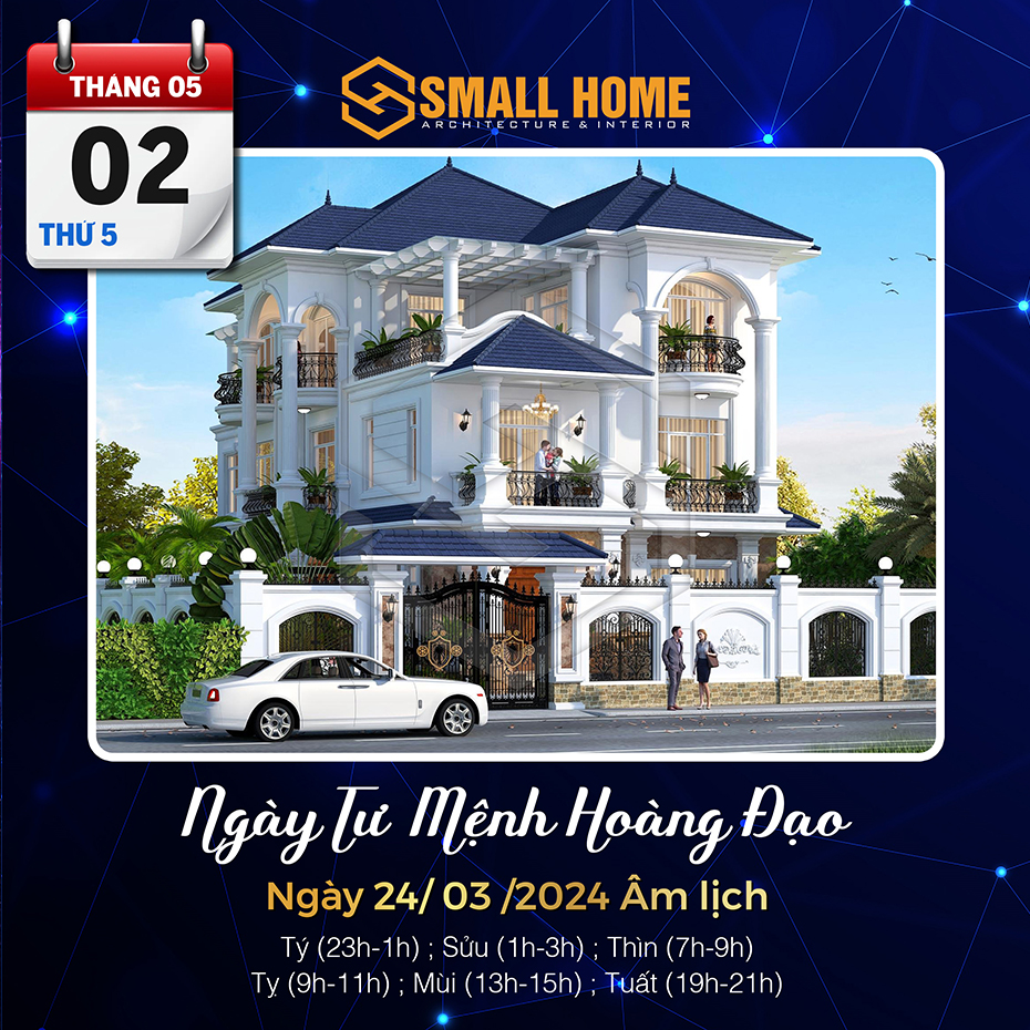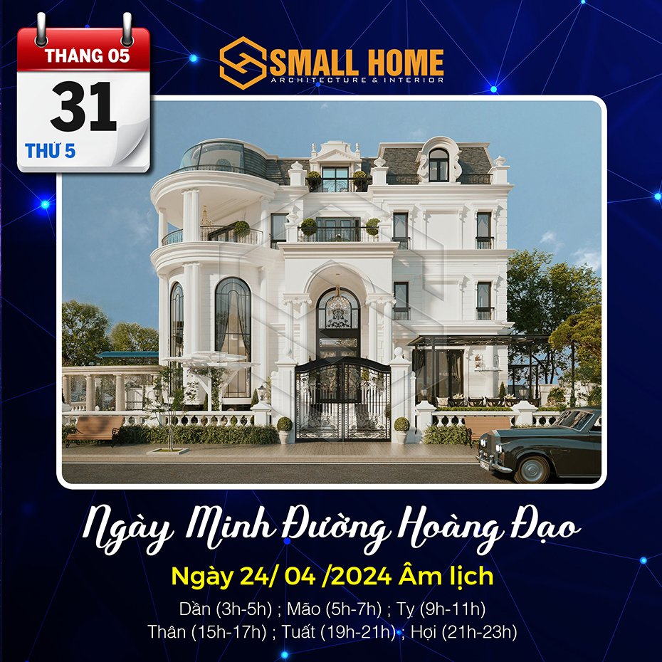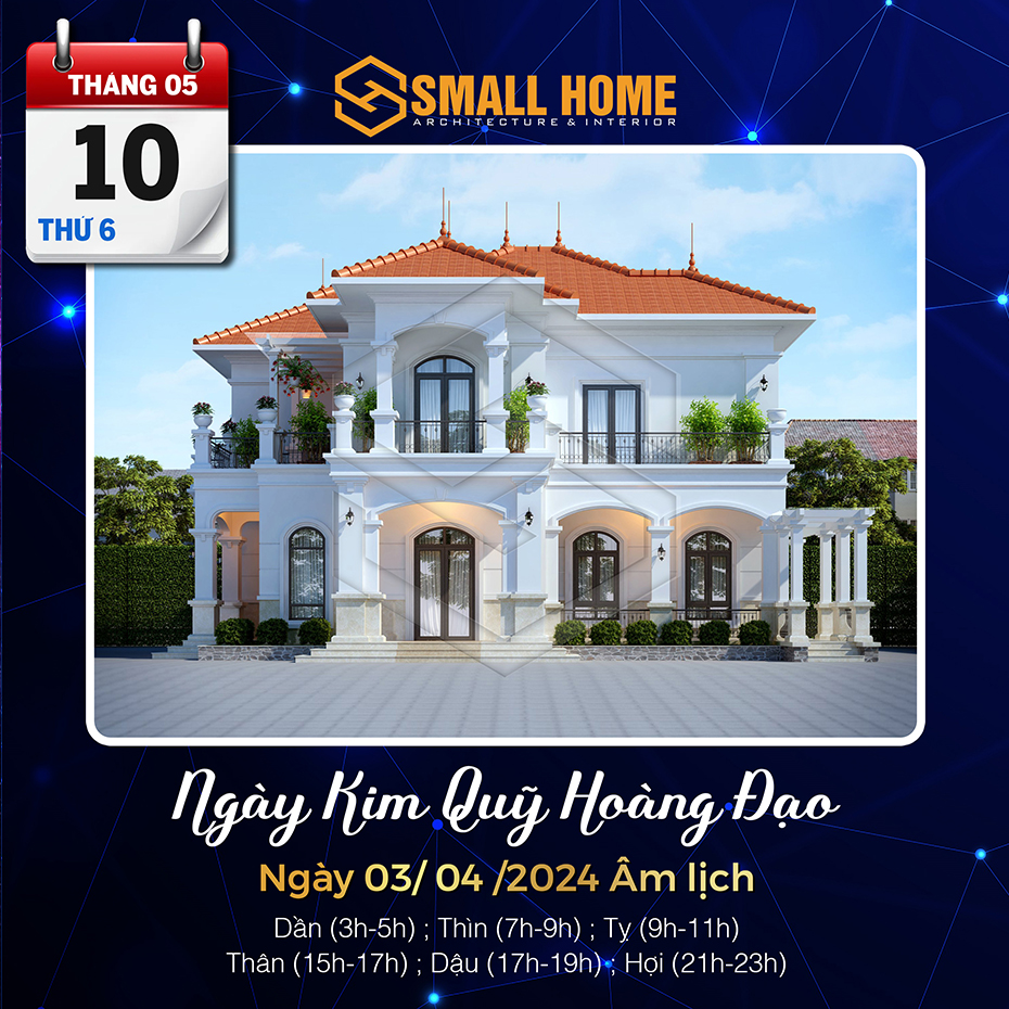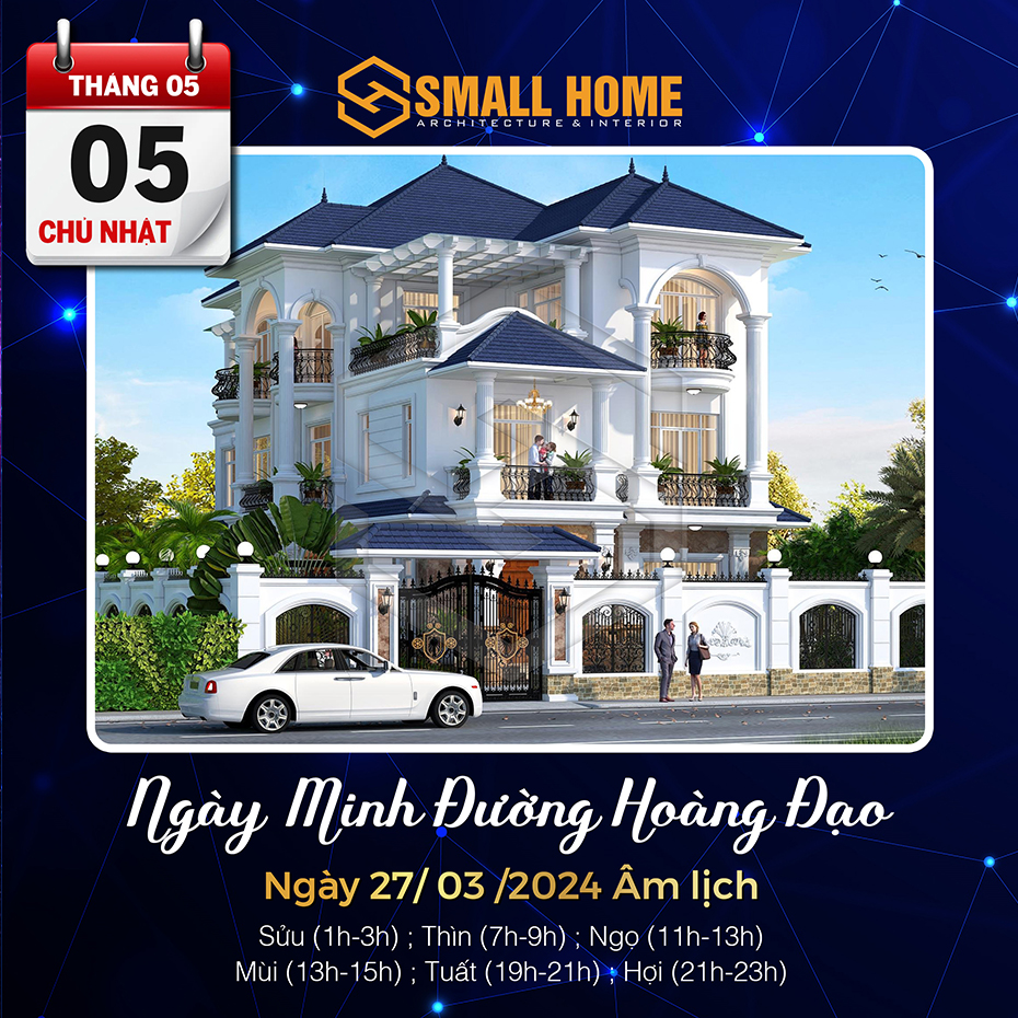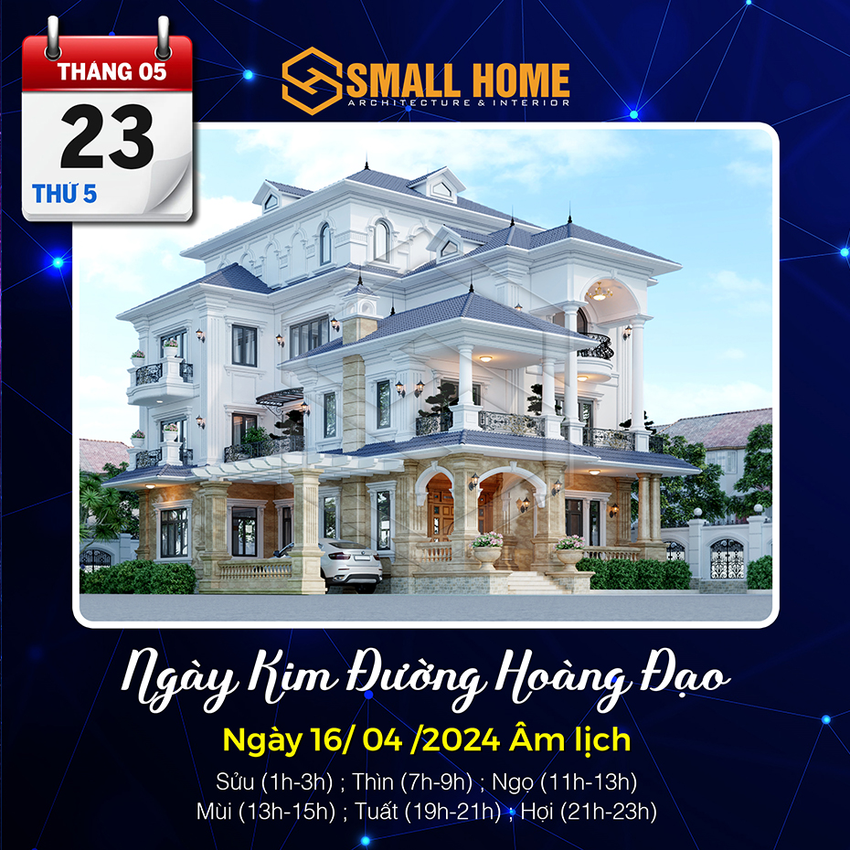 Việc xem ngày tốt làm nhà tốt xấu có ảnh hưởng khá lớn đến tâm lý của gia chủ. Xây nhà, dựng cửa là việc hệ trọng cần xem xét và bàn bạc kỹ lưỡng cho nên việc xem ngày tốt làm nhà là việc quan trọng ảnh hưởng tới công việc, vận mệnh của gia chủ. Vậy Kiến trúc & Nội thất Smallhome xin tư vấn một số ngày tốt làm nhà sửa nhà trong tháng 05 năm 2024. Thông thường xem ngày làm nhà, người ta thường chọn các ngày Hoàng đạo, có các sao như: Sát cống, Thanh Long, Hoàng Đạo và quan trọng nhất là việc xem ngày khởi công xây nhà và sửa nhà phải theo tuổi gia chủ.