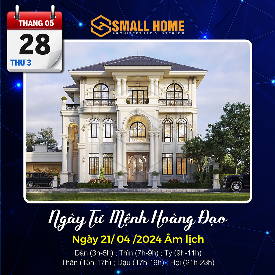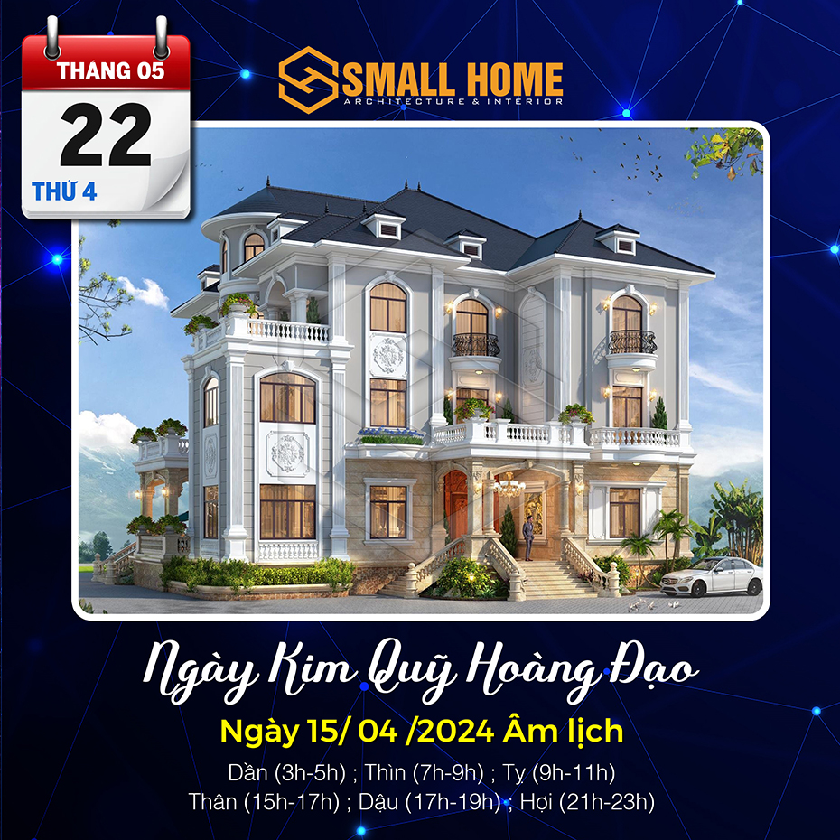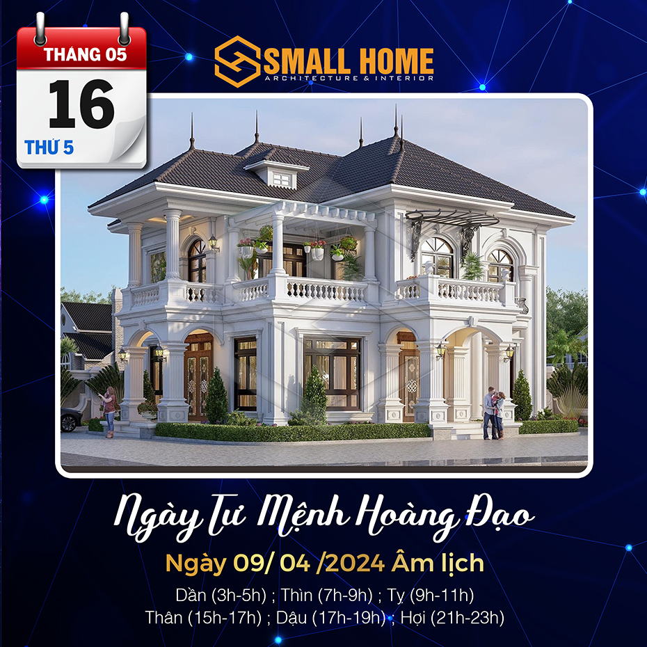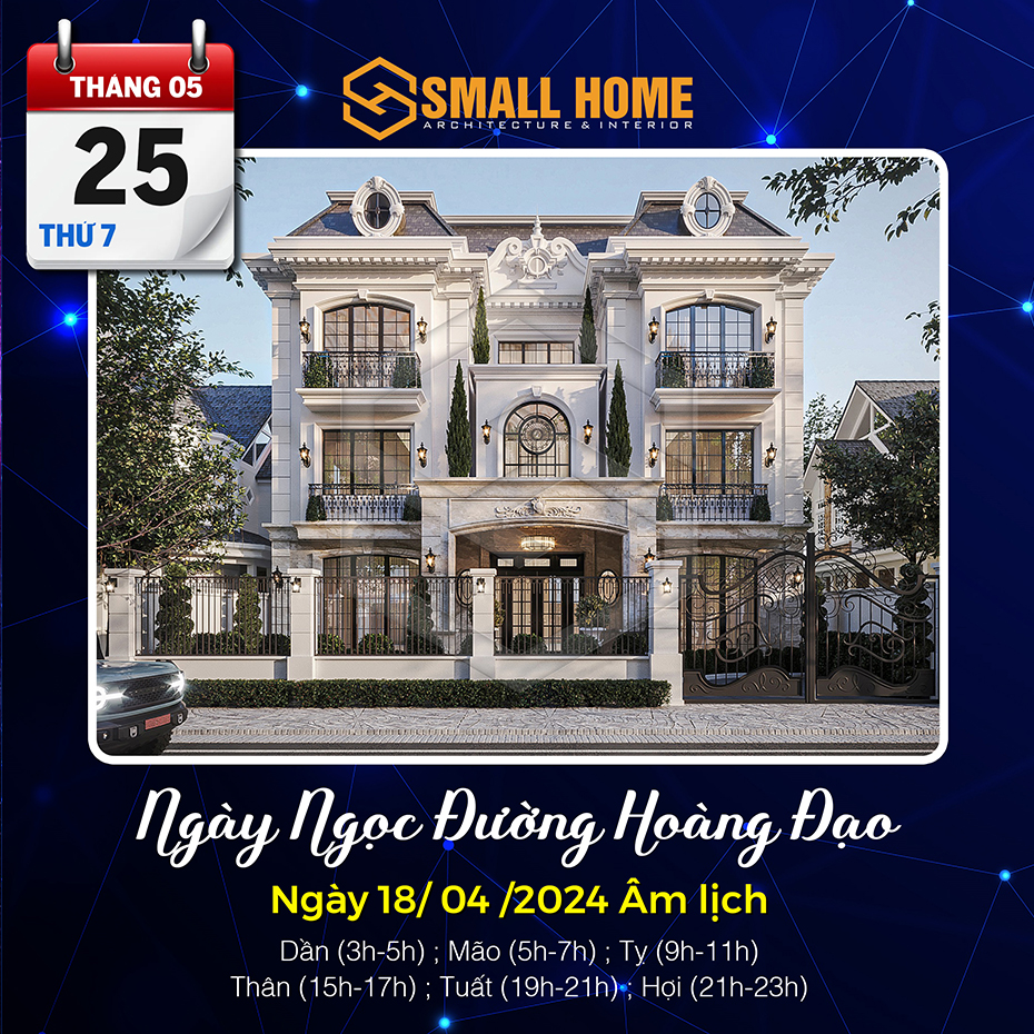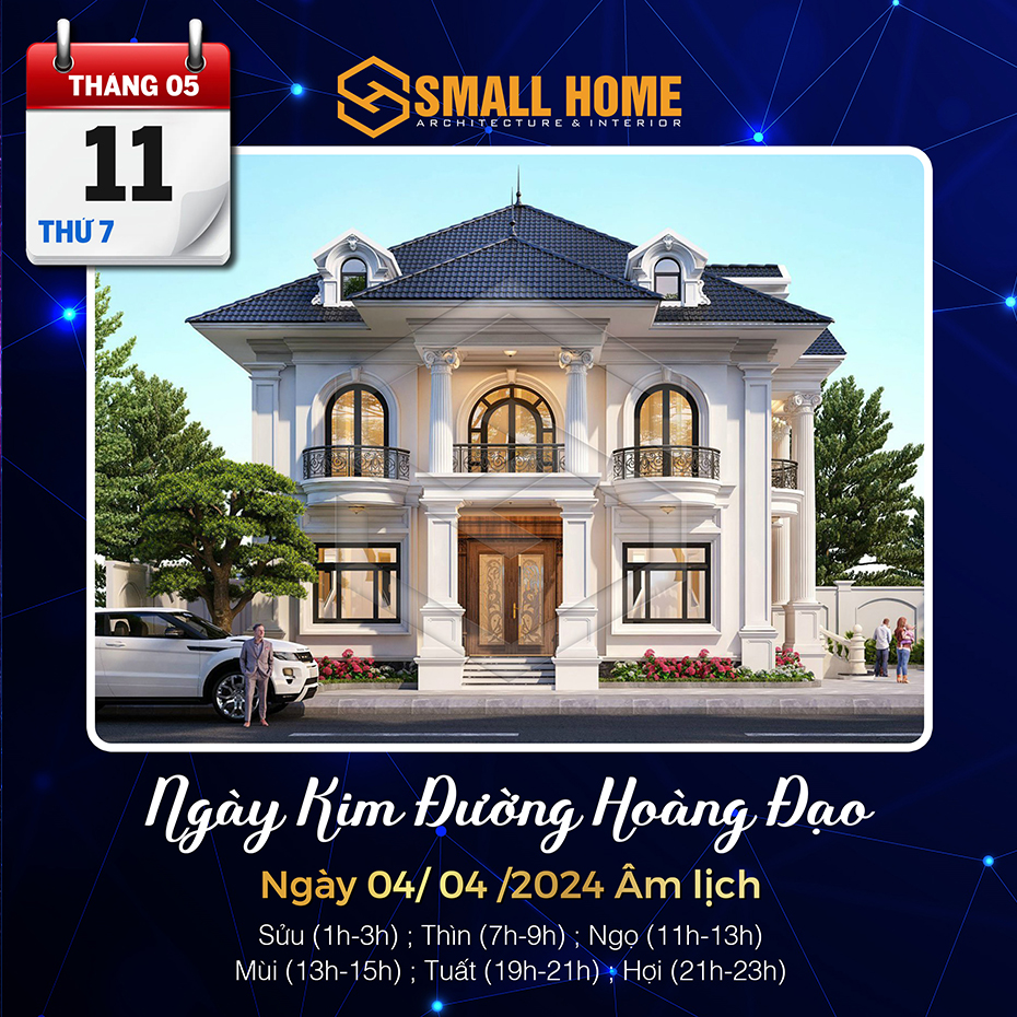 Việc xem ngày tốt làm nhà tốt xấu có ảnh hưởng khá lớn đến tâm lý của gia chủ. Xây nhà, dựng cửa là việc hệ trọng cần xem xét và bàn bạc kỹ lưỡng cho nên việc xem ngày tốt làm nhà là việc quan trọng ảnh hưởng tới công việc, vận mệnh của gia chủ. Vậy Kiến trúc & Nội thất Smallhome xin tư vấn một số ngày tốt làm nhà sửa nhà trong tháng 05 năm 2024. Thông thường xem ngày làm nhà, người ta thường chọn các ngày Hoàng đạo, có các sao như: Sát cống, Thanh Long, Hoàng Đạo và quan trọng nhất là việc xem ngày khởi công xây nhà và sửa nhà phải theo tuổi gia chủ.