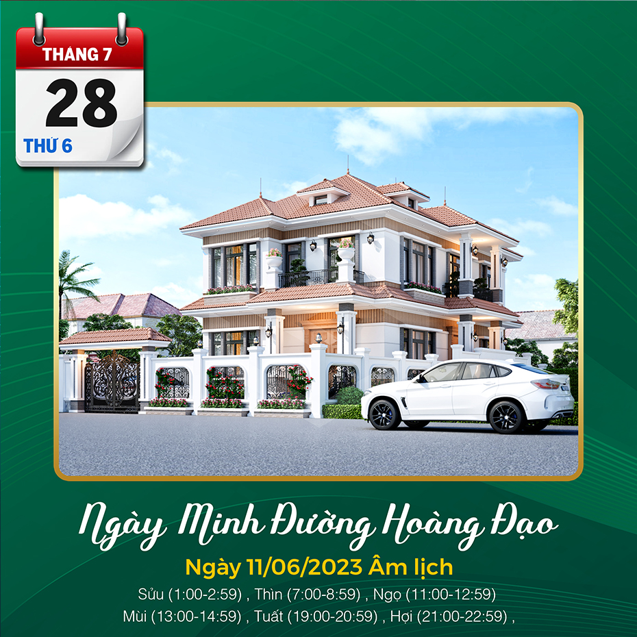 Thứ 6, ngày 28 tháng 07 năm 2023 (Âm lịch: Ngày 11/06/2023)