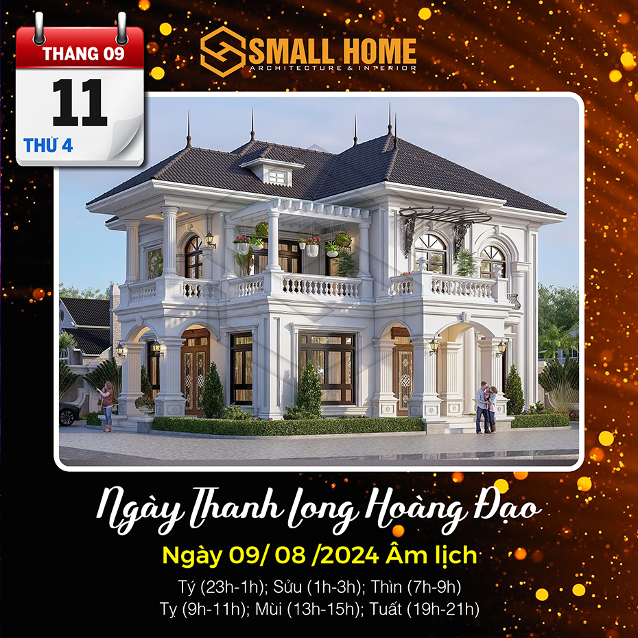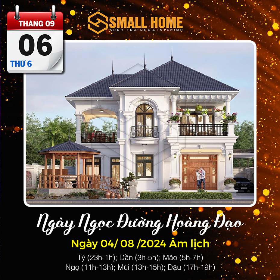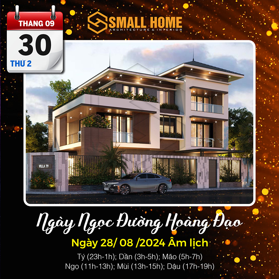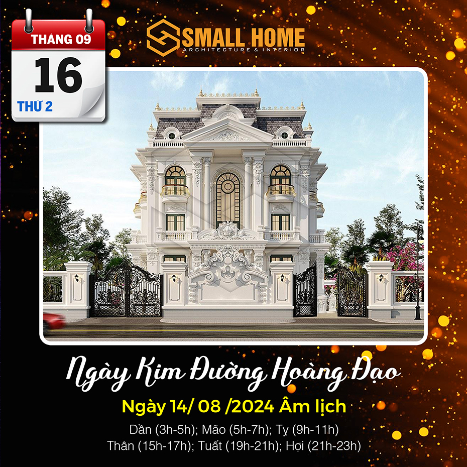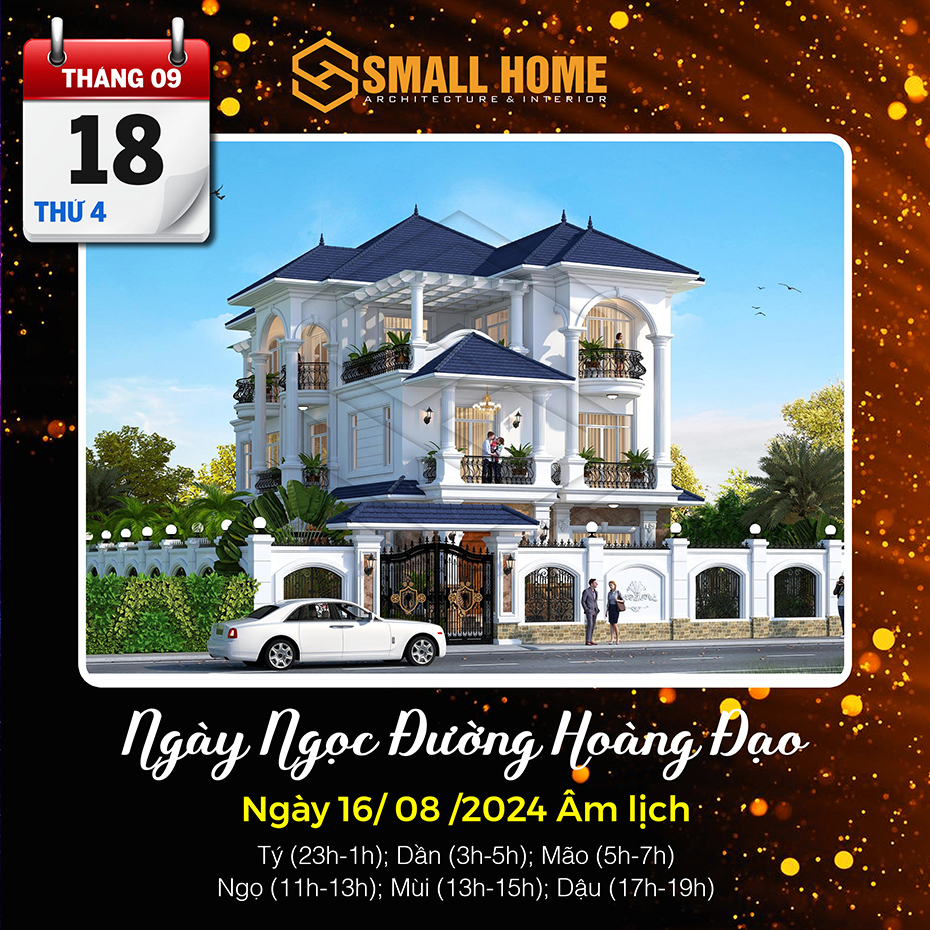 Việc xem ngày tốt làm nhà tốt xấu có ảnh hưởng khá lớn đến tâm lý của gia chủ. Xây nhà, dựng cửa là việc hệ trọng cần xem xét và bàn bạc kỹ lưỡng cho nên việc xem ngày tốt làm nhà là việc quan trọng ảnh hưởng tới công việc, vận mệnh của gia chủ. Vậy Kiến trúc & Nội thất Smallhome xin tư vấn một số ngày tốt làm nhà sửa nhà trong tháng 09 năm 2024. Thông thường xem ngày làm nhà, người ta thường chọn các ngày Hoàng đạo, có các sao như: Sát cống, Thanh Long, Hoàng Đạo và quan trọng nhất là việc xem ngày khởi công xây nhà và sửa nhà phải theo tuổi gia chủ.