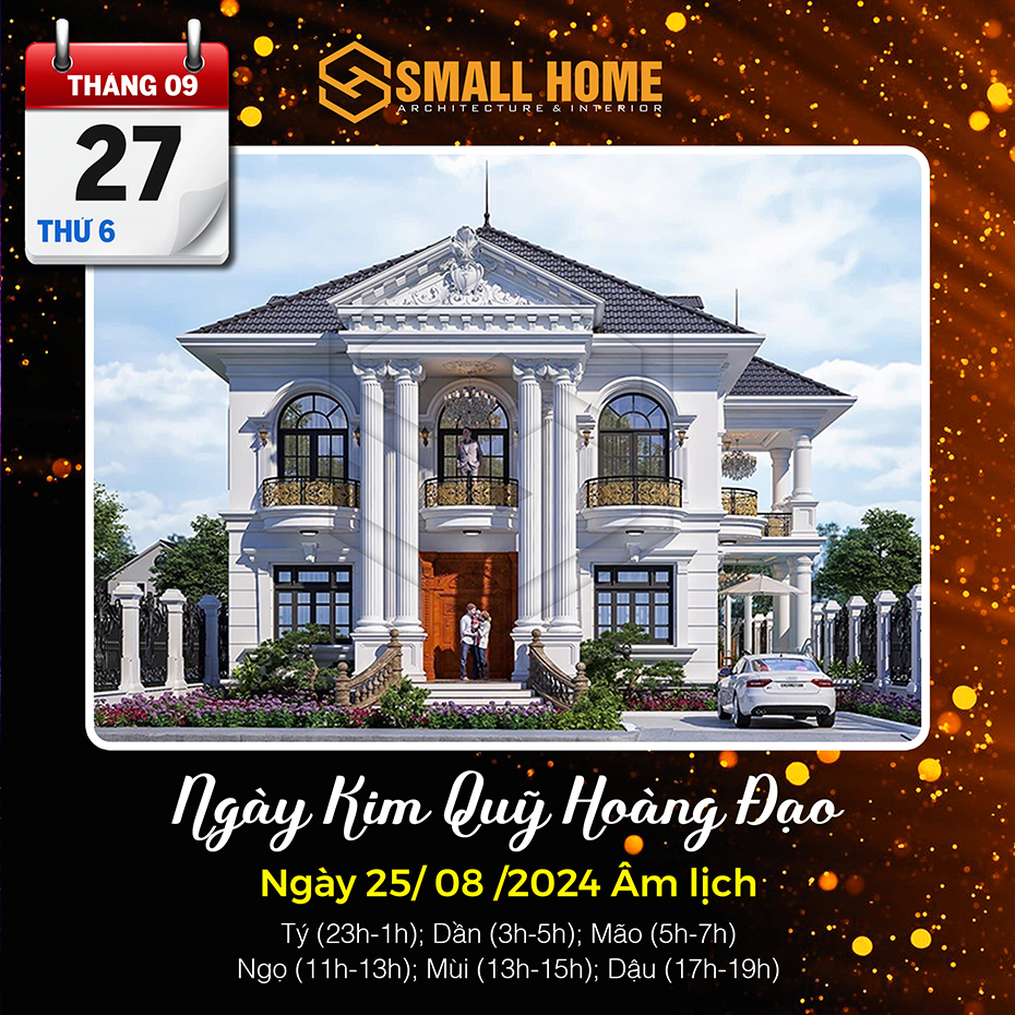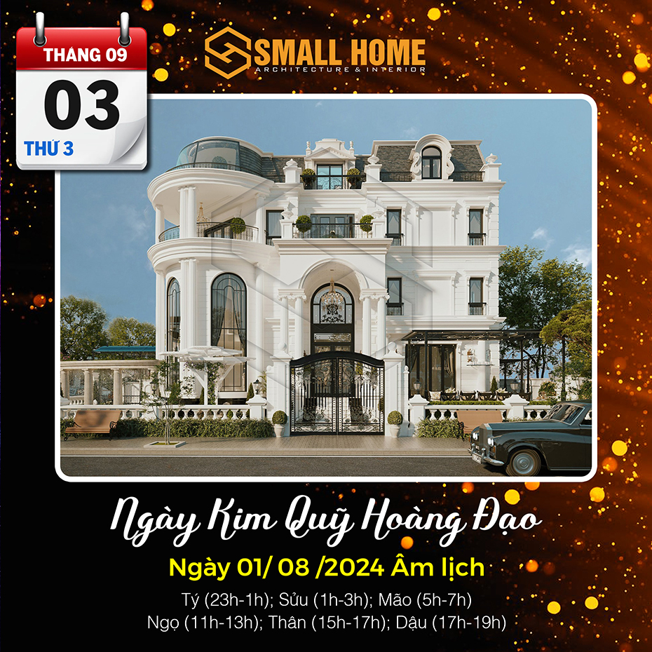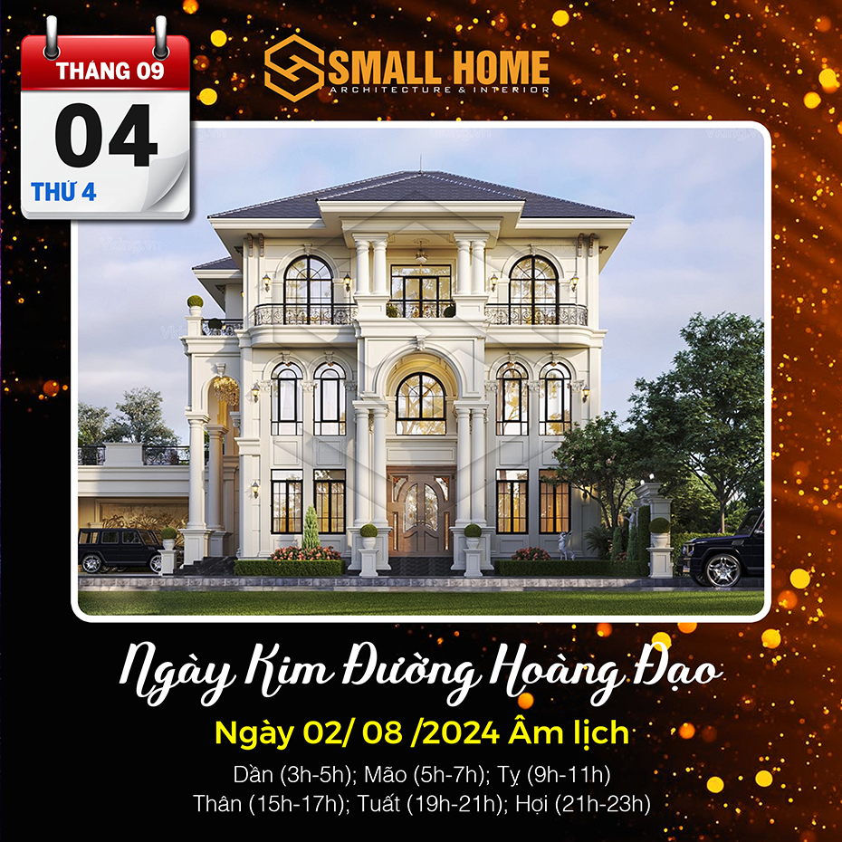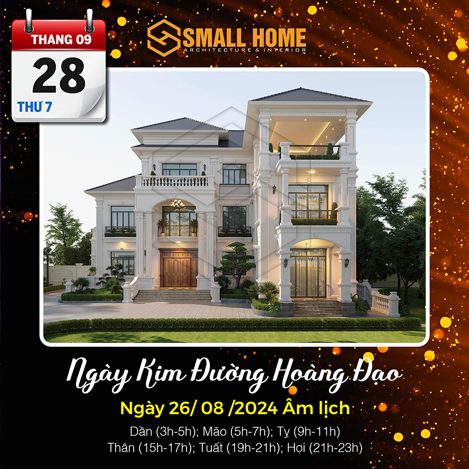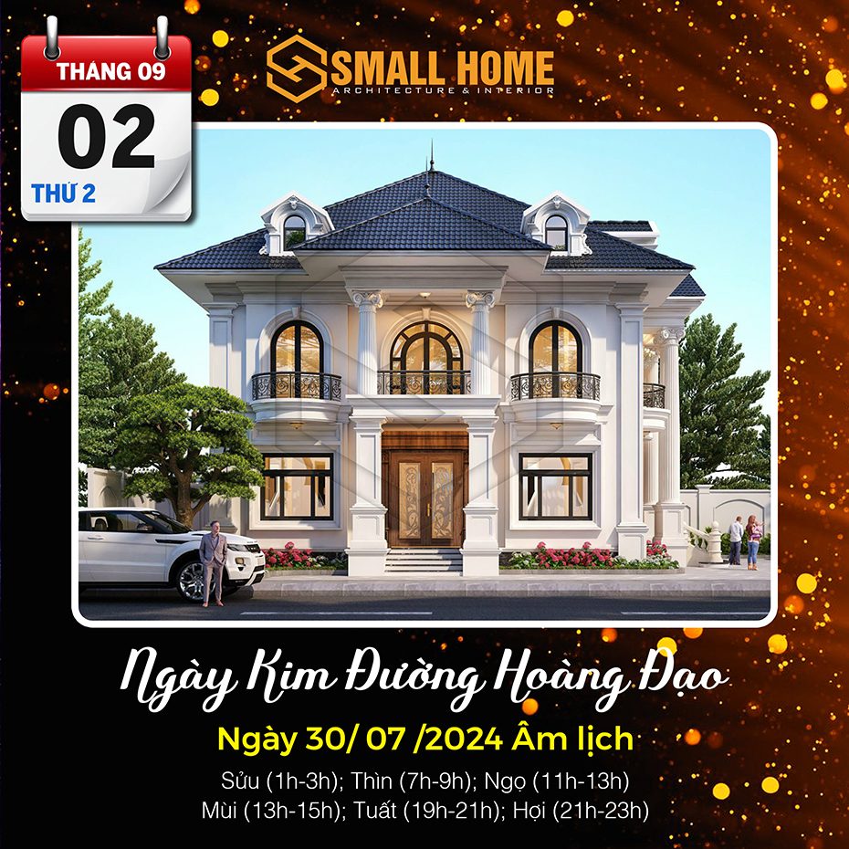 Việc xem ngày tốt làm nhà tốt xấu có ảnh hưởng khá lớn đến tâm lý của gia chủ. Xây nhà, dựng cửa là việc hệ trọng cần xem xét và bàn bạc kỹ lưỡng cho nên việc xem ngày tốt làm nhà là việc quan trọng ảnh hưởng tới công việc, vận mệnh của gia chủ. Vậy Kiến trúc & Nội thất Smallhome xin tư vấn một số ngày tốt làm nhà sửa nhà trong tháng 09 năm 2024. Thông thường xem ngày làm nhà, người ta thường chọn các ngày Hoàng đạo, có các sao như: Sát cống, Thanh Long, Hoàng Đạo và quan trọng nhất là việc xem ngày khởi công xây nhà và sửa nhà phải theo tuổi gia chủ.