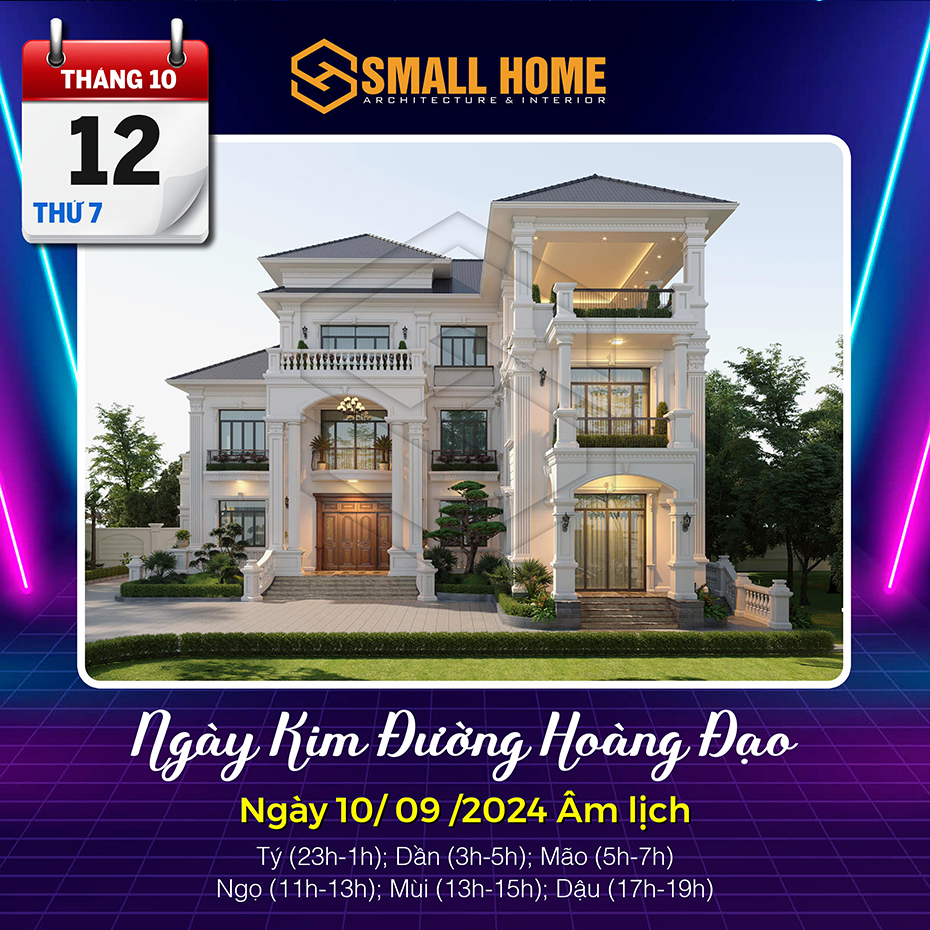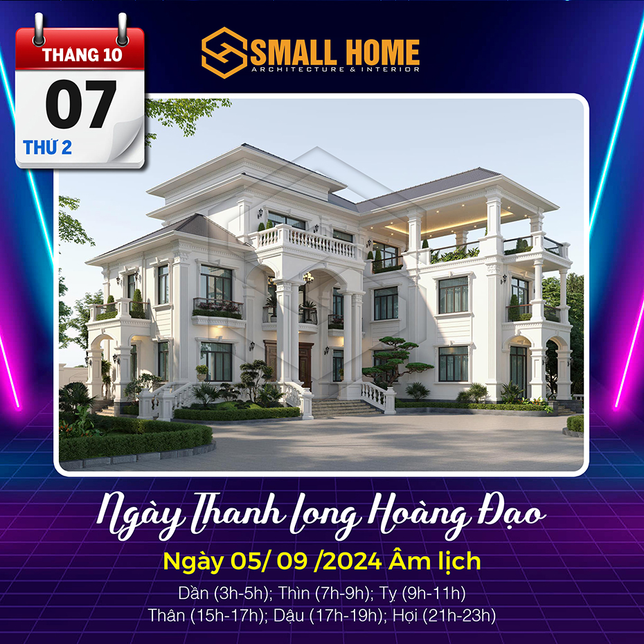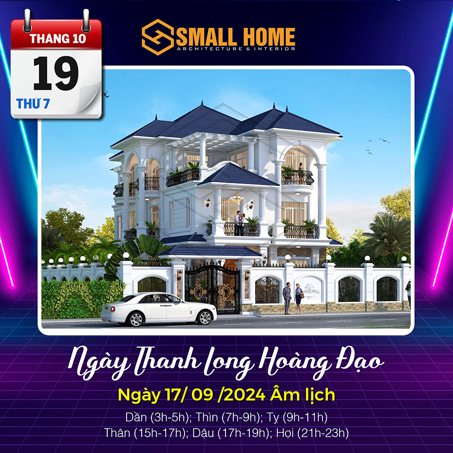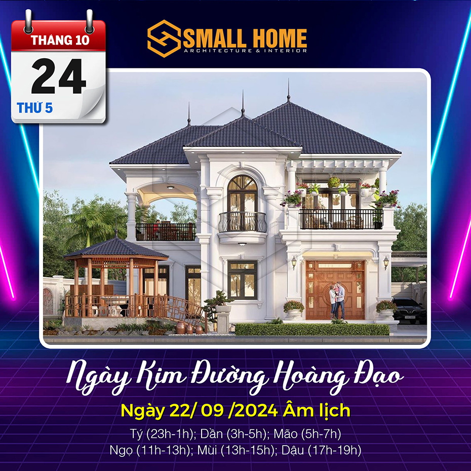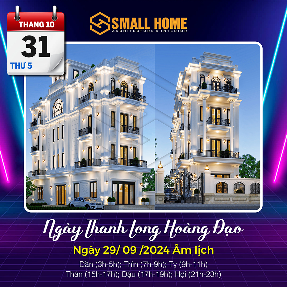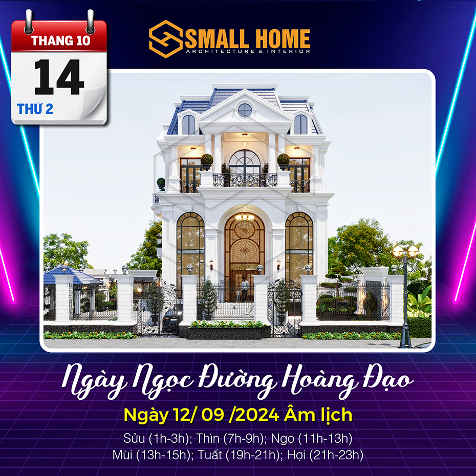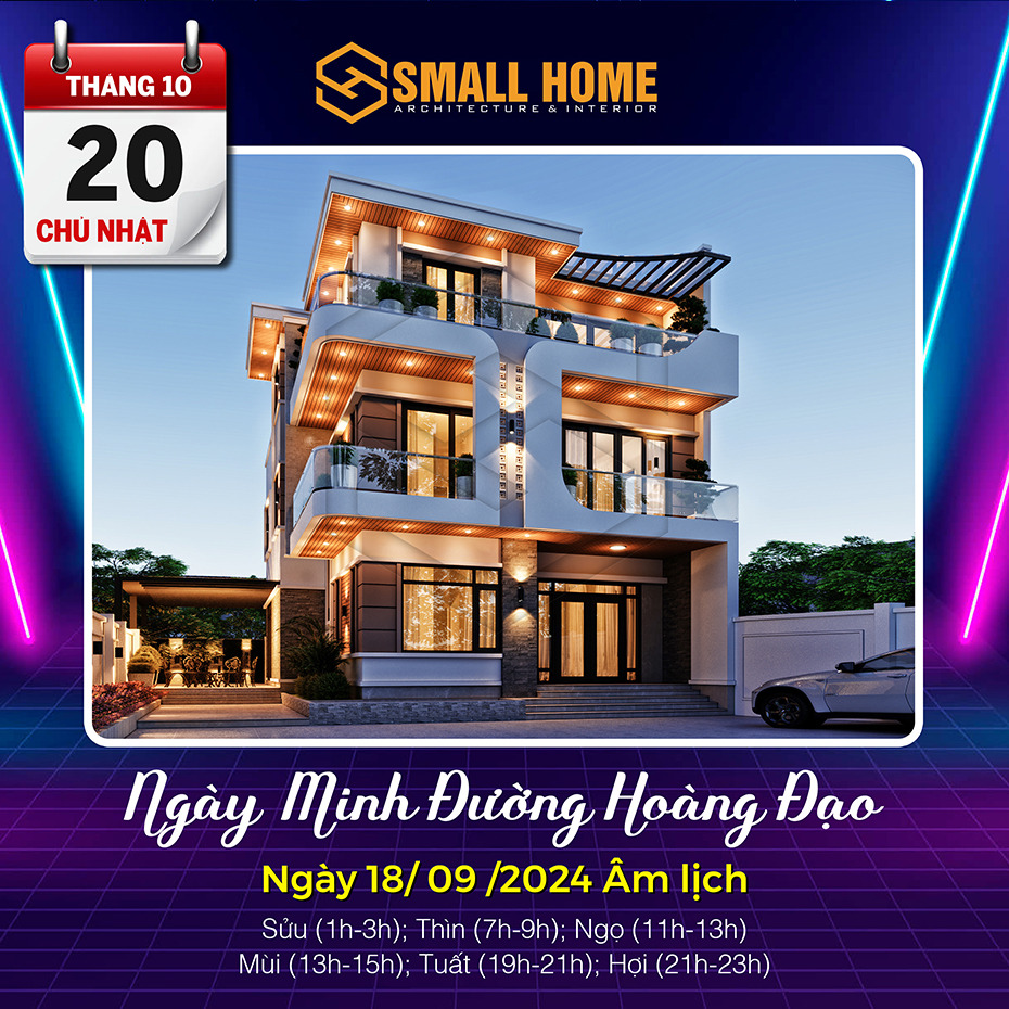 Việc xem ngày tốt làm nhà tốt xấu có ảnh hưởng khá lớn đến tâm lý của gia chủ. Xây nhà, dựng cửa là việc hệ trọng cần xem xét và bàn bạc kỹ lưỡng cho nên việc xem ngày tốt làm nhà là việc quan trọng ảnh hưởng tới công việc, vận mệnh của gia chủ. Vậy Kiến trúc & Nội thất Smallhome xin tư vấn một số ngày tốt làm nhà sửa nhà trong tháng 10 năm 2024. Thông thường xem ngày làm nhà, người ta thường chọn các ngày Hoàng đạo, có các sao như: Sát cống, Thanh Long, Hoàng Đạo và quan trọng nhất là việc xem ngày khởi công xây nhà và sửa nhà phải theo tuổi gia chủ.