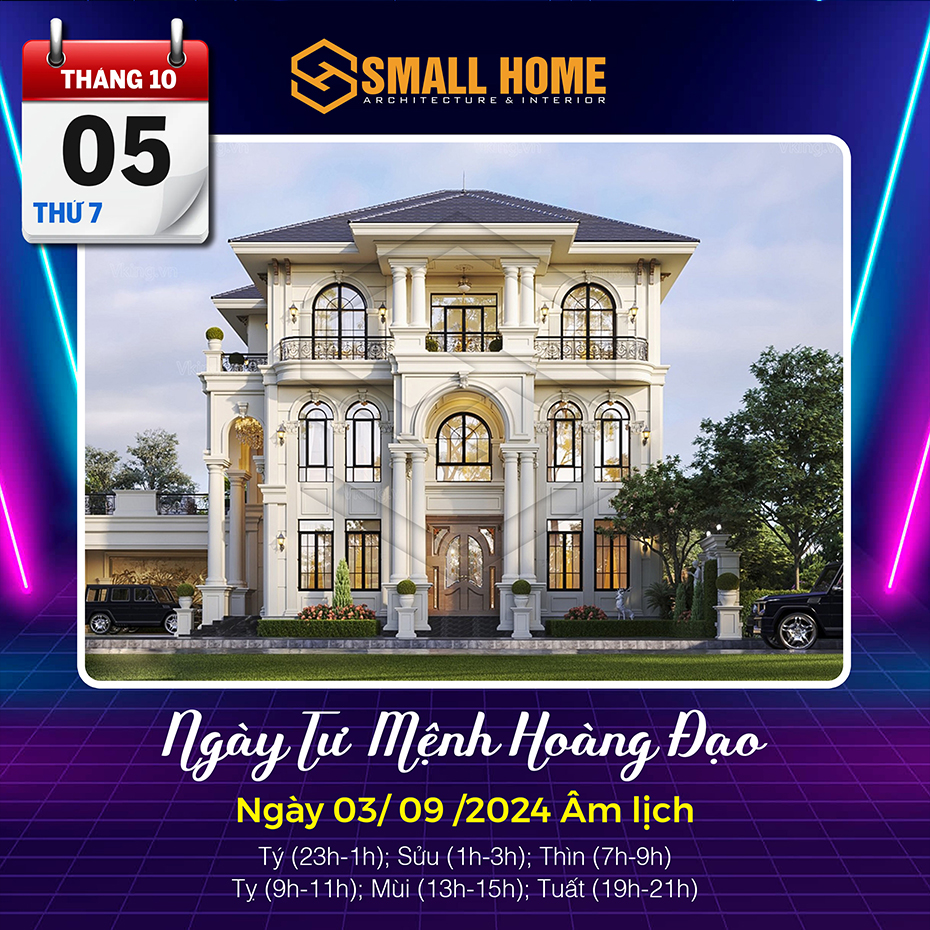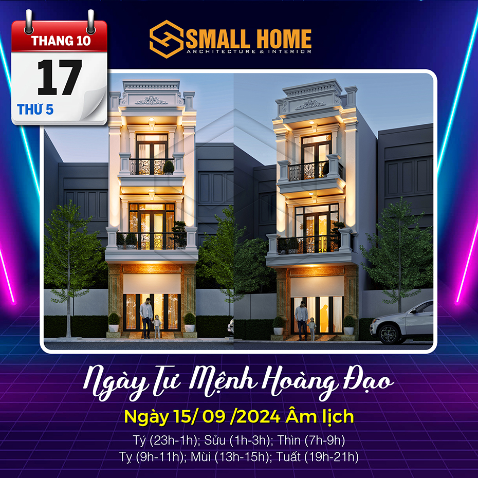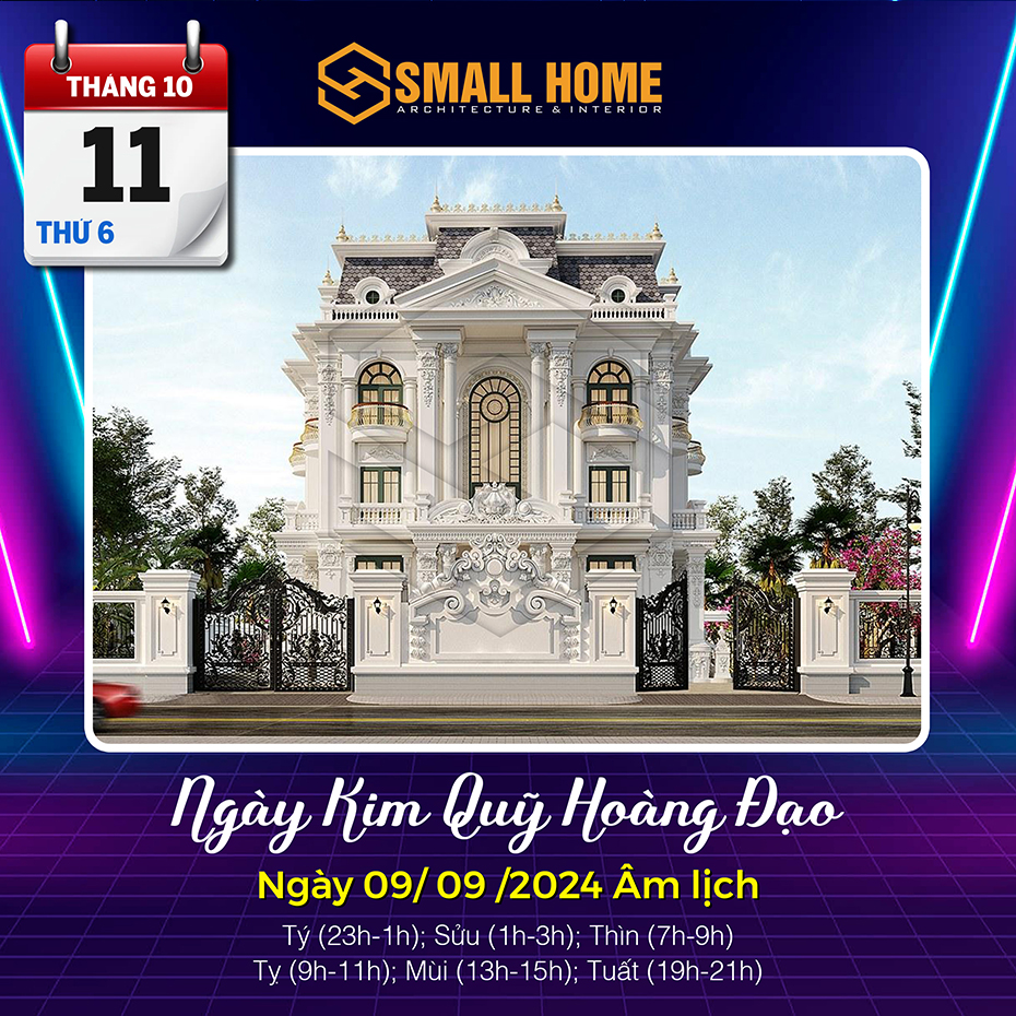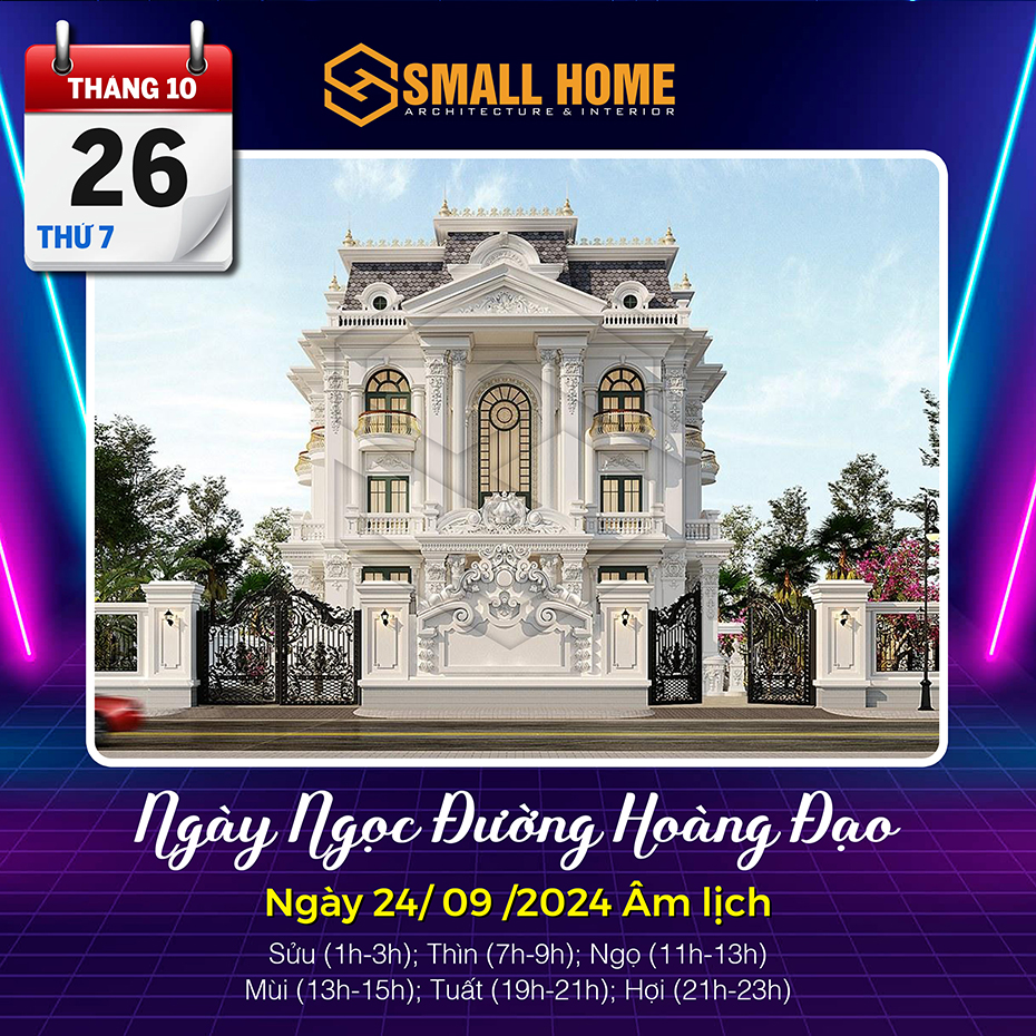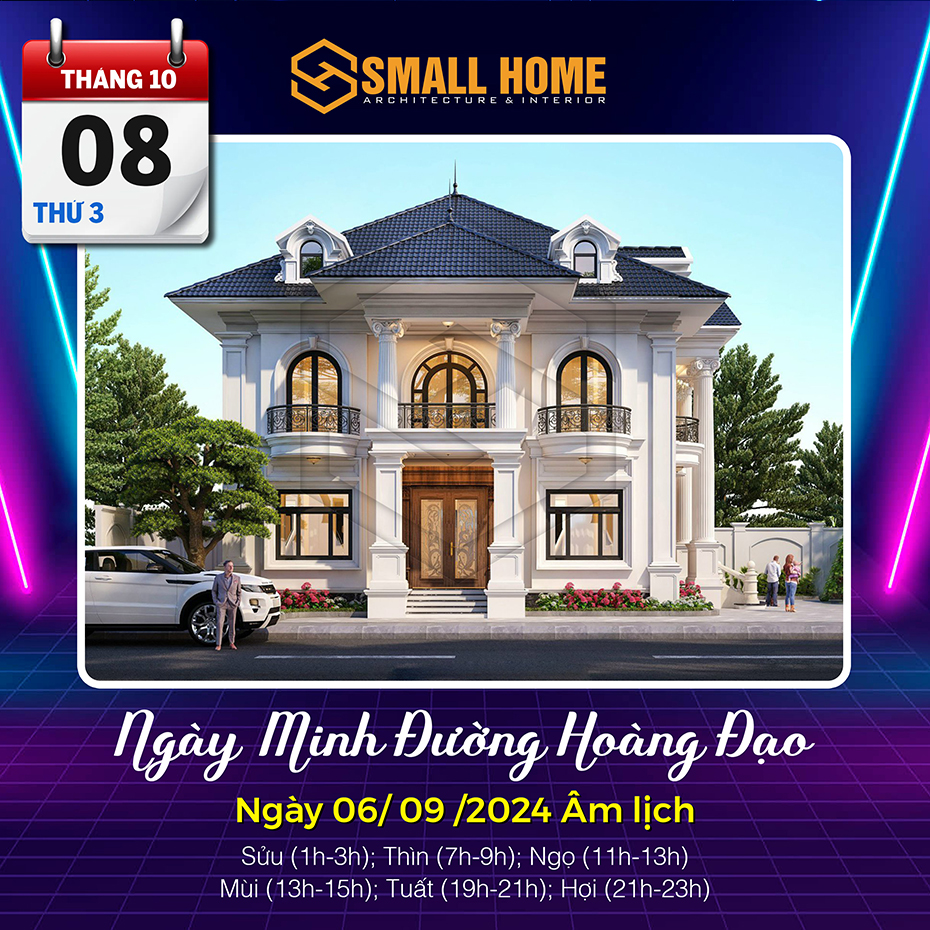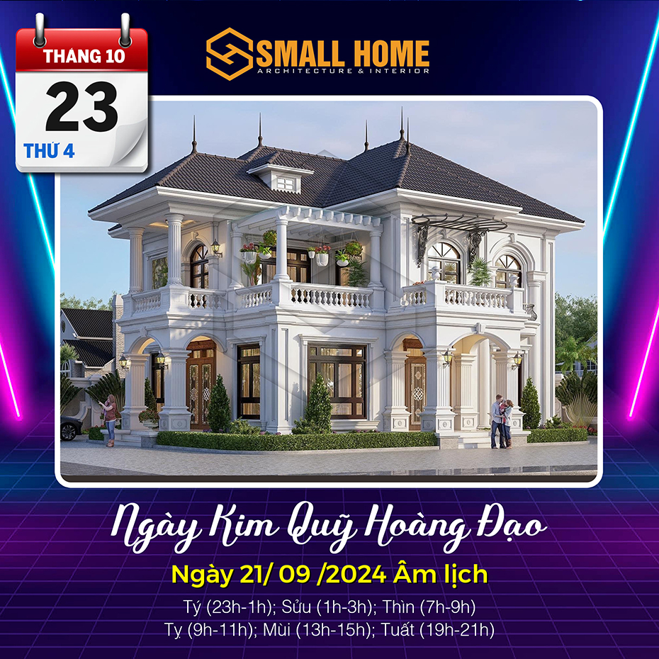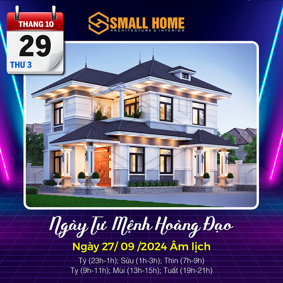 Việc xem ngày tốt làm nhà tốt xấu có ảnh hưởng khá lớn đến tâm lý của gia chủ. Xây nhà, dựng cửa là việc hệ trọng cần xem xét và bàn bạc kỹ lưỡng cho nên việc xem ngày tốt làm nhà là việc quan trọng ảnh hưởng tới công việc, vận mệnh của gia chủ. Vậy Kiến trúc & Nội thất Smallhome xin tư vấn một số ngày tốt làm nhà sửa nhà trong tháng 10 năm 2024. Thông thường xem ngày làm nhà, người ta thường chọn các ngày Hoàng đạo, có các sao như: Sát cống, Thanh Long, Hoàng Đạo và quan trọng nhất là việc xem ngày khởi công xây nhà và sửa nhà phải theo tuổi gia chủ.