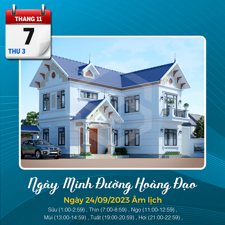Thứ 3, ngày 07 tháng 11 năm 2023 (Âm lịch: Ngày 24/09/2023)