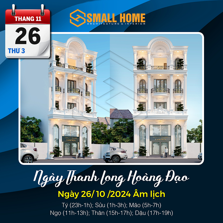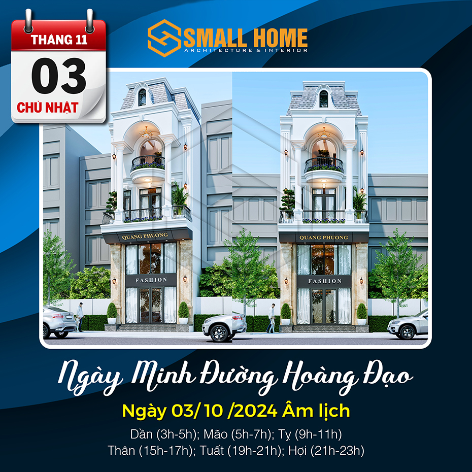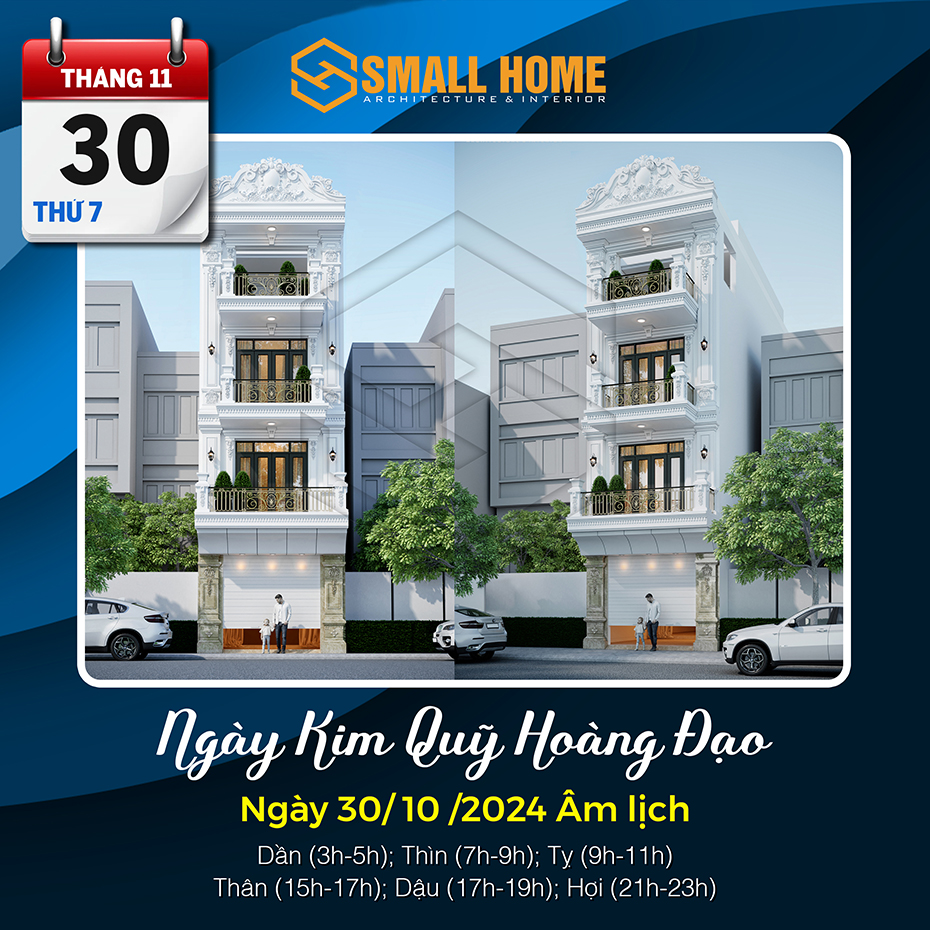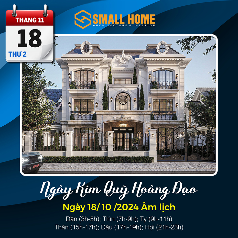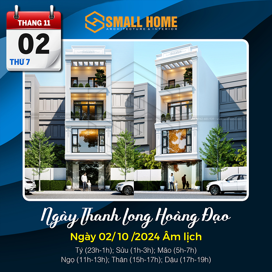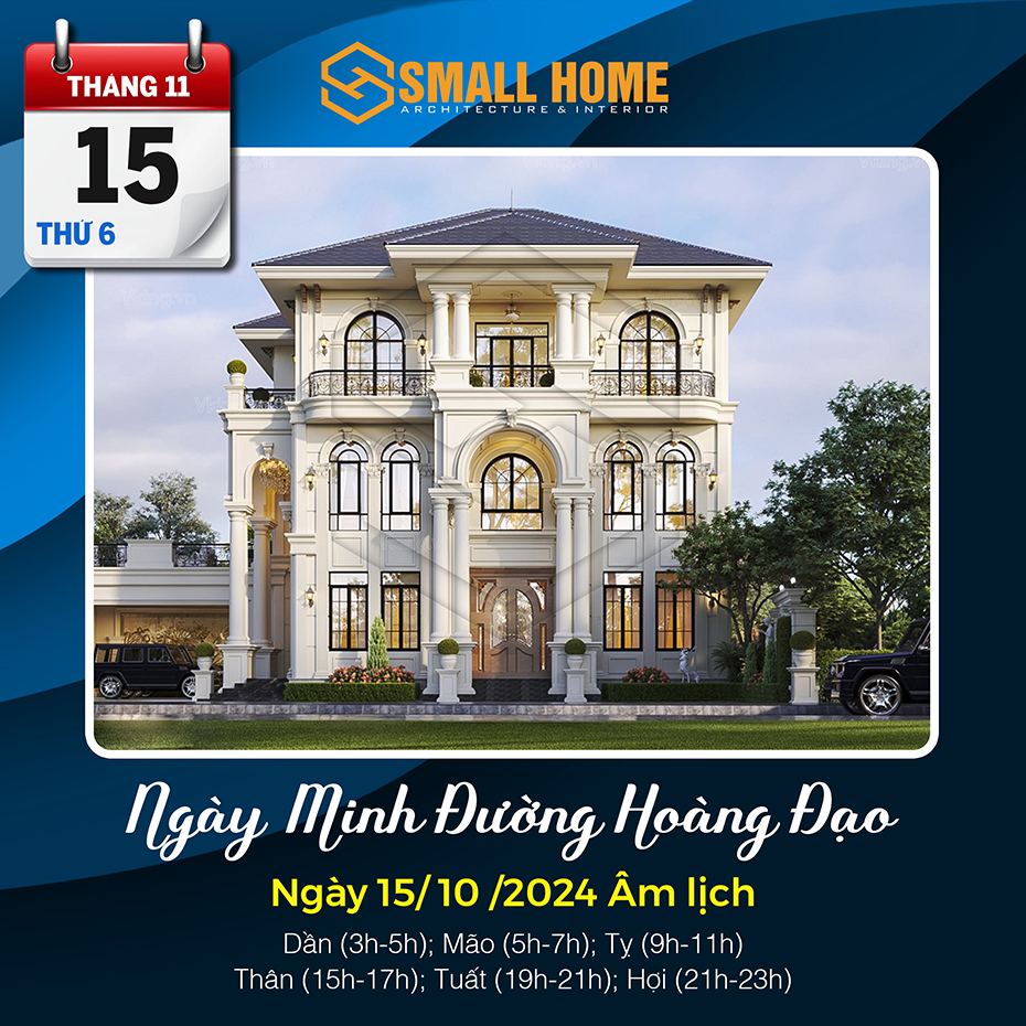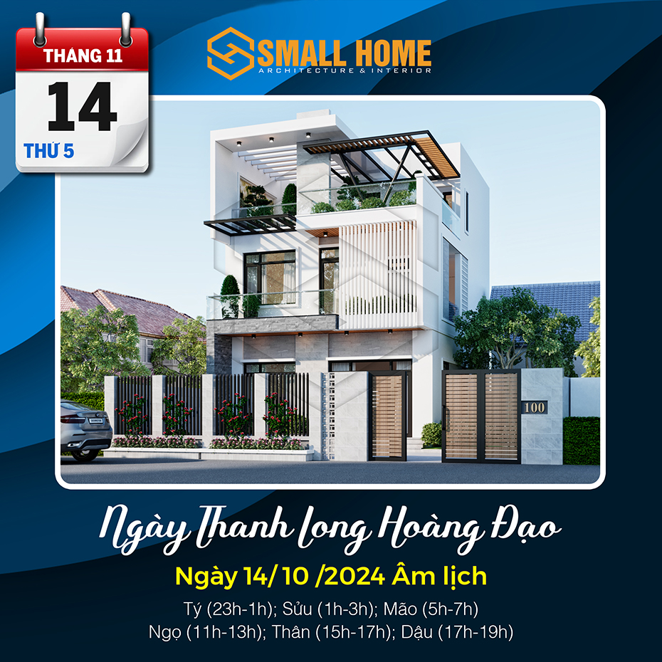 Việc xem ngày tốt làm nhà tốt xấu có ảnh hưởng khá lớn đến tâm lý của gia chủ. Xây nhà, dựng cửa là việc hệ trọng cần xem xét và bàn bạc kỹ lưỡng cho nên việc xem ngày tốt làm nhà là việc quan trọng ảnh hưởng tới công việc, vận mệnh của gia chủ. Vậy Kiến trúc & Nội thất Smallhome xin tư vấn một số ngày tốt làm nhà sửa nhà trong tháng 11 năm 2024. Thông thường xem ngày làm nhà, người ta thường chọn các ngày Hoàng đạo, có các sao như: Sát cống, Thanh Long, Hoàng Đạo và quan trọng nhất là việc xem ngày khởi công xây nhà và sửa nhà phải theo tuổi gia chủ.