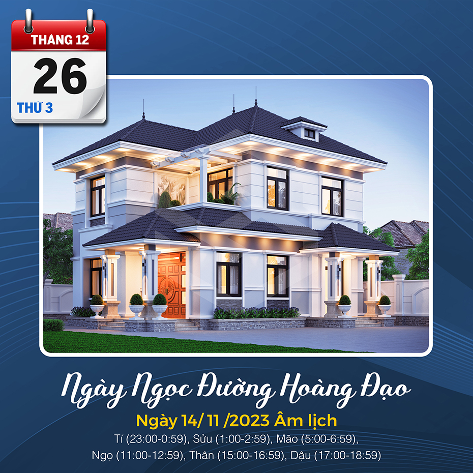 Thứ 3, ngày 26 tháng 12 năm 2023 (Âm lịch: Ngày 14/11/2023)