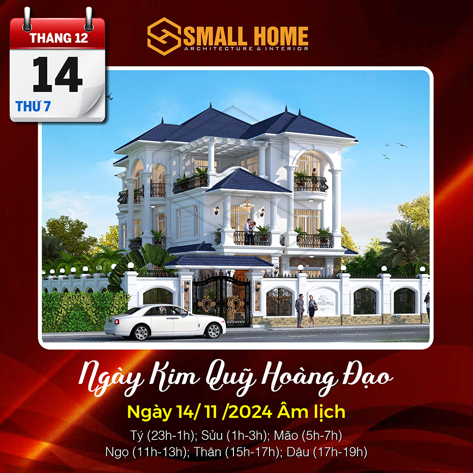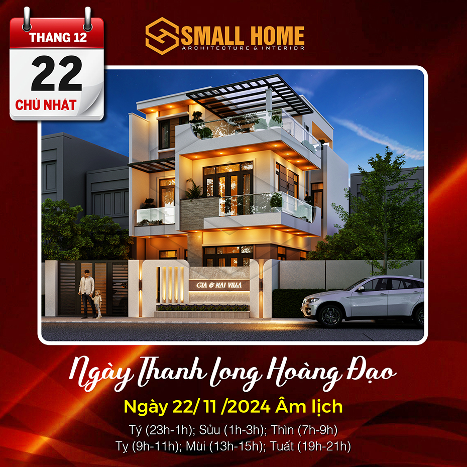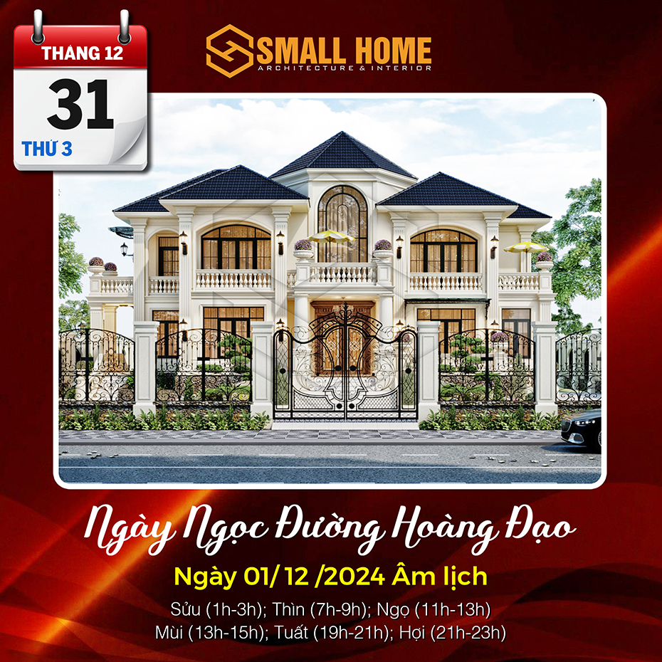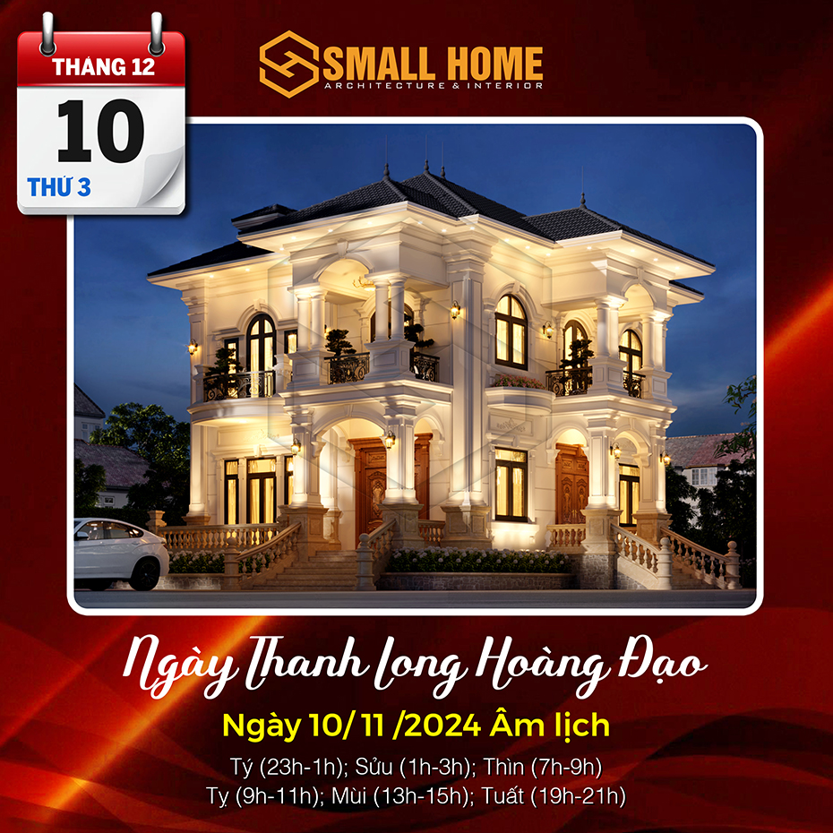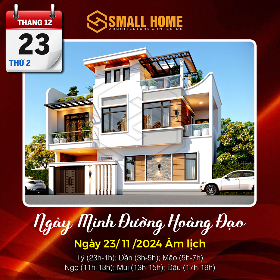 Việc xem ngày tốt làm nhà tốt xấu có ảnh hưởng khá lớn đến tâm lý của gia chủ. Xây nhà, dựng cửa là việc hệ trọng cần xem xét và bàn bạc kỹ lưỡng cho nên việc xem ngày tốt làm nhà là việc quan trọng ảnh hưởng tới công việc, vận mệnh của gia chủ. Vậy Kiến trúc & Nội thất Smallhome xin tư vấn một số ngày tốt làm nhà sửa nhà trong tháng 12 năm 2024. Thông thường xem ngày làm nhà, người ta thường chọn các ngày Hoàng đạo, có các sao như: Sát cống, Thanh Long, Hoàng Đạo và quan trọng nhất là việc xem ngày khởi công xây nhà và sửa nhà phải theo tuổi gia chủ.