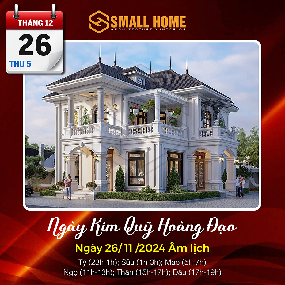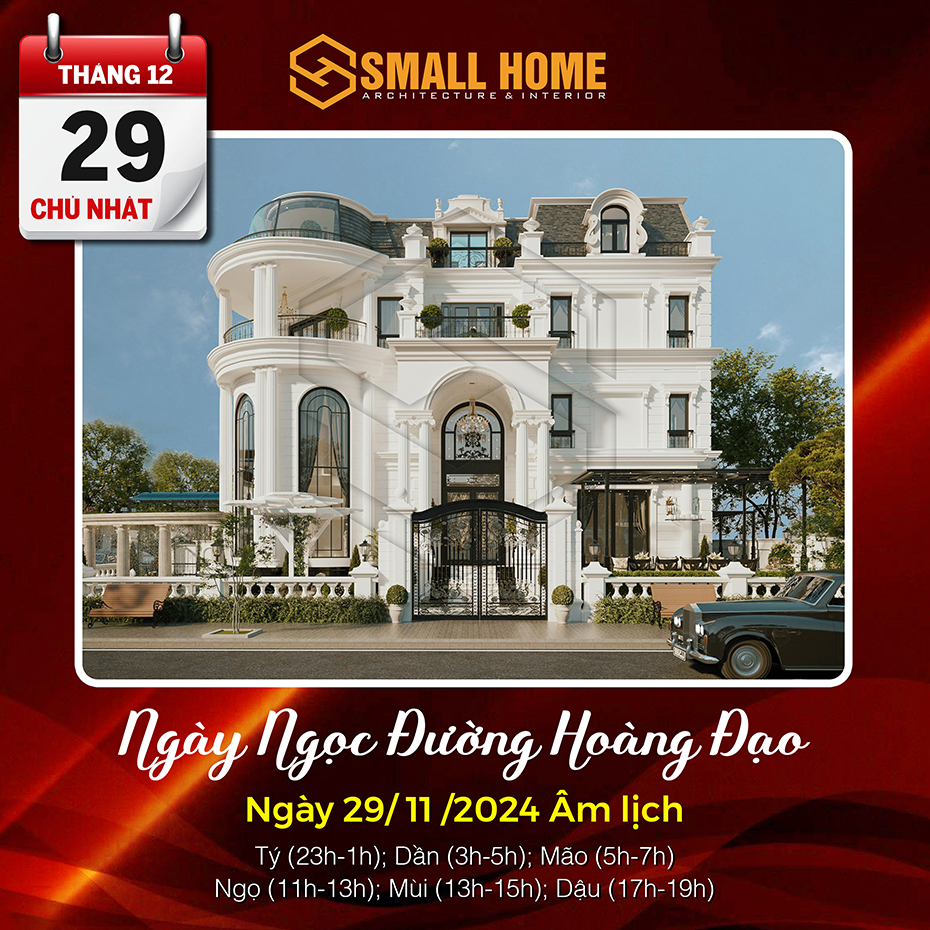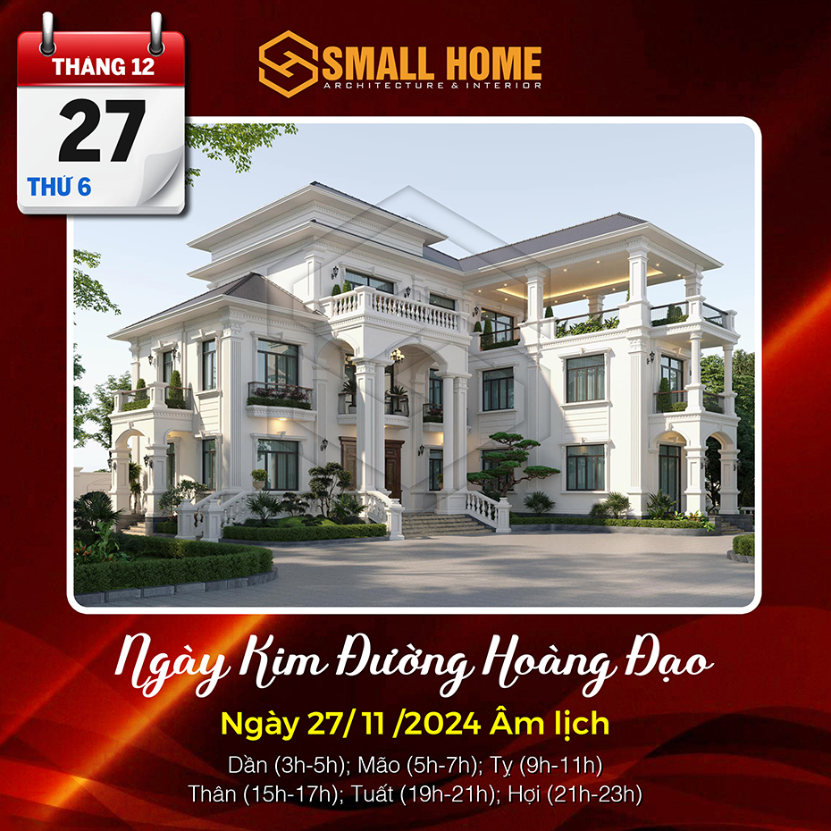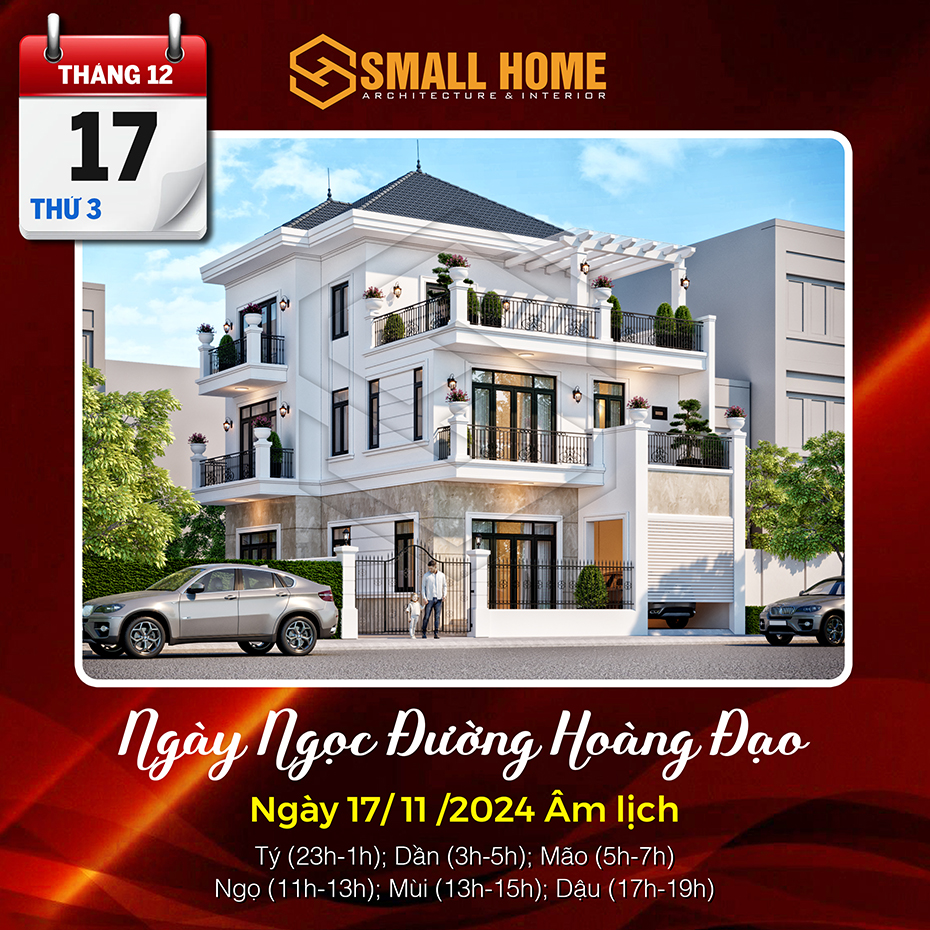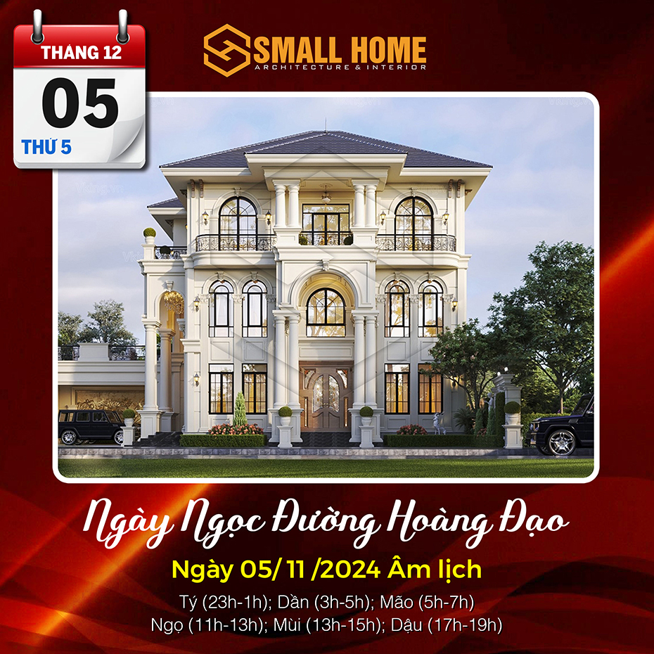 Việc xem ngày tốt làm nhà tốt xấu có ảnh hưởng khá lớn đến tâm lý của gia chủ. Xây nhà, dựng cửa là việc hệ trọng cần xem xét và bàn bạc kỹ lưỡng cho nên việc xem ngày tốt làm nhà là việc quan trọng ảnh hưởng tới công việc, vận mệnh của gia chủ. Vậy Kiến trúc & Nội thất Smallhome xin tư vấn một số ngày tốt làm nhà sửa nhà trong tháng 12 năm 2024. Thông thường xem ngày làm nhà, người ta thường chọn các ngày Hoàng đạo, có các sao như: Sát cống, Thanh Long, Hoàng Đạo và quan trọng nhất là việc xem ngày khởi công xây nhà và sửa nhà phải theo tuổi gia chủ.